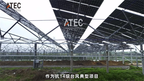 我(wo)國(guo)是世界上受(shou)臺風襲擊最(zui)多的國(guo)家,夏季臺風、暴雨的頻(pin)繁發生,對光伏電站的抗災能力是極大考驗。 廣(guang)東(dong)能源茂(mao)名茂(mao)南公館鎮光伏復(fu)合(he)項目,位于廣(guang)東(dong)省茂(mao)名市(shi)。地處中(zhong)國南海之濱,屬亞熱帶季風氣候區,氣象災害頻繁且嚴重。 風來 柔中帶剛 光伏電站提(ti)升抗(kang)風能(neng)力(li)的關鍵在光(guang)伏(fu)支架(jia)。項目(mu)位于強臺(tai)風(feng)(feng)(feng)正面區域,深圳安泰科團隊單獨針對大(da)風(feng)(feng)(feng)壓整體(ti)方(fang)案,設(she)計(ji)高經濟性(xing)的柔(rou)性(xing)支架(jia),并在中南大(da)學完成了《臺(tai)風(feng)(feng)(feng)環境(jing)光(guang)伏(fu)電站柔(rou)性(xing)支架(jia)結構方(fang)案及其抗風(feng)(feng)(feng)性(xing)能研(yan)究》,達到防(fang)14級臺(tai)風(feng)(feng)(feng)要求。同時(shi)專(zhuan)(zhuan)利設(she)計(ji)帶來兩大(da)優(you)勢(shi):近似零(ling)撓度的技術提升(sheng)了系統抗負風(feng)(feng)(feng)的能力;專(zhuan)(zhuan)有(you)的風(feng)(feng)(feng)致振(zhen)動抑制技術以最大(da)程度減小振(zhen)動。 作為抗(kang)14級臺(tai)風典型項(xiang)目(mu), 2023年該項(xiang)目(mu)經(jing)受了超強臺(tai)風“蘇拉(la)”“海葵”以摧枯拉(la)朽(xiu)之勢(shi)前后入侵的考(kao)驗(yan)。 新一代ATEC擎天晴(qing)索網柔性支架,柔中帶剛,穩如磐(pan)石。 雨落 擎天見晴 在臺風(feng)過后的強降雨(yu)天(tian)氣中,水面(mian)抬(tai)高,光伏板存在浸泡損壞風(feng)險。深(shen)圳安(an)泰科團(tuan)隊針對朝向、坡度(du)(du)起伏程度(du)(du)、洪水水位等進行充分(fen)研判,設計將自水面(mian)起的凈空大幅度(du)(du)抬(tai)高至7米,最大限度(du)(du)減少財產損失(shi)。 魚躍 綠電涌動 茂名(ming)市是中國最大的(de)羅非魚生(sheng)產基地,深圳安(an)泰科發(fa)揮技術優勢,將該項目(mu)中柔性支架跨度最大提升為34.5米(mi),給漁業養殖(zhi)預留充足空間,使魚群(qun)更好生(sheng)長。 在極端(duan)天氣頻發的(de)今天,新能源的(de)發展(zhan)更應該強調抗自然災害能力與(yu)性能并(bing)存,深圳(zhen)安泰科(ke)能源將持續提供應對自(zi)然(ran)災害的光伏支架解決(jue)方(fang)案,助力行業高質量(liang)發展。