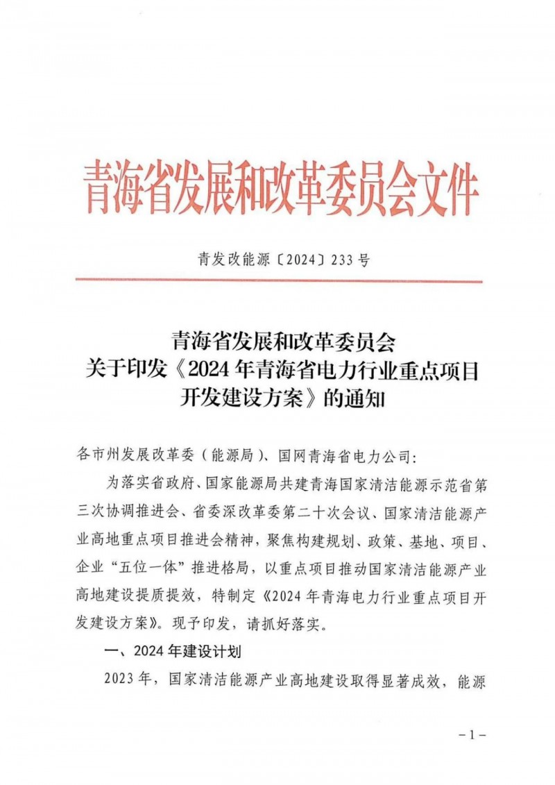 日前,青(qing)海省發改委下發《2024年青(qing)海省電力行(xing)業重點項目開發建(jian)設方案》的通知,其中包括中石油10萬標方電解水制氫項目。 據悉(xi),該項(xiang)目(mu)配套(tao)綠電制(zhi)氫(qing)(氫(qing)能),項(xiang)目(mu)新建氣電30萬千瓦,電解水制(zhi)氫(qing)10萬Nm3/小時(shi),項(xiang)目(mu)計劃2024年與新能源本體同步建成投產。 全文如下: