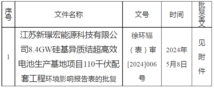 新璟宏能源8.4GW硅基異質結環評情況公示2024-05-14 13:27來源:gessey瀏覽數:323次