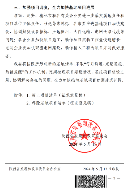 陜西:加快推進風光大基地建設 未如期并網核減指標、廢止移除清單2024-05-21 10:20來源:gessey瀏覽數:281次