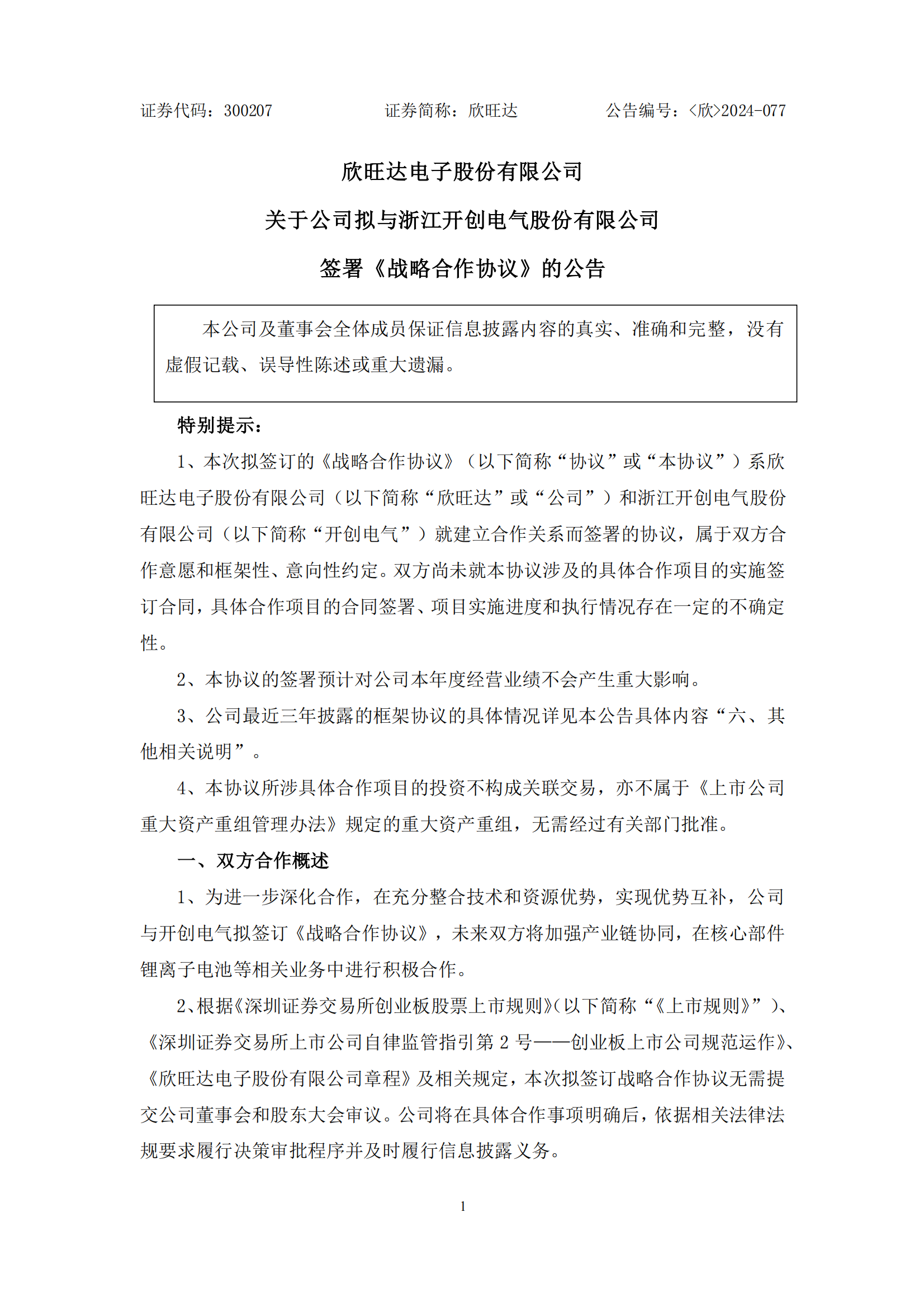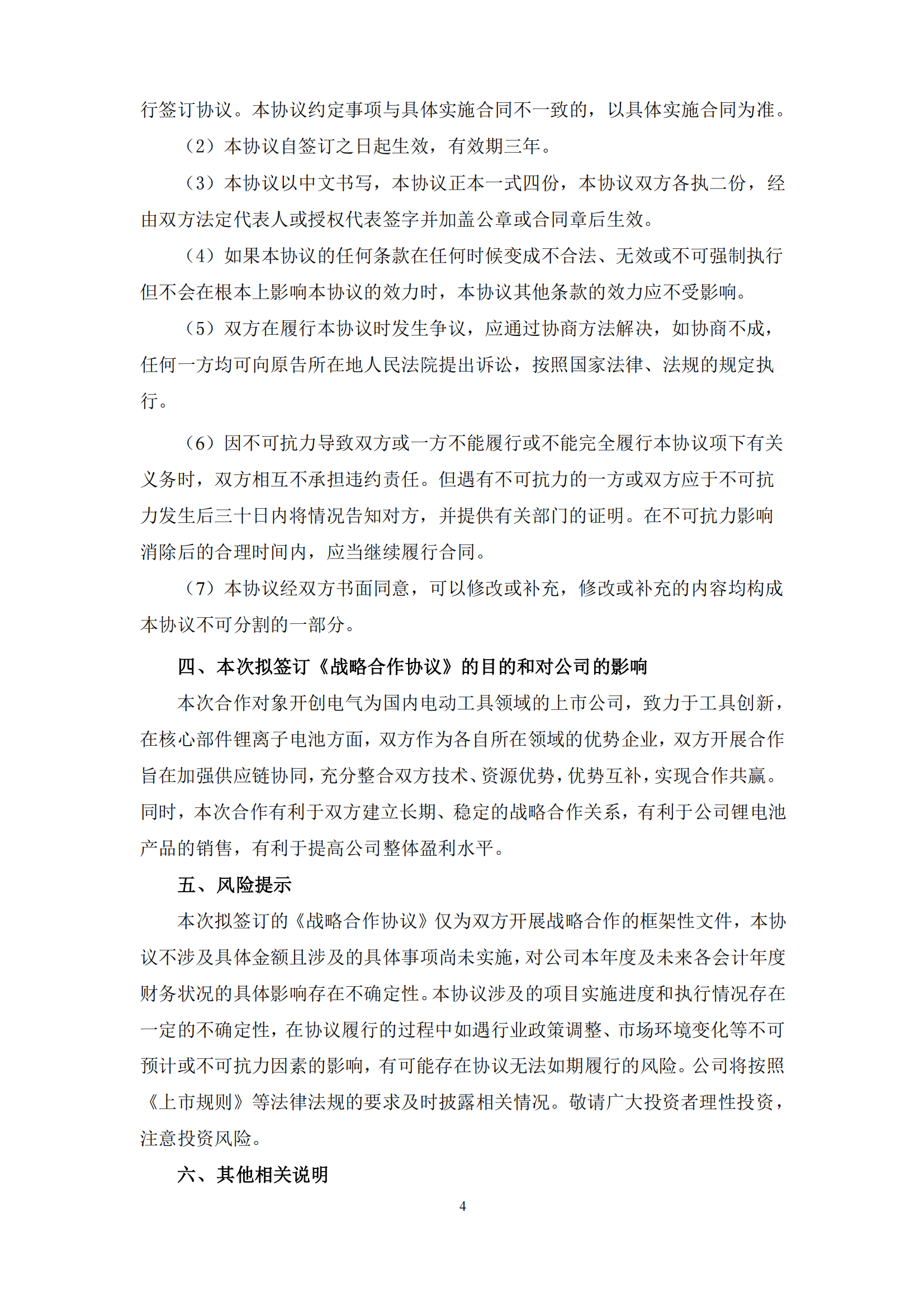 6月12日,欣旺達電子股份有限公(gong)司(si)(si)發布關于公(gong)司(si)(si)擬(ni)與浙江開創電氣股份有限公(gong)司(si)(si)簽署《戰略合作協(xie)議》的(de)公(gong)告。 公(gong)告稱,欣(xin)旺(wang)達與開(kai)創(chuang)電氣擬簽訂《戰略(lve)(lve)合(he)作協議》,未(wei)來雙(shuang)(shuang)方將(jiang)加強產(chan)(chan)業(ye)鏈協同,在核心部件鋰離子電池等相關業(ye)務(wu)(wu)中進行積極合(he)作。通過雙(shuang)(shuang)方的(de)(de)戰略(lve)(lve)合(he)作,能夠團(tuan)隊優(you)勢互補,幫助(zhu)雙(shuang)(shuang)方進一步提(ti)升(sheng)產(chan)(chan)品(pin)(pin)品(pin)(pin)質(zhi)、提(ti)高產(chan)(chan)品(pin)(pin)優(you)率、降低綜合(he)成本(ben)、改善提(ti)升(sheng)相關產(chan)(chan)品(pin)(pin)的(de)(de)工藝技術、產(chan)(chan)品(pin)(pin)質(zhi)量及(ji)售(shou)后(hou)服務(wu)(wu)等,實現(xian)雙(shuang)(shuang)方未(wei)來的(de)(de)市(shi)(shi)場(chang)擴張策(ce)略(lve)(lve)并獲得更大的(de)(de)市(shi)(shi)場(chang)份額(e),為雙(shuang)(shuang)方創(chuang)造更大的(de)(de)商業(ye)價值。 欣旺達表(biao)示,本次合作(zuo)對象開(kai)創(chuang)電氣為(wei)國內(nei)電動(dong)工具(ju)領(ling)域的(de)上(shang)市公司,致力于(yu)工具(ju)創(chuang)新,在核心(xin)部件鋰離子電池(chi)方(fang)面,雙方(fang)作(zuo)為(wei)各自所在領(ling)域的(de)優(you)(you)勢企業,雙方(fang)開(kai)展(zhan)合作(zuo)旨在加(jia)強供應鏈協同,充分整(zheng)合雙方(fang)技術、資源優(you)(you)勢,優(you)(you)勢互(hu)補,實(shi)現合作(zuo)共贏。同時(shi),本次合作(zuo)有(you)(you)利于(yu)雙方(fang)建立長期(qi)、穩定的(de)戰略合作(zuo)關(guan)系,有(you)(you)利于(yu)公司鋰電池(chi)產品的(de)銷售,有(you)(you)利于(yu)提高公司整(zheng)體盈利水(shui)平(ping)。 原公告內容如下: