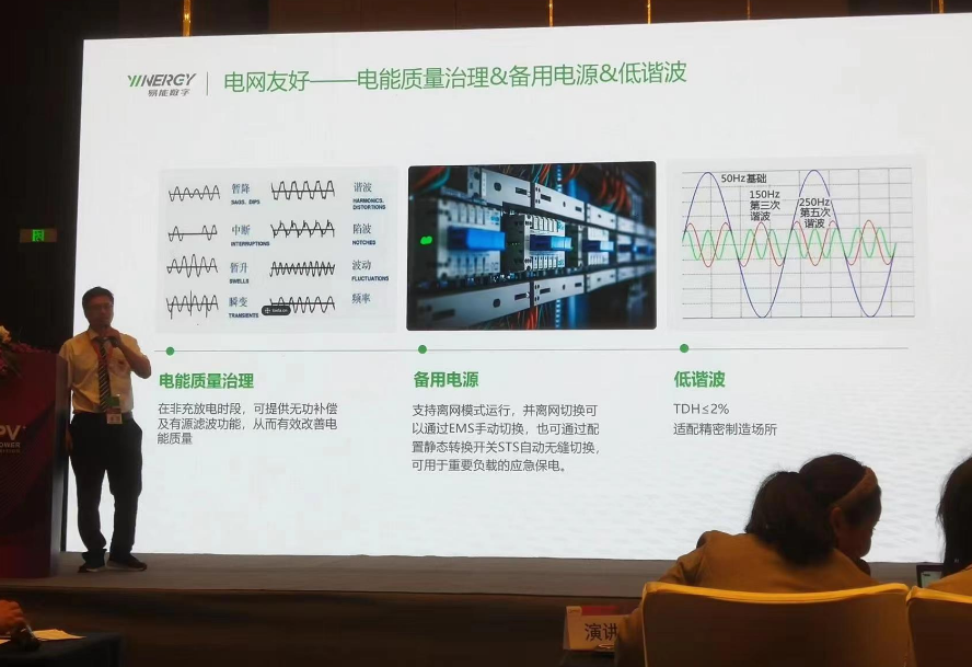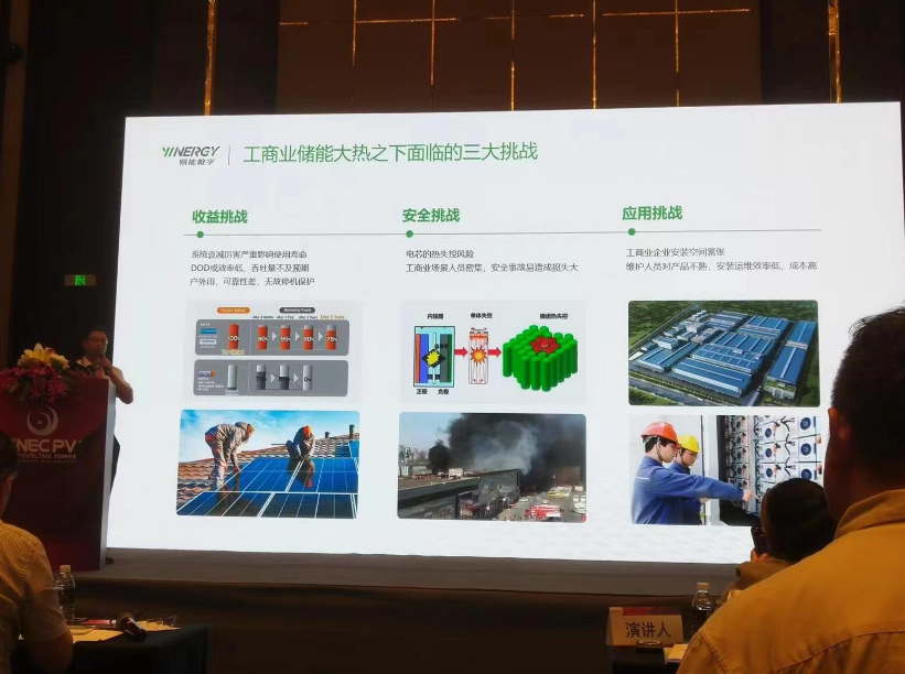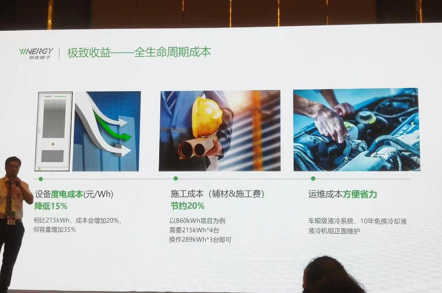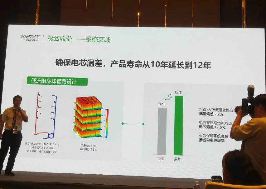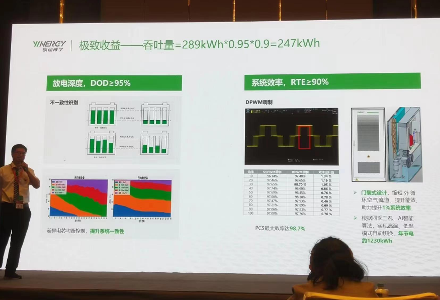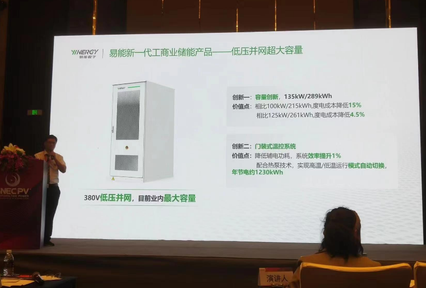易能(neng)數字能(neng)源技術(shu)(浙江)有(you)限公(gong)司的許委(wei)波先生以低壓并網超大(da)容量儲能(neng)一體柜——行(xing)業新(xin)突破為主題(ti)進行(xing)了(le)分享。 首先,他指(zhi)出(chu),工商業(ye)儲能大(da)熱之下存在三大(da)挑戰:收(shou)益挑戰、安(an)(an)全挑戰、應用(yong)(yong)挑戰。收(shou)益方(fang)面(mian),系(xi)統衰減厲害(hai)嚴重(zhong)影響使用(yong)(yong)壽命,DOD或效(xiao)率低,吞吐量(liang)不(bu)及(ji)預期;戶(hu)外用(yong)(yong),可靠性(xing)差,無(wu)故(gu)停機保(bao)護。安(an)(an)全方(fang)面(mian),電芯有熱失(shi)控風險;工商業(ye)場景(jing)人(ren)(ren)員密集,安(an)(an)全事故(gu)易造成(cheng)損失(shi)大(da)。應用(yong)(yong)方(fang)面(mian),工商業(ye)企業(ye)安(an)(an)裝空(kong)間緊(jin)張,維護人(ren)(ren)員對產品不(bu)熟,安(an)(an)裝運維效(xiao)率低,成(cheng)本(ben)高(gao)。 基于(yu)此,易能(neng)推出的新一代工(gong)商業儲能(neng)產品以380V低(di)(di)壓并網、目前業內最大(da)容(rong)量的優(you)勢(shi)立足于(yu)市(shi)場(chang)。產品存(cun)在兩大(da)創(chuang)新點。第(di)一,容(rong)量創(chuang)新,135kW/289kWh,相比100kW/215kWh, 度電成(cheng)本降(jiang)低(di)(di)15%,相比125kW/261kWh,度電成(cheng)本降(jiang)低(di)(di)4.5%;第(di)二,門裝式溫控系統(tong),降(jiang)低(di)(di)輔電功耗,系統(tong)效率提升1%,配合熱泵(beng)技術,實現(xian)高溫/低(di)(di)溫運行模式自動切(qie)換。 關于(yu)如何(he)進一步(bu)降低(di)工商業儲(chu)(chu)(chu)能(neng)系(xi)(xi)統(tong)全生命周期LCOS,許先生表示,應結合儲(chu)(chu)(chu)能(neng)設(she)備(bei)成(cheng)本、建設(she)安裝(zhuang)調(diao)試成(cheng)本、全生命周期運(yun)維成(cheng)本,綜合考慮儲(chu)(chu)(chu)能(neng)容(rong)量、放電(dian)(dian)(dian)深(shen)度、系(xi)(xi)統(tong)效率和系(xi)(xi)統(tong)循(xun)環次數。他還(huan)表示,極致收益(yi)的要點(dian)在(zai)于(yu)吞吐(tu)量=289kWh*0.95*0.9=247kWh、放電(dian)(dian)(dian)深(shen)度,DOD295% 和系(xi)(xi)統(tong)效率RTE≥90%。關于(yu)系(xi)(xi)統(tong)衰減(jian)的問題,低(di)流阻(zu)冷(leng)卻(que)管設(she)計確保電(dian)(dian)(dian)芯溫差,產品(pin)壽命從10年(nian)延(yan)長(chang)至12年(nian)。 最后,他(ta)分享了電芯(xin)&PACK,系統(tong)&應用方面(mian)的(de)優勢分析,以(yi)及建(jian)設電網(wang)友好的(de)三要素(su)——電能質量(liang)治理、備用電源和低諧波。