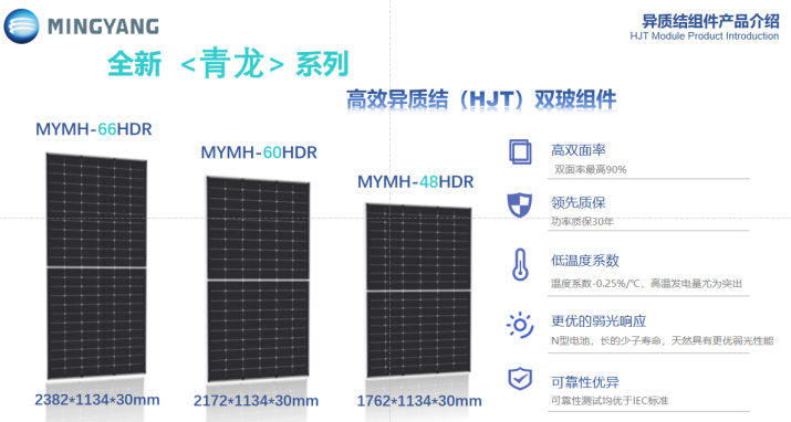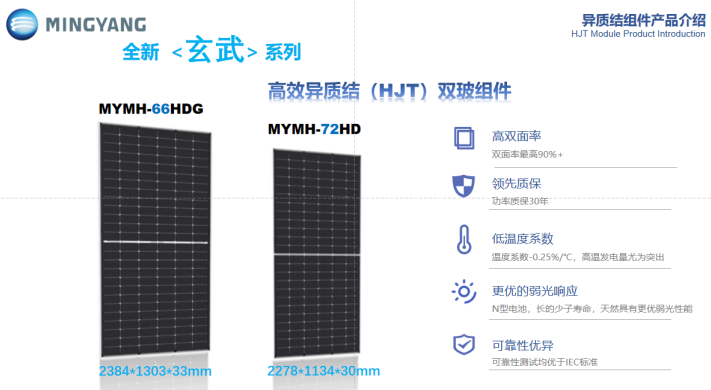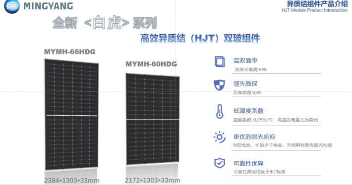 6月13日,SNEC第十七屆(2024)國際太陽能光伏與智慧能源(上海)大會暨展覽會在上海召開,明陽光伏受邀參展,展會現場“青龍”“白虎”“玄武”三款新品首次亮相,以及榮獲“TüV北德產品認證”。 明陽光伏貼合多元化光伏應用場景“青龍”“白虎”“玄武”三大新品應運而生。 更廣泛:分布式光伏“青龍”產品 青龍G12R電池片組件系列產品適用于工商業屋頂、集中式電站,采用最新0BB+銀包銅+超薄高效HJT電池,雙玻結構封裝,以極高效率和穩定性助力工商業實現能源轉型。在低輻照條件下,更好光譜響應,具有優異的發電特性,以“青龍”之姿,助力全球綠色能源事業的發展,G12R電池片組件適用場景廣泛,能夠解決不同區域、不同行業的分布式工商業場景需求,實現經濟效益與環保效益的雙贏。 更靈活可靠:關聯地面建設的“白虎”光伏電站 面對光照強、溫差大、溫度高、風沙大的沙戈荒基地項目,明陽推出白虎G12電池組件系列高效異質結組件以及智慧解決方案。組件采用210硅片疊加電池最新0BB+銀包銅+超薄技術,最高功率達750W,最高轉化效率為24.14%,溫度系數低至-0.255%/℃,雙面率高達90%,完美適配沙戈荒地區大型地面光伏電站建設需求。以“白虎”之姿,不斷突破產品邊界,主攻大型電站項目,關聯地面建設的光伏電站,立足“沙戈荒”資源稟賦和環境特性。 更堅固安全:海上光伏產品“玄武” 玄武海上光伏組件系列經過特殊設計,采用新型復合邊框材料,具有耐腐蝕,抗海風、浪沖擊的高機械性能;雙玻設計加丁基膠四周加嚴密封、阻水性更高;組件采用無邊界設計和親水玻璃,組件不積水,易清潔不易積灰,產品堅固耐用更適合海上環境,能夠承受海風侵蝕和鹽霧腐蝕,在復雜多變的海洋環境也能夠穩定運行,完美適配海上建站需求。未來,海上光伏將迎來更多發展機遇,明陽光伏持續不斷探索海上光伏+多元應用場景,與海洋牧場、海水淡化、制氫等多種能源或資源綜合利用和融合發展,實現海域資源綜合利用,在服務國家海洋生態環境保護、資源開發、海洋經濟等方面進一步發揮積極作用。 此前,明陽光伏已推出“朱雀”系列產品。至此,明陽光伏四大神獸系列--高效異質結組件產品已全部集結完畢,并成功投入市場,致力于為消費者帶來更優質的服務與品質保障。 明陽光伏組件產品多元應用場景靈活切換,產品榮獲“TüV北德產品認證”,產品實力獲國際機構權威認可。 一直以來,明陽光伏秉承集團“創新清潔能源,造福人類社會”的企業使命,推動產業生態協同創新與降本增效,聚焦農漁業、山區沙漠、工業屋頂、海上光伏等多元應用場景,為各行業客戶提供多元化專業服務及需求,是產品品質的高效保證。 “TüV北德產品認證”的取得是明陽光伏深耕國際化道路的新突破,是公司拓展歐洲乃至海外市場的一大“強心劑”,也是公司質量管理、技術規范安全等方面工作的新篇章。展望未來,明陽光伏也將秉承初心,持續賦能新一代光伏技術革新與產業化落地。