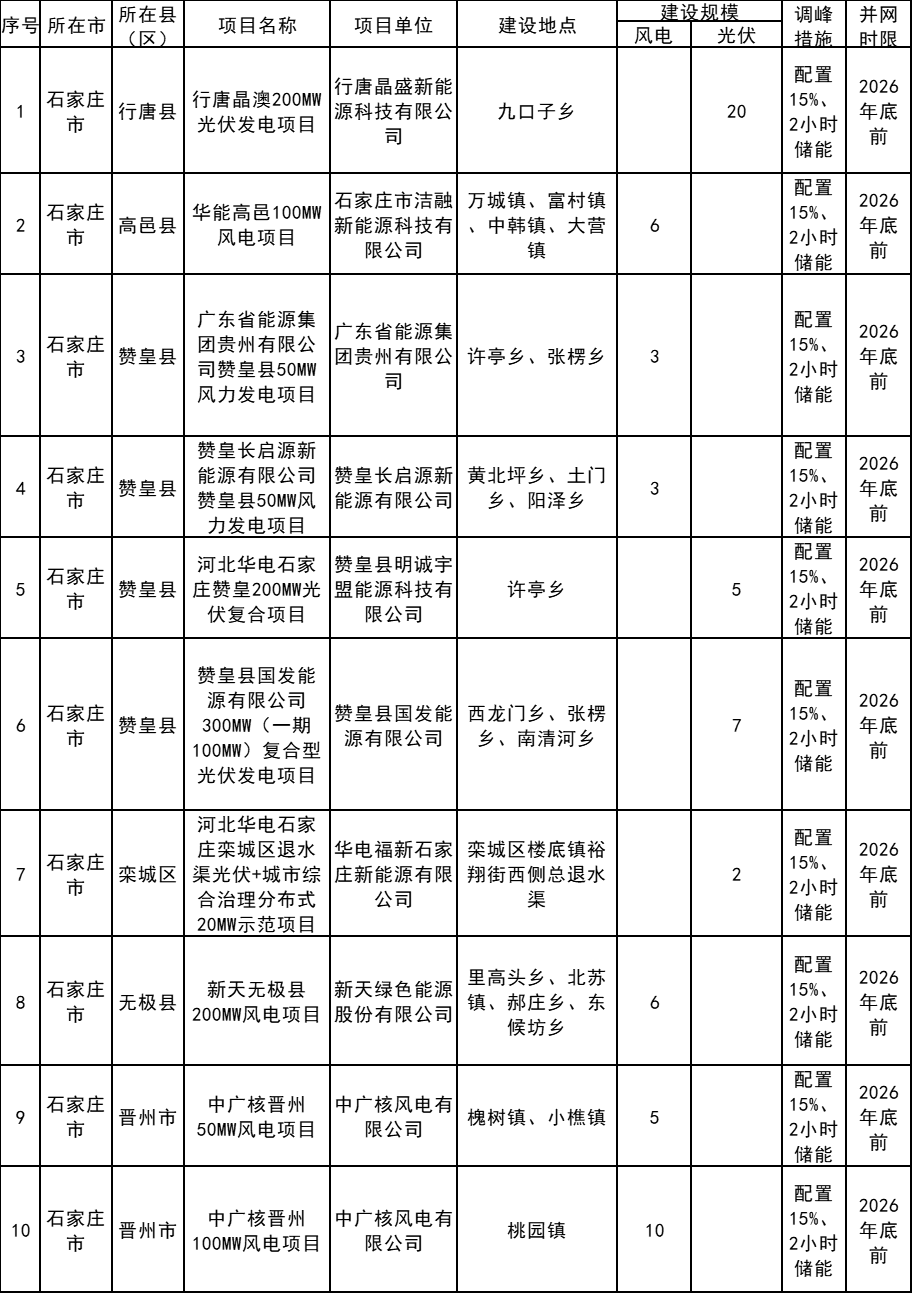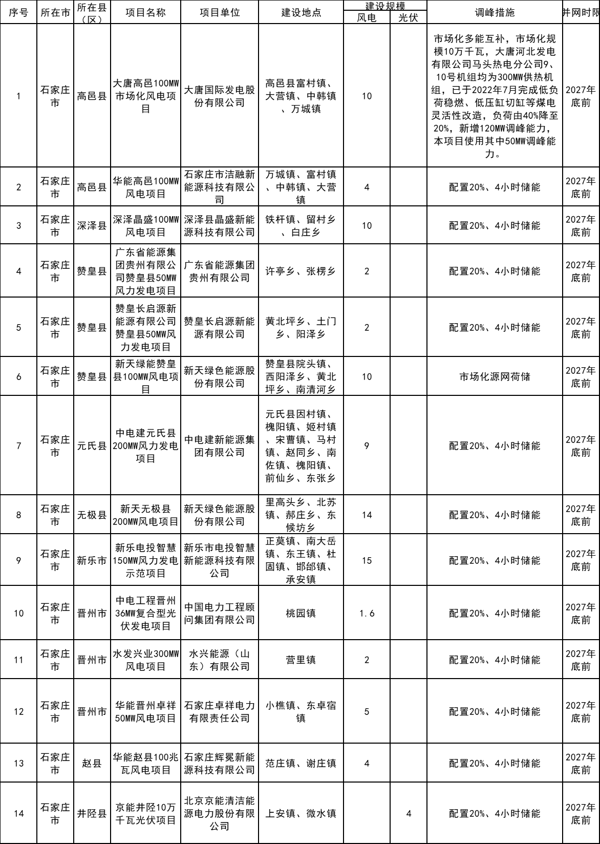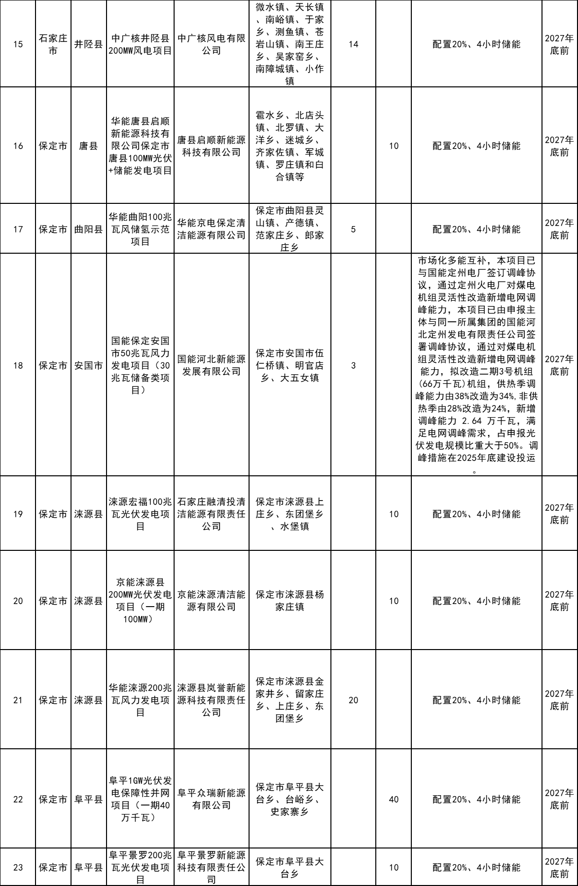 7月3日,河北(bei)省2024年風(feng)電、光(guang)伏發電開發建設方案擬安(an)排項(xiang)(xiang)目(mu)(mu)情(qing)況公(gong)示。本次(ci)公(gong)示項(xiang)(xiang)目(mu)(mu)共189個(ge)(ge)(ge)、1784.263萬(wan)(wan)千瓦,其中保障性項(xiang)(xiang)目(mu)(mu)共116個(ge)(ge)(ge)、1039.298萬(wan)(wan)千瓦,包含光(guang)伏項(xiang)(xiang)目(mu)(mu)31個(ge)(ge)(ge),規模195.053萬(wan)(wan)千瓦;市(shi)場化項(xiang)(xiang)目(mu)(mu)共73個(ge)(ge)(ge)、744.965萬(wan)(wan)千瓦,包含光(guang)伏項(xiang)(xiang)目(mu)(mu)8個(ge)(ge)(ge),規模122萬(wan)(wan)千瓦。 原文如(ru)下: 河北省2024年風電、光伏發電開發建設方案擬安排項目情況公示 根據《關于組織申報2024年風電、光伏發電年度開發建設方案項目的通知》(冀發改能源〔2024〕333號)要求,經各市申報、電網公司對接入和消納條件確認及第三方咨詢單位對基本要件審核,現對符合用地條件且電網公司出具支持意見的項目予以公示。 本次公示(shi)項(xiang)(xiang)目(mu)共(gong)189個(ge)、1784.263萬(wan)(wan)千瓦(wa),其中保障性項(xiang)(xiang)目(mu)共(gong)116個(ge)、1039.298萬(wan)(wan)千瓦(wa),市場(chang)化項(xiang)(xiang)目(mu)共(gong)73個(ge)、744.965萬(wan)(wan)千瓦(wa)。具體名單(dan)見附件。 公示時間為2024年7月(yue)3日至7月(yue)7日。期間如有異議(yi),請向(xiang)省發展改革委(能源局)新(xin)能源處反(fan)映。 聯(lian)系電話:0311—88600137 0311—88600512 電子郵箱:nyjxnyc@hbdrc.gov.cn 附(fu)件:1.風電、光(guang)伏發電保(bao)障性項目(mu)公示表 2.風電(dian)、光伏發電(dian)市場化項目公示(shi)表 河(he)北(bei)省發展和改革委員會 2024年(nian)7月(yue)3日 附件:1.風(feng)電(dian)、光伏(fu)發電(dian)保(bao)障性(xing)項目公示表 單(dan)位(wei):萬千瓦 附件2:風電(dian)、光伏(fu)發電(dian)市場化項目公(gong)示表 單位:萬千(qian)瓦 下一篇: 三峽新能源換帥