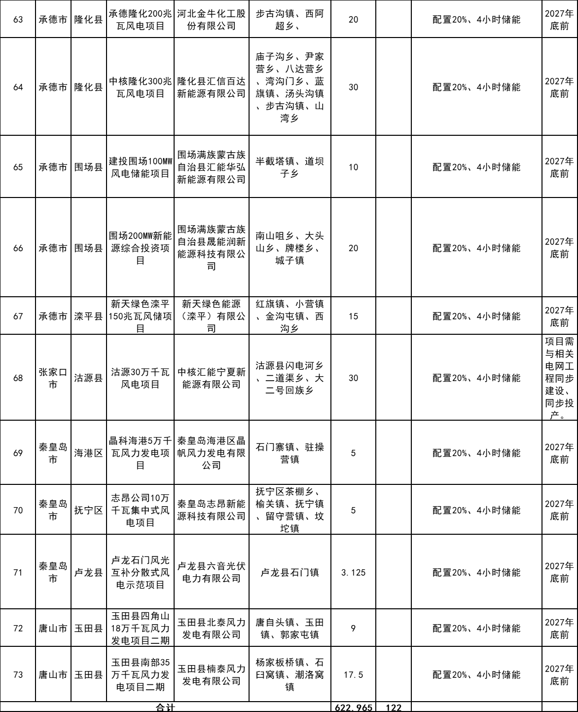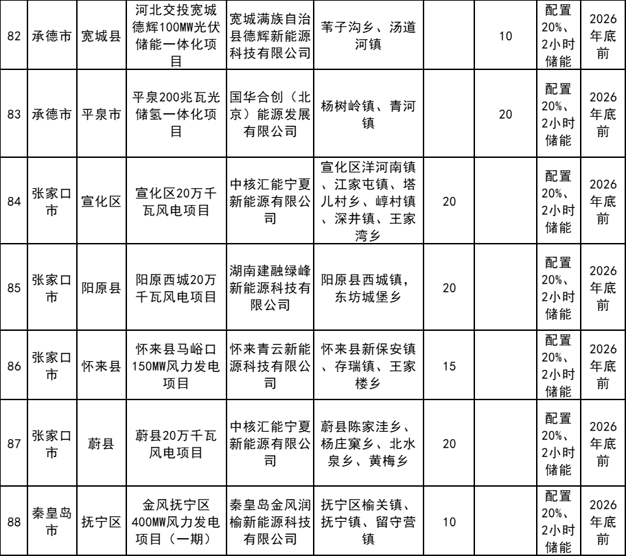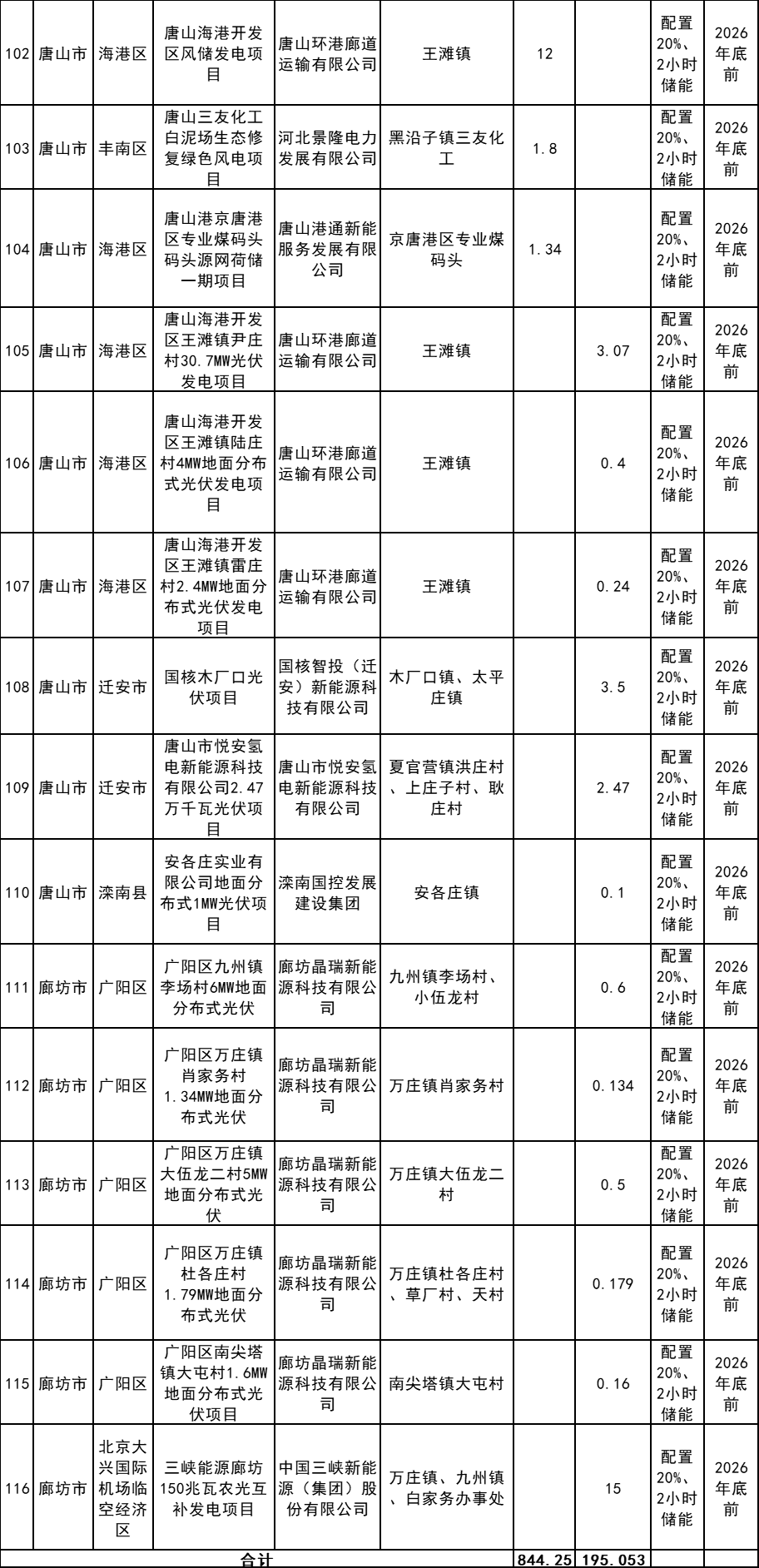 7月3日,河北(bei)省2024年風(feng)電、光(guang)伏發電開發建設方案擬安(an)排項(xiang)(xiang)目(mu)(mu)情(qing)況公(gong)示。本次(ci)公(gong)示項(xiang)(xiang)目(mu)(mu)共189個(ge)(ge)(ge)、1784.263萬(wan)(wan)千瓦,其中保障性項(xiang)(xiang)目(mu)(mu)共116個(ge)(ge)(ge)、1039.298萬(wan)(wan)千瓦,包含光(guang)伏項(xiang)(xiang)目(mu)(mu)31個(ge)(ge)(ge),規模195.053萬(wan)(wan)千瓦;市(shi)場化項(xiang)(xiang)目(mu)(mu)共73個(ge)(ge)(ge)、744.965萬(wan)(wan)千瓦,包含光(guang)伏項(xiang)(xiang)目(mu)(mu)8個(ge)(ge)(ge),規模122萬(wan)(wan)千瓦。 原文如(ru)下: 河北省2024年風電、光伏發電開發建設方案擬安排項目情況公示 根據《關于組織申報2024年風電、光伏發電年度開發建設方案項目的通知》(冀發改能源〔2024〕333號)要求,經各市申報、電網公司對接入和消納條件確認及第三方咨詢單位對基本要件審核,現對符合用地條件且電網公司出具支持意見的項目予以公示。 本次公示(shi)項(xiang)(xiang)目(mu)共(gong)189個(ge)、1784.263萬(wan)(wan)千瓦(wa),其中保障性項(xiang)(xiang)目(mu)共(gong)116個(ge)、1039.298萬(wan)(wan)千瓦(wa),市場(chang)化項(xiang)(xiang)目(mu)共(gong)73個(ge)、744.965萬(wan)(wan)千瓦(wa)。具體名單(dan)見附件。 公示時間為2024年7月(yue)3日至7月(yue)7日。期間如有異議(yi),請向(xiang)省發展改革委(能源局)新(xin)能源處反(fan)映。 聯(lian)系電話:0311—88600137 0311—88600512 電子郵箱:nyjxnyc@hbdrc.gov.cn 附(fu)件:1.風電、光(guang)伏發電保(bao)障性項目(mu)公示表 2.風電(dian)、光伏發電(dian)市場化項目公示(shi)表 河(he)北(bei)省發展和改革委員會 2024年(nian)7月(yue)3日 附件:1.風(feng)電(dian)、光伏(fu)發電(dian)保(bao)障性(xing)項目公示表 單(dan)位(wei):萬千瓦 附件2:風電(dian)、光伏(fu)發電(dian)市場化項目公(gong)示表 單位:萬千(qian)瓦 下一篇: 三峽新能源換帥