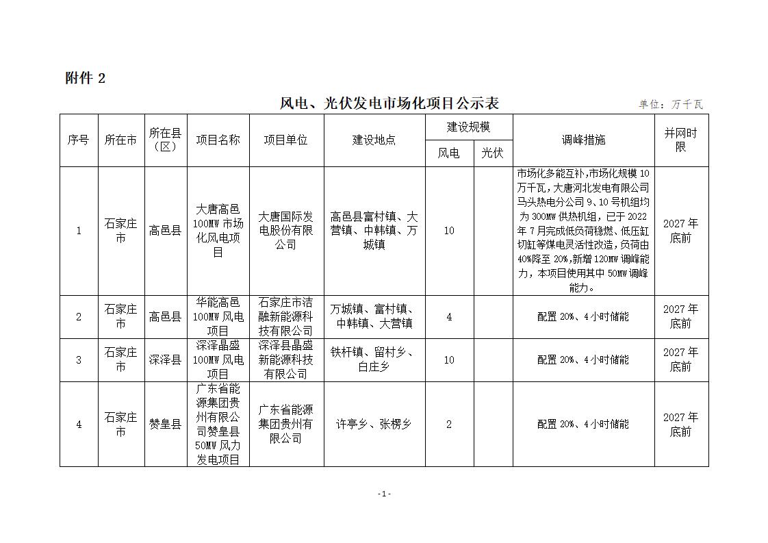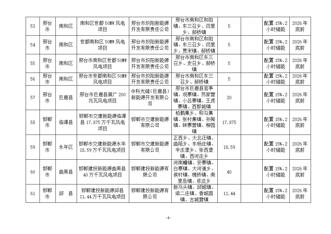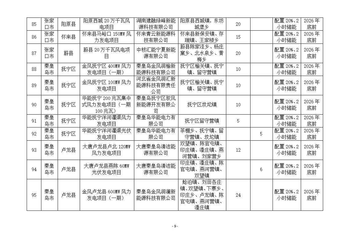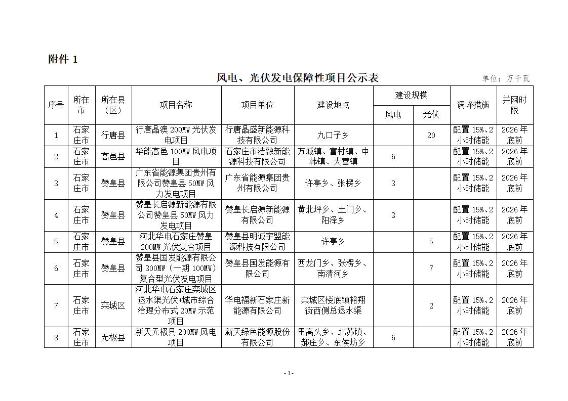 7月3日,河北(bei)省(sheng)發(fa)改委發(fa)布《河北(bei)省(sheng)2024年風電(dian)、光伏發(fa)電(dian)開發(fa)建(jian)設方案擬安(an)排項目情況公(gong)示(shi)》。 本次公示項目共(gong)189個,總計1784.263萬千(qian)瓦,其(qi)中(zhong)保障性項目共(gong)116個、1039.298萬千(qian)瓦,市場化項目共(gong)73個、744.965萬千(qian)瓦。 公示(shi)文件對市場化項(xiang)目、保障(zhang)性項(xiang)目的并網時間做(zuo)出了具(ju)體要求: 市(shi)場化項目并網時間:72個共(gong)7.14965GW需(xu)在2027年(nian)底(di)前并網投運;沽源30萬千瓦(wa)風(feng)電(dian)項目需(xu)與相關電(dian)網工程同(tong)步建設(she)、同(tong)步投產。 保(bao)障性項目(mu)(mu)并(bing)網時間:所(suo)有保(bao)障性項目(mu)(mu)均需要2026年底(di)前(qian)并(bing)網。 原文如下: 河北省(sheng)2024年風(feng)電(dian)、光(guang)伏發(fa)電(dian)開(kai)發(fa)建設(she)方案擬安排項目情況公(gong)示 根據(ju)《關(guan)于組織申報(bao)2024年風電(dian)、光伏發電(dian)年度開發建設方(fang)案(an)項(xiang)目(mu)的通(tong)知》(冀發改能源(yuan)〔2024〕333號(hao))要(yao)求,經(jing)各市申報(bao)、電(dian)網公(gong)司(si)對接入和消納條(tiao)件確認(ren)及第三(san)方(fang)咨詢單位對基本要(yao)件審核,現對符(fu)合(he)用地條(tiao)件且電(dian)網公(gong)司(si)出具支持(chi)意見的項(xiang)目(mu)予以公(gong)示(shi)。 本次公示項(xiang)目(mu)共189個、1784.263萬千(qian)瓦(wa)(wa),其中保障(zhang)性項(xiang)目(mu)共116個、1039.298萬千(qian)瓦(wa)(wa),市場化項(xiang)目(mu)共73個、744.965萬千(qian)瓦(wa)(wa)。具(ju)體(ti)名單見(jian)附件(jian)。 公示時間為2024年7月(yue)3日至7月(yue)7日。期間如有異議,請向省發展(zhan)改革委(能源局(ju))新能源處(chu)反映。 聯系電話:0311—88600137 0311—88600512 電(dian)子郵箱:nyjxnyc@hbdrc.gov.cn 附件:1.風電(dian)、光伏發電(dian)保障(zhang)性項目公示表(biao) 2.風電、光伏發電市場(chang)化項(xiang)目公示表 河(he)北省發展和改革委員(yuan)會(hui) 2024年7月3日 附件下載: 1.風電(dian)、光(guang)伏發電(dian)保障性項(xiang)目公示表.docx 2.風(feng)電、光伏發電市(shi)場化項(xiang)目公示表.docx