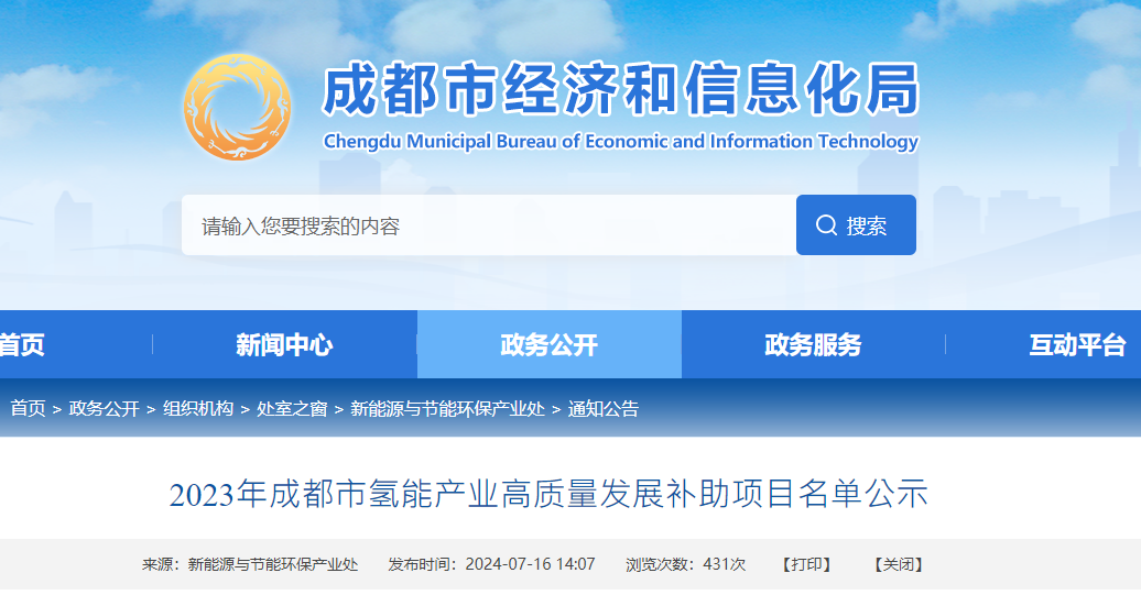 7月(yue)16日(ri),成都經信局官網發(fa)布(bu)2023年成都市氫(qing)能產業(ye)(ye)高質(zhi)量(liang)發(fa)展(zhan)補助項目名單公示。共包括11家企業(ye)(ye)的11個項目,分別為: 四川省(sheng)達科特能源科技(ji)股份有(you)限公司:一體化高效制(zhi)氫集成裝置; 四(si)川亞(ya)聯氫能(neng)科技股份有限公司:氫能(neng)產(chan)業(ye)鏈上(shang)游(you)/中游(you)核心關鍵零部(bu)件(jian)制造; 成都瑞奇智造科技股份有(you)限(xian)公司:高效吸附制氫成套(tao)設備與關鍵零(ling)部件; 西南化工研(yan)究設(she)計院有限公司:變(bian)壓吸附制氫成套設(she)備及關鍵(jian)零部件; 四川榮創新能動力系(xi)統有限公司:大功率氫燃料電池系(xi)統; 東(dong)方電氣(qi)(成都)氫燃料(liao)電池(chi)科(ke)技有限公司:燃料(liao)電池(chi)發動機系統、燃料(liao)電池(chi)發電模塊; 厚普清潔能源(集團(tuan))股(gu)份有限公司:氫儲(chu)能供電系統及加氫站成套設備應用; 中材科技(成(cheng)都)有(you)限公(gong)司:碳纖維纏繞鋁內膽復合(he)材料儲氫(qing)氣瓶(ping); 成(cheng)都金(jin)克(ke)星(xing)物流有限(xian)公司(si):金(jin)克(ke)星(xing)氫氣運輸項目; 成都國氫華通(tong)科技有限公(gong)司:成都華通(tong)加氫站運營補(bu)貼項目; 四川省氫捷動能科技有(you)限責任公司(si):郫都區加氫和加油合建(jian)站。 原文如下: 2023年成都市氫能產業高質量發展補助項目名單公示 按照成(cheng)都(dou)市(shi)經(jing)濟和信息化局(ju)(ju)《關于組織開展2023年成(cheng)都(dou)市(shi)氫能產(chan)業高(gao)質量(liang)發展項目申報工作的通知》(成(cheng)經(jing)信財〔2023〕26號(hao))文件要求(qiu),經(jing)企(qi)業自主申報、區(qu)(市(shi))縣審核、我局(ju)(ju)復核、專家(jia)評審推薦(jian)、會(hui)計事務所審計等(deng)程序,現將2023年成(cheng)都(dou)市(shi)氫能產(chan)業高(gao)質量(liang)發展補助項目名(ming)單進行公示(名(ming)單附后)。 一、公示時間 2024年(nian)7月16日-2024年(nian)7月22日(5個(ge)工作日)。 公示期間,任何單位(wei)(wei)和個人均(jun)可通過來信、來電(dian)、來訪的形式,向成都市經濟和信息(xi)化局(ju)反(fan)映(ying)。以單位(wei)(wei)名義(yi)反(fan)映(ying)需加蓋公章,以個人名義(yi)反(fan)映(ying)的請署(shu)本人真實姓名和聯(lian)系(xi)方式。 二、聯系方式: 市紀委派駐市經信局紀檢組(zu),電話:61886372 市(shi)經信局機關紀委,電話:61885837 市經信(xin)局新能(neng)源與節能(neng)環保(bao)產業處,電話:61881646 附件:氫能公(gong)示名單 成都市經濟(ji)和信(xin)息(xi)化局 2024年(nian)7月16日 附件:
