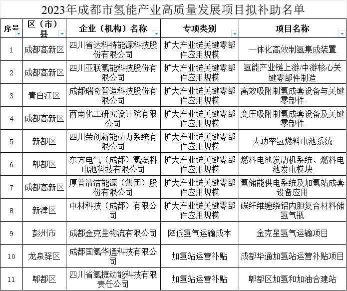 東方電氣/中材科技/厚普股份/榮創新能等,成都市11家企業11項目進入氫能補助名單2024-07-19 15:44瀏覽數:174次