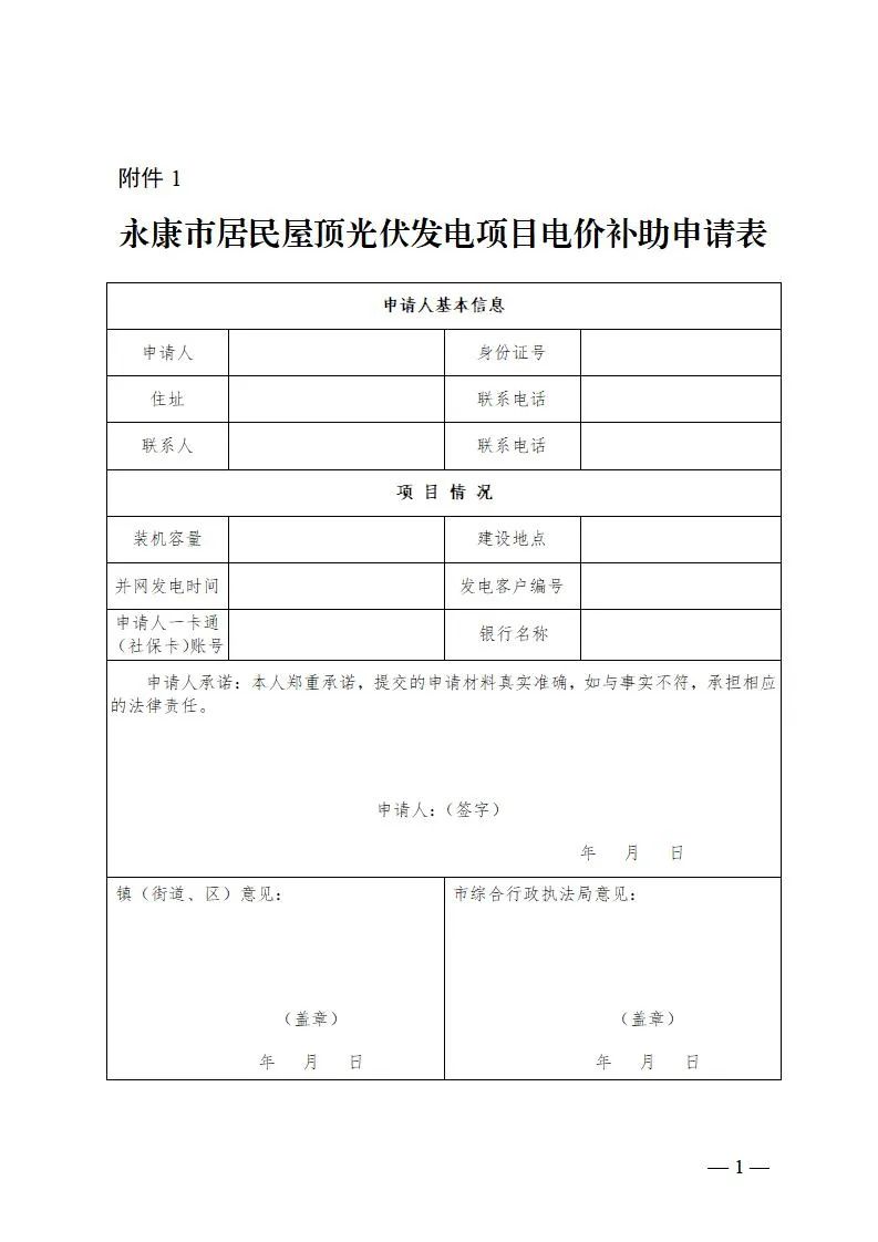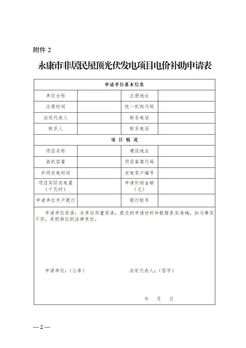 7月17日(ri),浙江永康市人民(min)(min)政(zheng)府組織申報(bao)(bao)2023年度(du)分布式(shi)光伏(fu)發電財政(zheng)補助項(xiang)(xiang)目,申報(bao)(bao)范圍包括屋頂分布式(shi)光伏(fu)發電項(xiang)(xiang)目和非(fei)居民(min)(min)用戶側儲(chu)能項(xiang)(xiang)目。 申(shen)報要求項(xiang)目(mu)于2022年(nian)1月1日至2022年(nian)12月31日期(qi)間建(jian)成并網(wang)發電,其中(zhong)非(fei)居民光伏(fu)和用戶(hu)側儲(chu)能(neng)項(xiang)目(mu)須通過市相(xiang)關部(bu)門組織(zhi)的(de)驗收。符合條件的(de)各類投資(zi)主體需于7月31日前提出資(zi)金補(bu)助申(shen)請。 據此前發布(bu)《永康市(shi)整市(shi)屋頂(ding)分布(bu)式(shi)光伏開發試(shi)點實施(shi)方案》顯示,至2024年(nian)12月31日期間建成的屋頂(ding)分布(bu)式(shi)光伏發電項目(mu)(mu)、非(fei)(fei)居(ju)(ju)民(min)用戶側(ce)儲(chu)能項目(mu)(mu)給(gei)予財政補(bu)助。其(qi)中,對非(fei)(fei)居(ju)(ju)民(min)用戶側(ce)儲(chu)能項目(mu)(mu)(年(nian)利用小時(shi)數(shu)不(bu)低于600小時(shi)),按照儲(chu)能設施(shi)的功率給(gei)予一次性補(bu)助,補(bu)助標準按150元、120元、100元每(mei)千瓦逐年(nian)退坡,已(yi)享(xiang)受省級補(bu)助的項目(mu)(mu)不(bu)再重復補(bu)助。 原文如下: 關于組(zu)織申報(bao)2023年度分布式光伏(fu)發(fa)電財政補助項目的通知 各鎮人民(min)政(zheng)府、街(jie)道辦事(shi)處,經濟開發區、高新技(ji)術產業園區、方巖(yan)風景名勝區、江南山水新城(cheng)管委會,市(shi)政(zheng)府相關部門(men): 根據《永(yong)康市人民政府(fu)辦公室關于印(yin)發(fa)整市屋(wu)頂分布式光伏(fu)(fu)開(kai)發(fa)試點實施方案(an)的(de)通(tong)知》(永(yong)政辦發(fa)〔2022〕55號)文件精神,現就組織申報我(wo)市2023年度(du)分布式光伏(fu)(fu)發(fa)電財政補(bu)助(zhu)項(xiang)目的(de)有關事項(xiang)通(tong)知如下: 一、申報范圍 1.在本市范(fan)圍內新(xin)建屋頂分布式光(guang)伏發電項(xiang)目和非(fei)居民用戶側儲能項(xiang)目的各(ge)類(lei)投資(zi)主體(ti)。 2.項目(mu)于2022年1月1日至2022年12月31日期間建成并網發電,其中非(fei)居(ju)民(min)光伏和(he)用戶(hu)側儲能(neng)項目(mu)須通(tong)過市相關部門組織的驗(yan)收。 二、申報程序 (一(yi))居民屋頂光伏發電(dian)項目(mu) 居民屋(wu)頂光(guang)伏(fu)發(fa)(fa)電項(xiang)目業主將(jiang)申(shen)請(qing)補助材料(一式(shi)兩份)上報所(suo)在鎮(街(jie)道(dao)、區)審核(he),鎮(街(jie)道(dao)、區)初(chu)審合(he)格后(hou)報送市光(guang)伏(fu)辦(市行政服務中心三(san)樓(lou)發(fa)(fa)改局窗口)。申(shen)請(qing)材料包(bao)括: 1.永康市(shi)居(ju)民(min)屋頂光(guang)伏(fu)發電項目電價補(bu)助(zhu)申(shen)請表(biao)(附件1); 2.申請人身份證復印件。 (二)非居民屋頂光(guang)伏(fu)發電(dian)項目、用戶側儲能項目 非居民屋頂光伏發電項目(mu)、用戶側儲能項目(mu)業(ye)主登錄永康市獎補資金信(xin)息管理系統(tong)(//czjb.yk.gov.cn/)進行申報(bao)。申報(bao)材料包括: 1.永康市非居(ju)民(min)屋頂光伏發電項目(mu)電價補助申(shen)請表(biao)(biao)(附件(jian)2)、永康市用戶側儲能項目(mu)電價補助申(shen)請表(biao)(biao)(附件(jian)3); 2.申請(qing)人營業執照(zhao)復印(yin)件; 3.項目現場照片。 三、資金結算 經審核通(tong)過的項目補助(zhu)資金,由(you)代理(li)銀行(xing)直接(jie)匯入補助(zhu)對象銀行(xing)賬號(hao)。 四、相關要求 1.符合條件的各類投資主(zhu)體(ti)于7月(yue)31日(ri)前提出資金補助申請。 2.各鎮(街道、區)、綜合行政執法部門(men)簡化審核手續(xu)、縮短審核流程,按照《永康(kang)市(shi)整(zheng)市(shi)屋(wu)頂分布式光(guang)伏(fu)(fu)開發(fa)試點(dian)實施方案》(永政辦發(fa)〔2022〕55號)要求(qiu),做(zuo)好居民屋(wu)頂光(guang)伏(fu)(fu)發(fa)電(dian)項(xiang)目資金補助初審工作。 3.市供電(dian)公司要(yao)認真核定光(guang)伏項目(mu)發電(dian)量數據、用(yong)戶側(ce)儲(chu)能項目(mu)年利用(yong)小時數,并及時提供給市光(guang)伏辦。 五、監督管理 1.信息公開 堅(jian)持公開公正、規范透明的原則,資金補(bu)助各環節公開,實(shi)行陽光操(cao)作。 2.資料歸檔 涉及補助(zhu)資(zi)金發放(fang)工作的(de)各有關單位應(ying)及時(shi)做好相關文件資(zi)料的(de)歸檔工作,并妥善(shan)保管。 3.加強管理 各類投資(zi)主體在申請補(bu)助(zhu)資(zi)金(jin)時,必須按規定(ding)如(ru)實申報,如(ru)有(you)弄(nong)虛作(zuo)假、騙取補(bu)助(zhu)等情況,一(yi)經查實,將按規定(ding)追究責任。 聯系人:市光伏辦(設發改局),聯系電話:0579-87101361。 附件:1.永康市居民(min)屋頂光伏發電項目電價(jia)補(bu)助申請表 2.永康市非居民(min)屋頂光伏發電項目電價(jia)補(bu)助申請表(biao) 3.永康市用戶側儲(chu)能項目(mu)電價補(bu)助申請表 永康市分布(bu)式(shi)光伏發電應(ying)用工作領(ling)導(dao)小組辦(ban)公(gong)室 2024年(nian)7月15日