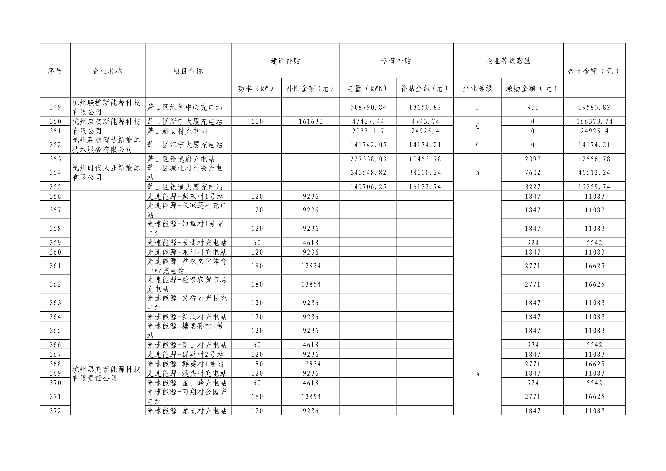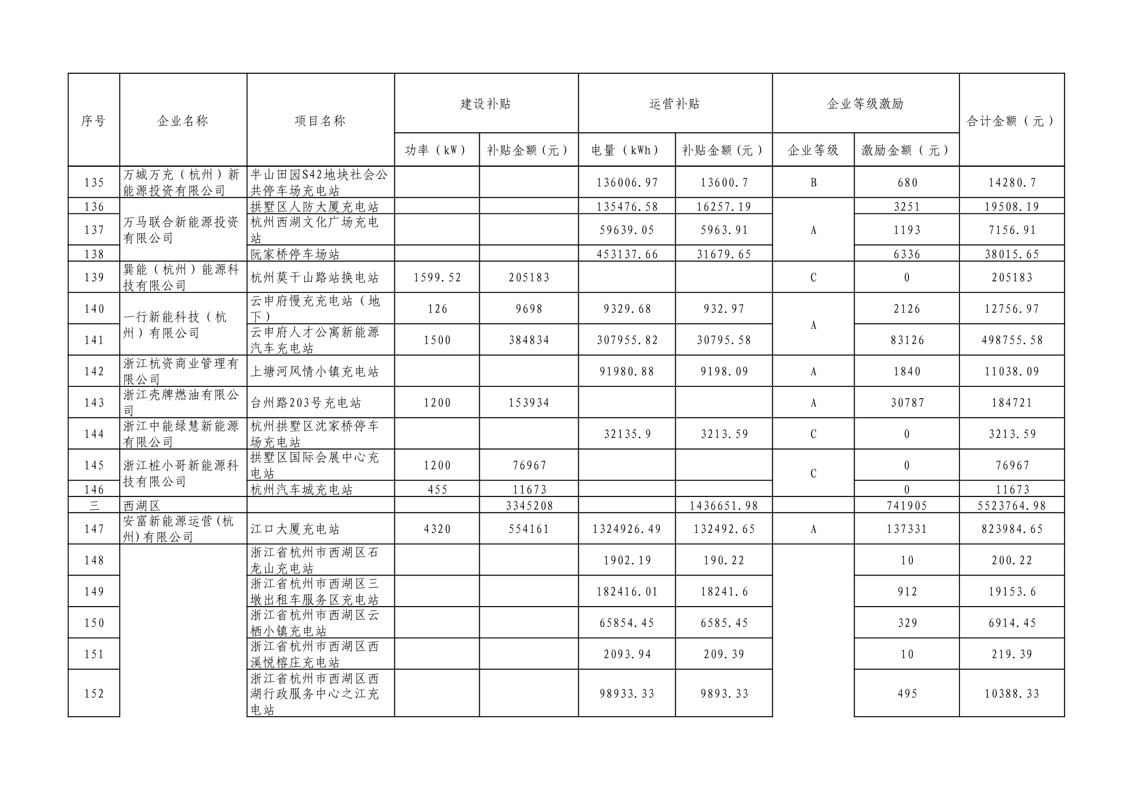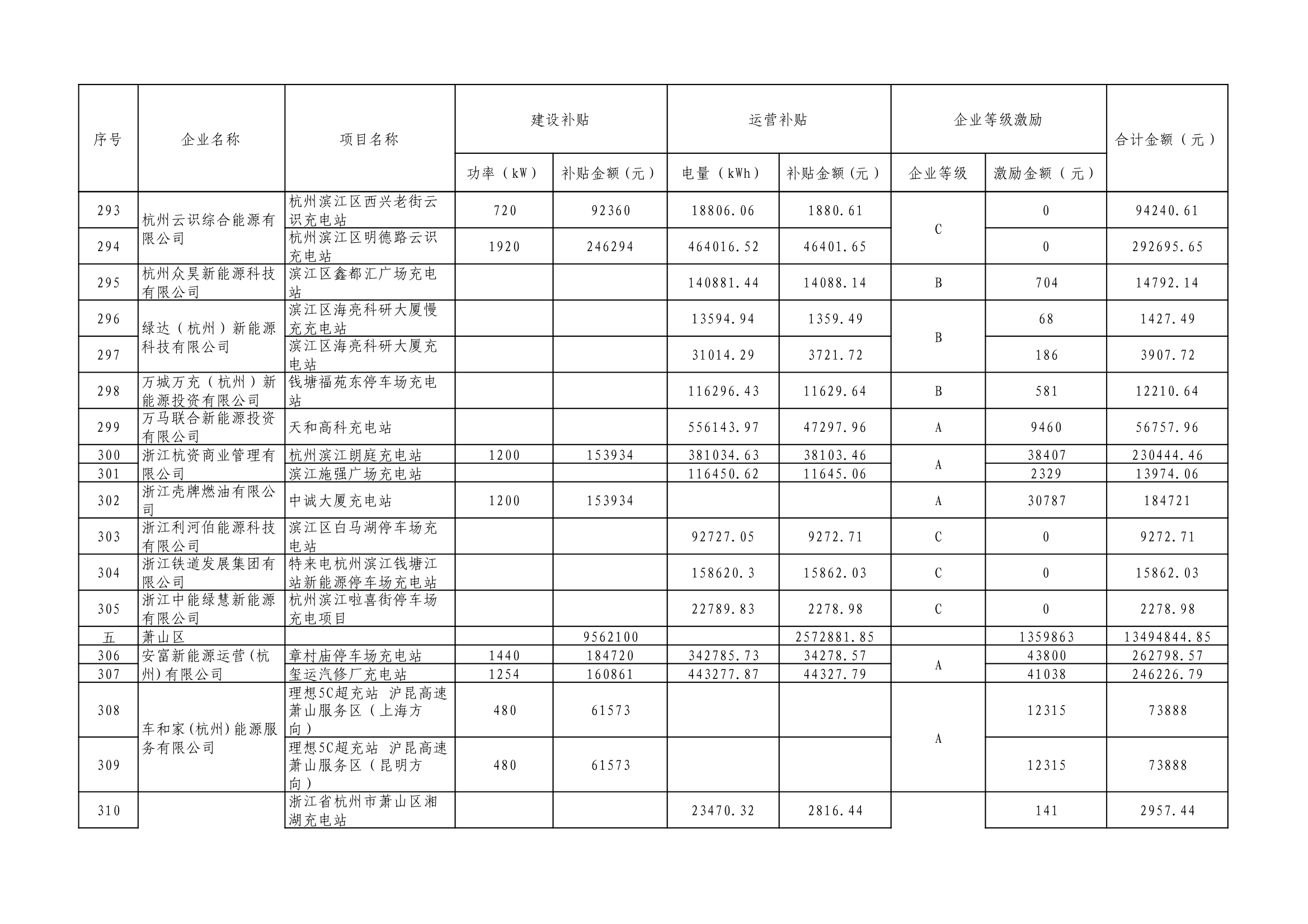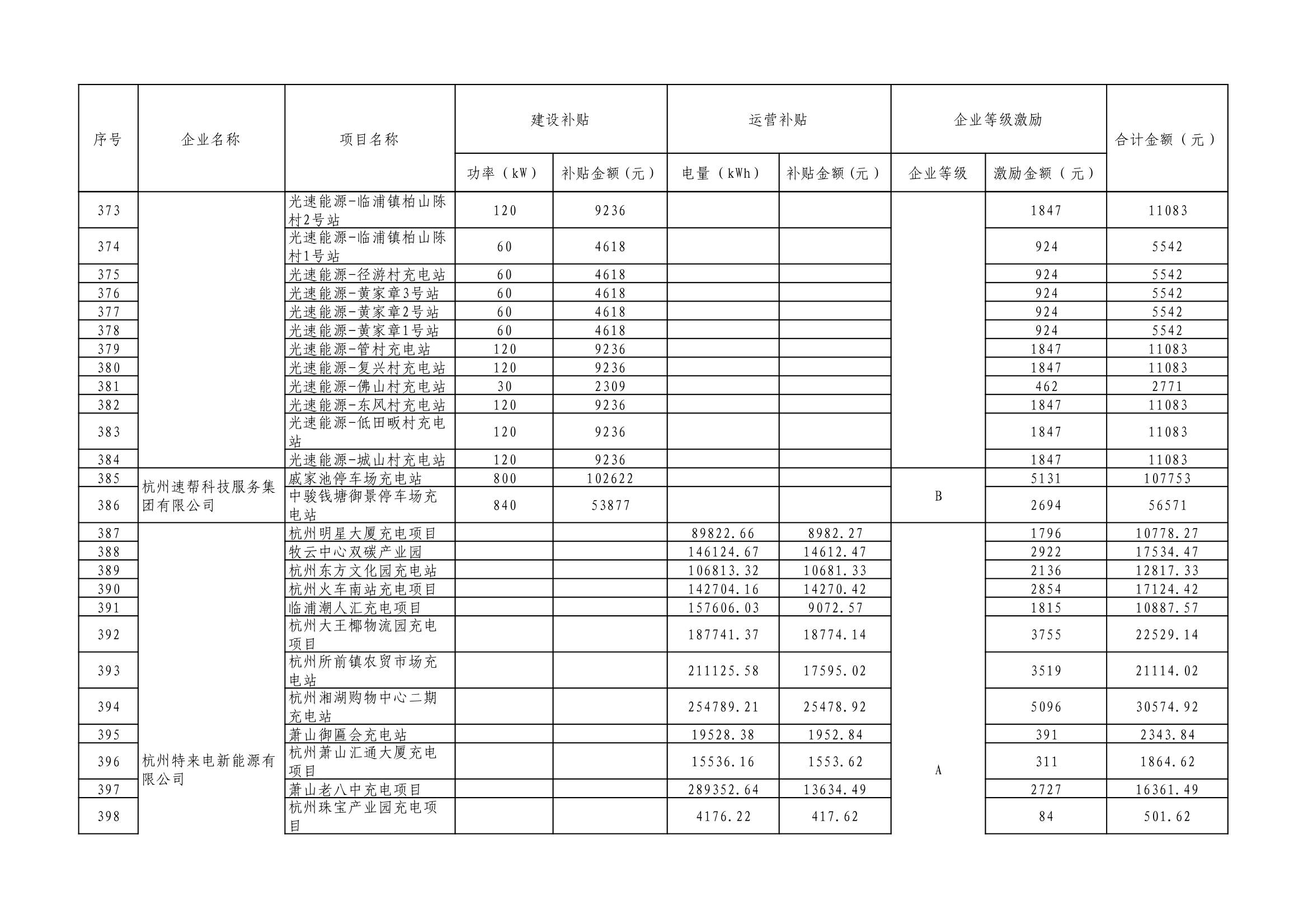 8月2日,浙江杭州市城(cheng)鄉建(jian)設委員會(hui)公示了(le)《2024年新(xin)能(neng)源汽車公用充電設施建(jian)設和(he)運營獎勵(li)補(bu)貼(tie)(tie)名單》。附件顯(xian)示,共有905個項(xiang)目列入(ru)補(bu)貼(tie)(tie)名單,其中(zhong)建(jian)設補(bu)貼(tie)(tie)總(zong)額(e)34954612元(yuan),運營補(bu)貼(tie)(tie)總(zong)額(e)11627567元(yuan),企業激勵(li)總(zong)額(e)5516336元(yuan),合(he)計共5209.85萬元(yuan)。 原文如下: 關于2024年新能(neng)源汽車公用(yong)充電設施建設和運營獎勵補貼(tie)名單(dan)的(de)公示 根據《杭(hang)州市(shi)(shi)城鄉(xiang)建(jian)設(she)(she)(she)委(wei)員會(hui) 杭(hang)州市(shi)(shi)財政局關(guan)于印發<杭(hang)州市(shi)(shi)新(xin)能源電動汽車公共充(chong)電設(she)(she)(she)施(shi)(shi)獎(jiang)(jiang)勵補(bu)貼(tie)(tie)資金分(fen)配實施(shi)(shi)細(xi)(xi)則(ze)>的通知》(杭(hang)建(jian)地(di)空(kong)〔2023〕172號)要求,經(jing)企業自主申報,所(suo)屬區、縣(市(shi)(shi))城鄉(xiang)建(jian)設(she)(she)(she)部門審核,確定2024年新(xin)能源汽車公用充(chong)電設(she)(she)(she)施(shi)(shi)建(jian)設(she)(she)(she)和運營獎(jiang)(jiang)勵補(bu)貼(tie)(tie)名單。建(jian)設(she)(she)(she)補(bu)貼(tie)(tie)金額按照標(biao)準下浮36%,A級(ji)企業按照實施(shi)(shi)細(xi)(xi)則(ze)標(biao)準上浮20%,B級(ji)企業按照標(biao)準上浮5%,現予以公示,公示期5個(ge)工作日(2024年8月2日-8月8日)(公示名單詳見附件)。 公示(shi)期間,任(ren)何單位(wei)或(huo)個(ge)人(ren)如有意見(jian)和建議,可通過(guo)電話、電子郵(you)件等形式向我委(wei)反(fan)映(ying)。反(fan)映(ying)情況(kuang)(kuang)需客觀真實(shi),以單位(wei)名義反(fan)映(ying)情況(kuang)(kuang)的材料需加蓋公章,以個(ge)人(ren)名義反(fan)映(ying)情況(kuang)(kuang)的材料應署實(shi)名并(bing)提供聯系方式。 聯(lian)(lian)系人:呂恬睿 聯(lian)(lian)系電話:0571-87173389 電子郵箱:hangzhoucdz@163.com 附件:關于2024年(nian)新能(neng)源汽車公用充電(dian)設施建設和(he)(he)運營獎勵補(bu)(bu)貼名(ming)單的公示2024年(nian)新能(neng)源汽車公用充電(dian)設施建設和(he)(he)運營獎勵補(bu)(bu)貼名(ming)單.pdf 杭州市(shi)城鄉建(jian)設委員會 2024年8月2日
