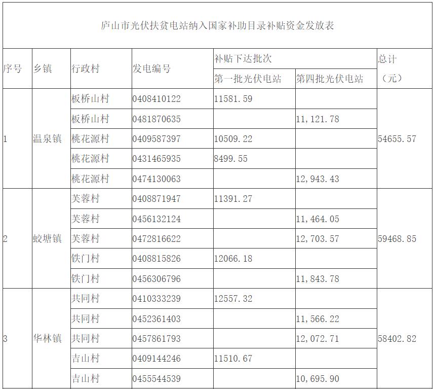 8月(yue)15日(ri),江西省廬山市人民政(zheng)府(fu)發布《關于下(xia)撥(bo)村級光伏電站2024年度第一(yi)批上(shang)網電量(liang)國(guo)家補(bu)貼的通知》,將該市已建(jian)成并(bing)網發電并(bing)納入國(guo)家補(bu)助目錄的村級光伏電站上(shang)網電量(liang)國(guo)家度電補(bu)貼資(zi)金(jin)進行下(xia)撥(bo),下(xia)撥(bo)補(bu)貼總金(jin)額(e)超(chao)過41萬元。 根據《通知》,村級光伏扶貧電站收益只能按以下原則進行分配: (一)設置公益性崗(gang)位(道路維護員(yuan)、保潔員(yuan)、安全巡護員(yuan)、護林防火員(yuan)等(deng)),支持脫貧戶、監(jian)測戶就地(di)就業,尤(you)其(qi)是使老弱殘(can)或(huo)半(ban)勞動力人(ren)口通(tong)過力所能及的勞務增加收入; (二(er))開展小型公益事(shi)業(村內(nei)道路(lu)維修,衛生整治等); (三)設立小微獎(jiang)勵補助(zhu)(獎(jiang)勵先進、困(kun)難等)。 同時,《通知(zhi)》明確(que):嚴(yan)禁將(jiang)收(shou)(shou)益(yi)簡單平均分配,堅決避免養貧(pin)助懶(lan)。光(guang)伏扶貧(pin)電站(zhan)收(shou)(shou)益(yi)資(zi)金使(shi)用須堅持公(gong)(gong)平、公(gong)(gong)正、公(gong)(gong)開,切實(shi)做好分配的公(gong)(gong)示公(gong)(gong)告,確(que)保光(guang)伏收(shou)(shou)益(yi)資(zi)金落到實(shi)處,嚴(yan)禁將(jiang)資(zi)金滯(zhi)留在鄉村賬(zhang)上。 廬山市光伏扶貧電站納入國家補助目錄補貼資金發放表 上一篇: 貴州省能源局最新人事任免!!