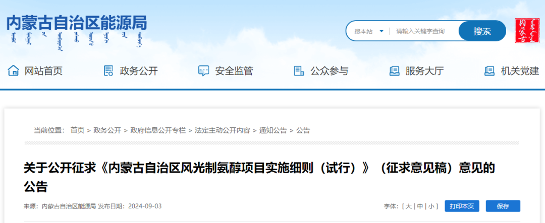 配置15%*4h儲能!內蒙發布風光制氨醇項目實施細則(試行)征求意見稿2024-09-05 16:01瀏覽數:189次