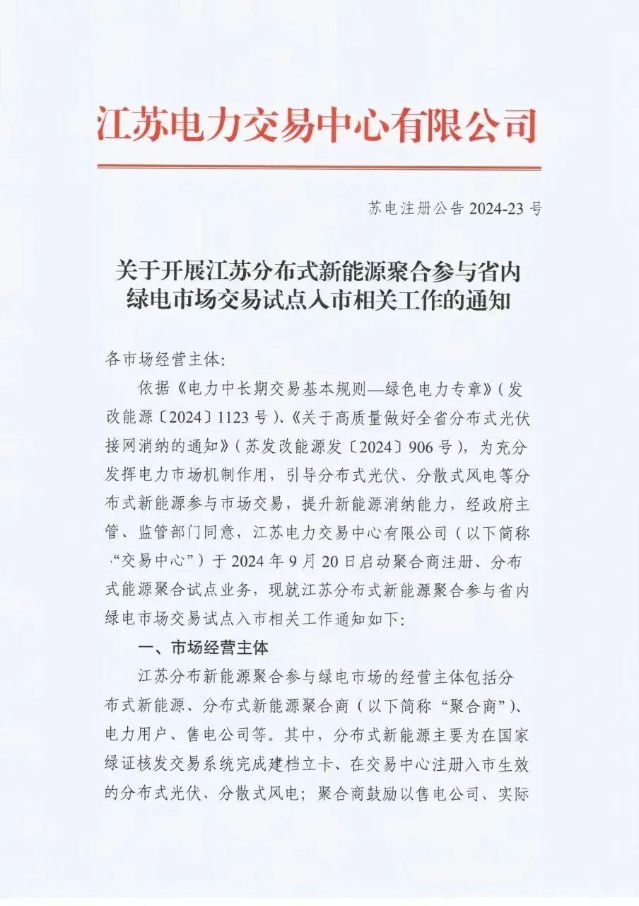 9月18日,江(jiang)蘇(su)省(sheng)電力交易中心發布(bu)《關于開展(zhan)江(jiang)蘇(su)分布(bu)式新能源聚(ju)合參與省(sheng)內綠電市場(chang)交易試點入市相關工作的通(tong)知》。 根據(ju)通知,江蘇分(fen)布新(xin)(xin)能源(yuan)聚(ju)合參與綠電市場(chang)的(de)經營(ying)主體包括分(fen)布式(shi)新(xin)(xin)能源(yuan)、分(fen)布式(shi)新(xin)(xin)能源(yuan)聚(ju)合商、電力(li)用戶、售電公司等。 其(qi)中,分(fen)布式(shi)新能源主要(yao)為在(zai)國(guo)家綠證(zheng)核發交易系統完成建檔立卡、在(zai)交易中心注冊入(ru)市生(sheng)效(xiao)的(de)分(fen)布式(shi)光伏、分(fen)散(san)式(shi)風電(dian);聚合(he)商鼓勵以售(shou)電(dian)公司(si)、實際(ji)并網運行的(de)發電(dian)企業為基礎培育(yu)。 分布式新(xin)能(neng)源入(ru)市辦(ban)理途徑(jing)共(gong)有兩種,可選擇直接參(can)(can)與(yu)或者由(you)聚(ju)合(he)商(shang)聚(ju)合(he)參(can)(can)與(yu)綠電市場(chang)。鼓勵分布式新(xin)能(neng)源與(yu)聚(ju)合(he)商(shang)使用電子營業執照辦(ban)理入(ru)市相(xiang)關業務,直接交易入(ru)市申請(qing)和聚(ju)合(he)交易入(ru)市申請(qing)流程見文(wen)末。 詳情見(jian)下(xia): 下一篇: 明陽光伏0BB-HJT高效組件量產!