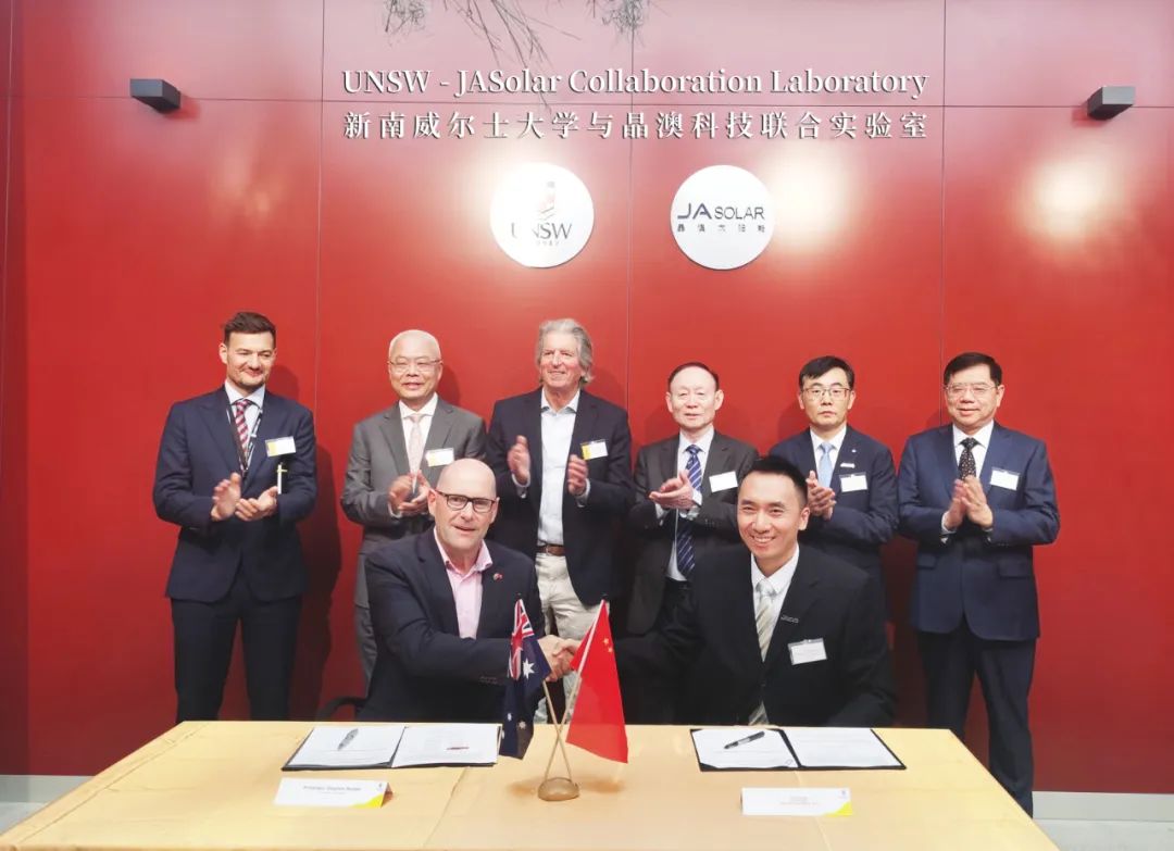 9月23日,晶(jing)澳(ao)科(ke)技(ji)與新南(nan)威(wei)爾(er)(er)(er)士(shi)(shi)大(da)學(xue)(xue)(xue)聯合(he)實(shi)驗(yan)室揭牌暨首(shou)批研(yan)(yan)發項(xiang)(xiang)目簽(qian)約(yue)儀式在澳(ao)大(da)利亞(ya)新南(nan)威(wei)爾(er)(er)(er)士(shi)(shi)大(da)學(xue)(xue)(xue)隆重舉行,晶(jing)澳(ao)科(ke)技(ji)董事長靳(jin)保芳,新南(nan)威(wei)爾(er)(er)(er)士(shi)(shi)大(da)學(xue)(xue)(xue)常務副(fu)(fu)校長Vlado Perkovic,“世(shi)界太陽能之父”、新南(nan)威(wei)爾(er)(er)(er)士(shi)(shi)大(da)學(xue)(xue)(xue)教授馬丁·格林(Martin Green),新南(nan)威(wei)爾(er)(er)(er)士(shi)(shi)大(da)學(xue)(xue)(xue)材料和(he)未來制造學(xue)(xue)(xue)院院長Sean Li等出席活動(dong)(dong),為(wei)聯合(he)實(shi)驗(yan)室揭牌剪(jian)彩并見(jian)證研(yan)(yan)發項(xiang)(xiang)目合(he)作(zuo)簽(qian)約(yue)。晶(jing)澳(ao)科(ke)技(ji)副(fu)(fu)總裁、首(shou)席技(ji)術官(guan)歐陽子,新南(nan)威(wei)爾(er)(er)(er)士(shi)(shi)大(da)學(xue)(xue)(xue)研(yan)(yan)發及(ji)產業合(he)作(zuo)助理校長Stephen Rodda分(fen)別代表雙(shuang)方(fang)簽(qian)約(yue)。聯合(he)實(shi)驗(yan)室的創(chuang)建,標志著雙(shuang)方(fang)產學(xue)(xue)(xue)研(yan)(yan)合(he)作(zuo)進一步深度(du)融(rong)合(he),借(jie)助新南(nan)威(wei)爾(er)(er)(er)士(shi)(shi)大(da)學(xue)(xue)(xue)領先的光伏科(ke)研(yan)(yan)資源,雙(shuang)方(fang)強(qiang)強(qiang)聯合(he),優勢(shi)互補,必將加快(kuai)推動(dong)(dong)更多先進技(ji)術的研(yan)(yan)發和(he)成果應用。 揭牌(pai)剪彩儀式現場合(he)影 雙方簽約(yue)首(shou)批研發項目 靳保芳(fang)董事長(chang)在(zai)致辭(ci)中(zhong)表示(shi),晶澳與新(xin)南威爾士大(da)學淵源頗(po)深(shen),自晶澳成立之初雙方便建立了(le)深(shen)厚的(de)合(he)作基(ji)礎。新(xin)南威爾士大(da)學擁有(you)世界領先的(de)科研(yan)和人才(cai)優勢,特別是在(zai)光伏等可再生能源領域擁有(you)卓越的(de)科研(yan)實力和豐(feng)富的(de)人才(cai)資源。希望通過(guo)此次合(he)作,共同推(tui)動光伏行業技術進(jin)步和科研(yan)成果轉化,助力全球新(xin)能源產業的(de)低碳綠色發展。 Vlado Perkovic常務副校長(chang)表示,新南威爾士(shi)大學與晶澳(ao)科技長(chang)期保持合作關系,非常高興能(neng)與全球領(ling)先的晶澳(ao)科技再(zai)次攜手合作,期待雙(shuang)方在光伏(fu)電(dian)池、組件技術、新材料、碳減(jian)排技術等多方面開(kai)展(zhan)深入(ru)的技術交流和(he)合作,共同推動(dong)全球能(neng)源轉型。 活動期間,雙(shuang)方還圍繞更(geng)廣(guang)泛的光(guang)伏技術應用合(he)作、人才培訓,以及邢(xing)臺新能源職(zhi)業學院(yuan)與新南威爾士大學校(xiao)(xiao)校(xiao)(xiao)合(he)作等進行了深入交流。