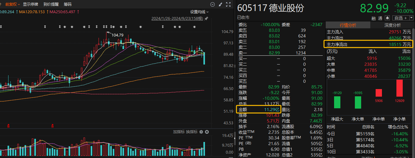 9月23日,德業股份放量跌停。截至收(shou)盤,德業股份報82.99元/股,成交額11.29億元,總市值535億元,主(zhu)力(li)資金凈流(liu)出1.85億元。 ![]() 南方財經(jing)(jing)全媒體記(ji)者以投(tou)(tou)資人(ren)身份聯系(xi)了德(de)業股份投(tou)(tou)資者關(guan)系(xi)部門,對于今日股價,相關(guan)人(ren)士稱,公(gong)司目前(qian)經(jing)(jing)營正常(chang)。 根據德業股份2024年半年報,今年上半年,該公司逆變器產品主要銷往巴基斯坦、德國、巴西等國。有消息稱,巴基斯坦電價有望大幅下降,對此,上述人士稱,目前公司未收到此消息,大家可能看到有這么一個變化,歸結于這個原因引起的(股價大跌)。該人士還表示,今天光伏板塊整體都在跌,不僅僅是公司(股價)。 行業整體來看,2024年,我國(guo)的(de)逆變(bian)器對巴(ba)基(ji)斯(si)坦(tan)(tan)的(de)出口(kou)呈現高速增(zeng)長(chang)(chang)態勢。中國(guo)海關總署(shu)數據顯示,2024年1月至7月,逆變(bian)器出口(kou)至巴(ba)基(ji)斯(si)坦(tan)(tan)的(de)金(jin)額為20.75億元,同比增(zeng)長(chang)(chang)311.08%,其中7月出口(kou)金(jin)額為3.61億元,同比增(zeng)長(chang)(chang)393.91%。 2024年(nian)上(shang)半年(nian),在光伏(fu)(fu)(fu)(fu)產(chan)業主要制造環節盈利(li)能力持續(xu)承壓(ya)之(zhi)下,光伏(fu)(fu)(fu)(fu)逆(ni)變器(qi)企(qi)業扛住了沖擊。投資快報記者留意(yi)到,處于光伏(fu)(fu)(fu)(fu)產(chan)業鏈核心的硅(gui)料硅(gui)片、光伏(fu)(fu)(fu)(fu)電(dian)池組件板(ban)塊出現大面(mian)積虧損,而與產(chan)業鏈相關的逆(ni)變器(qi)、光伏(fu)(fu)(fu)(fu)輔材和(he)光伏(fu)(fu)(fu)(fu)加工(gong)設備領域(yu)多數(shu)企(qi)業卻逆(ni)市盈利(li),且部分企(qi)業歸母凈利(li)還有不錯的增長(chang)。 德業(ye)股份(fen)2024年半(ban)年度業(ye)績報告(gao)顯示,公(gong)司(si)上半(ban)年實現(xian)營業(ye)收入47.48億(yi)元(yuan)(yuan),同(tong)比下(xia)降2.97%;凈利潤12.36億(yi)元(yuan)(yuan),同(tong)比下(xia)降2.21%。截至報告(gao)期末,公(gong)司(si)總(zong)資產為135.49億(yi)元(yuan)(yuan),歸屬于上市公(gong)司(si)股東的凈資產為77.53億(yi)元(yuan)(yuan)。 海外(wai)儲(chu)(chu)能(neng)市場成為各大(da)光伏、儲(chu)(chu)能(neng)企業眼中的“香餑餑”。東吳證券分(fen)析認為,亞(ya)非拉(la)、南亞(ya)及烏克蘭等新興市場光儲(chu)(chu)平價拉(la)動需(xu)(xu)求(qiu)(qiu)高增,推(tui)動分(fen)布(bu)式光伏及儲(chu)(chu)能(neng)逆變器企業第二季(ji)度(du)業績(ji)環比高增,第三(san)季(ji)度(du)持續(xu)向好;歐美(mei)(mei)戶儲(chu)(chu)持續(xu)去(qu)庫存(cun),降(jiang)息開始,有(you)望拉(la)動需(xu)(xu)求(qiu)(qiu)逐步(bu)恢復;美(mei)(mei)國大(da)儲(chu)(chu)需(xu)(xu)求(qiu)(qiu)持續(xu)旺盛,歐洲、中東、拉(la)美(mei)(mei)等大(da)儲(chu)(chu)需(xu)(xu)求(qiu)(qiu)爆發(fa),大(da)儲(chu)(chu)龍頭訂單充足。 另據(ju)CNESA全(quan)球儲能數據(ju)庫(ku)不(bu)完全(quan)統計,2024年上(shang)半年,中國儲能企業簽約(yue)訂(ding)單規模超過80GWh,其中海外訂(ding)單簽約(yue)規模超過50GWh。