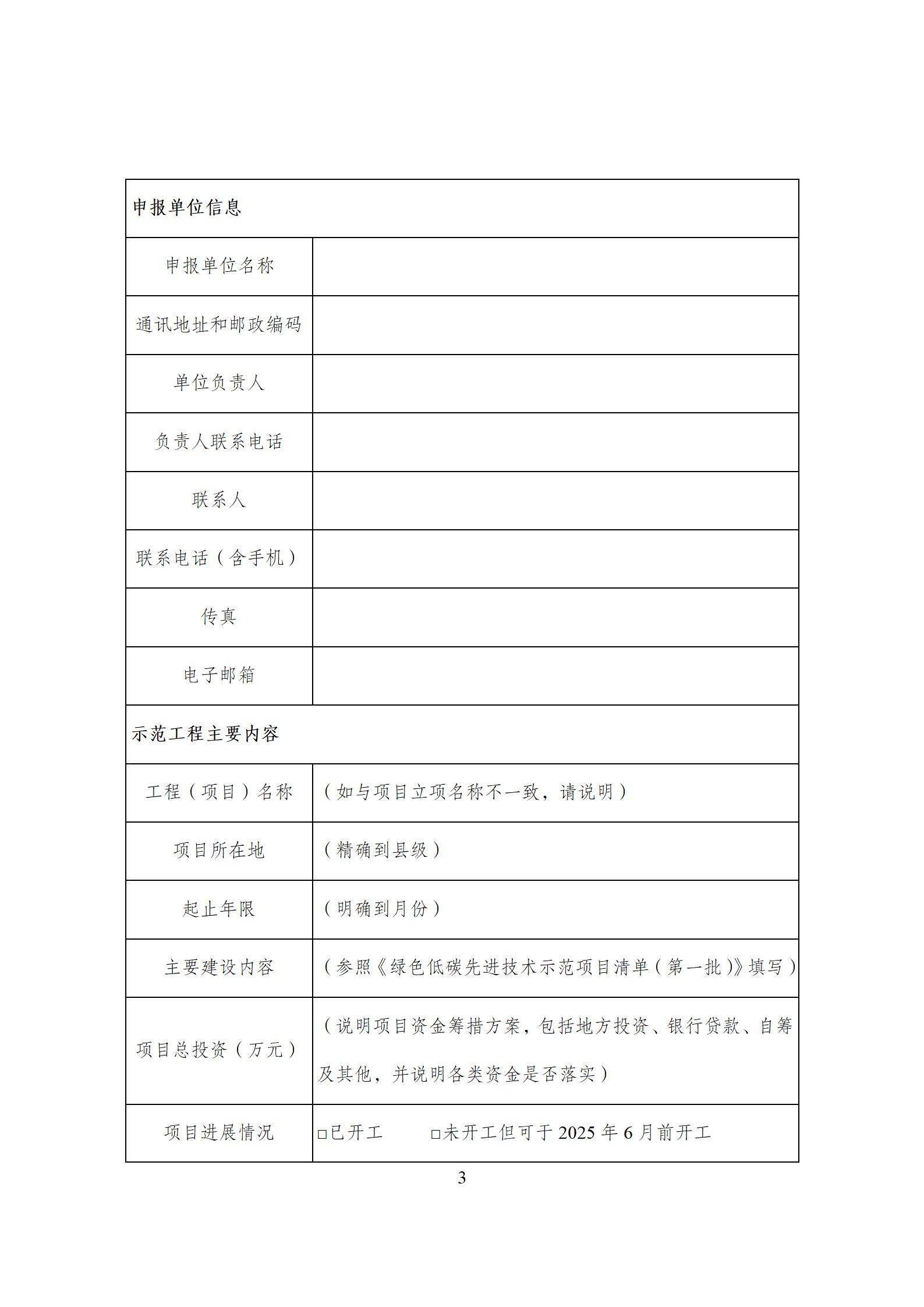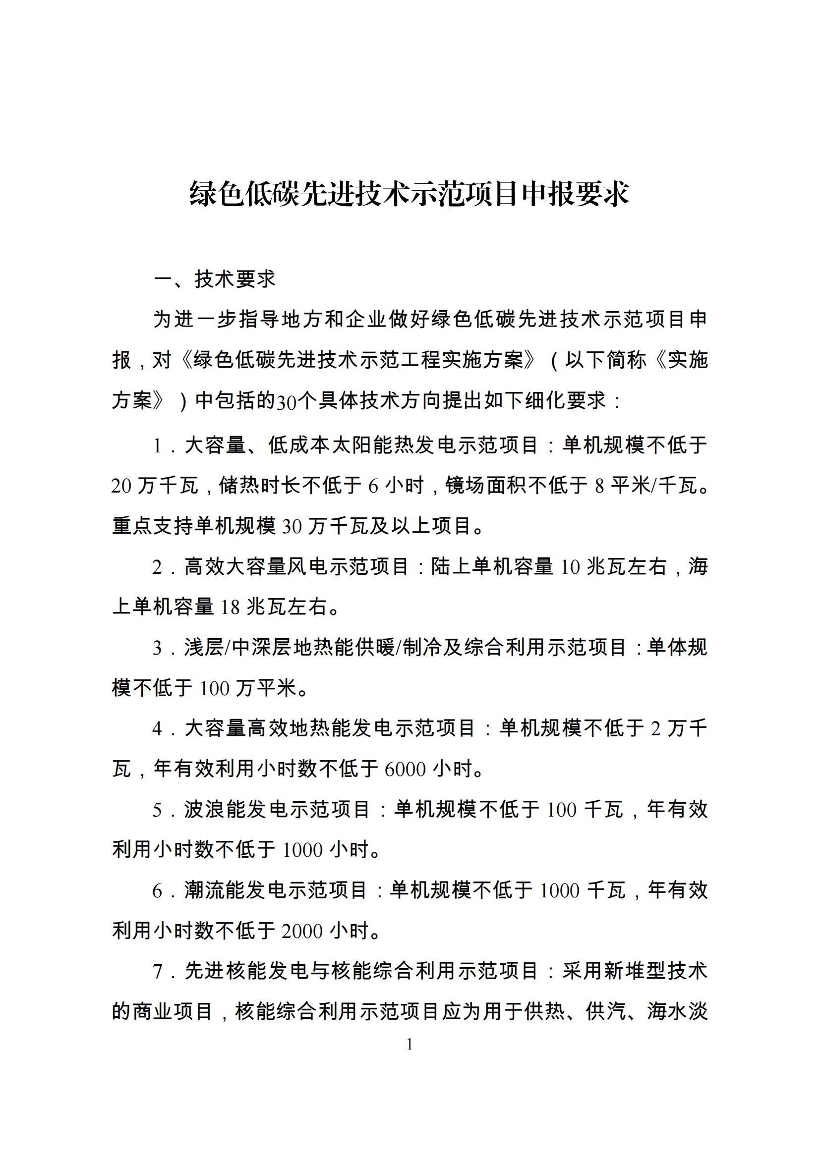 9月25日,北京市發展和改革委員會發布關于開展第二批綠色低碳先進技術示范項目申報的通知。 原文如下: 北京市發展和改革委員會關于開展第二批綠色低碳先進技術示范項目申報的通知 京發改〔2024〕1411號 各有關單位: 根據國家發展改革委辦公廳印發的《關于組織申報第二批綠色低碳先進技術示范項目的通知》(發改辦環資〔2024〕759號,見附件1)要求,結合本市構建市場導向的綠色技術創新體系工作基礎,現組織開展本市第二批綠色低碳先進技術示范項目申報工作,并就具體事項通知如下: 一、申報項目須滿足《綠色低碳先進技術示范項目申報要求》(見附件2)。 二、在京中央企業示范項目向國務院國資委申報,不通過本市推薦;其他在京企業示范項目通過我委向國家發展改革委推薦。 三、請市級行業主管部門和各區發展改革委加強申報工作的宣傳組織。 四、企業向我委報送第二批綠色低碳先進技術示范項目申報表(見附件3)及相關材料,我委將請第三方專業機構對項目申報材料進行初步審核,組織專家、各行業主管部門對項目開展評審、合議,按照原則上不超過10個的要求,向國家發展改革委匯總推薦第二批綠色低碳先進技術示范項目。 五、請于2024年10月8日12:00前,將電子版申報材料(含蓋公章掃描件及可編輯Word版)以“XX項目-第二批綠色低碳先進技術示范項目申報”為標題,報送至市發展改革委資環處,電子郵箱地址為hzc@fgw.beijing.gov.cn。逾期申報項目將不納入本次示范項目評選推薦。 六、咨詢電話:66419876-0803、55590329、55590643。 特此通知。 附件:1. 2. 3. 北京市發展和改革委員會 2024年9月24日 附件: 上一篇: 法國光伏企業Photowatt將被收購!