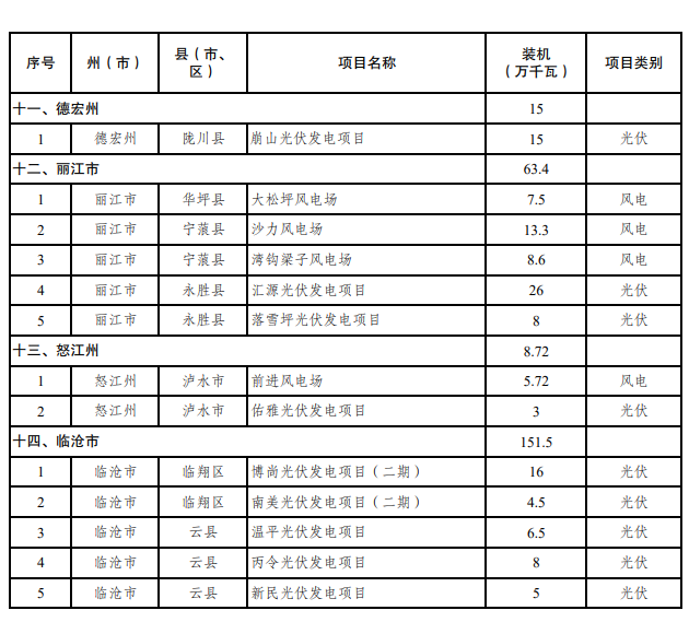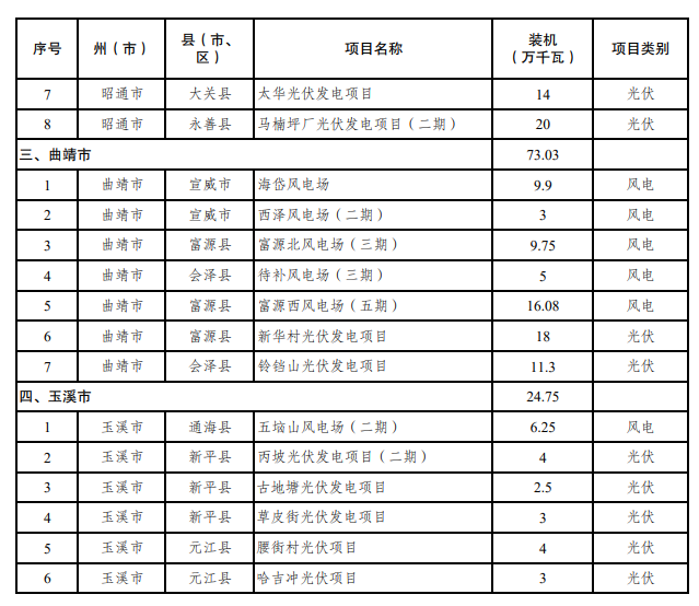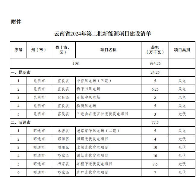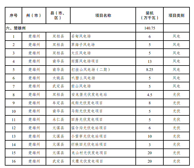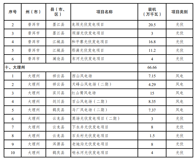 10月14日,云(yun)南省能(neng)源(yuan)局下發2024年第(di)(di)二批(pi)新(xin)能(neng)源(yuan)項(xiang)目(mu)開(kai)發建(jian)設(she)方案(an),此次納入云(yun)南省2024年第(di)(di)二批(pi)新(xin)能(neng)源(yuan)項(xiang)目(mu)開(kai)發建(jian)設(she)方案(an)實施的項(xiang)目(mu)共108個,裝機(ji)934.75萬千(qian)(qian)瓦,其中,風電項(xiang)目(mu)30個、裝機(ji)容(rong)量242.26萬千(qian)(qian)瓦;光伏(fu)項(xiang)目(mu)78個、裝機(ji)容(rong)量692.49萬千(qian)(qian)瓦。 原(yuan)文見下: 云南省2024年第二批新能源項目開發建設方案 為深入貫徹(che)落實(shi)習近平總書記關于(yu)大(da)力(li)推(tui)動(dong)我國新(xin)能(neng)源(yuan)高質量(liang)發(fa)(fa)(fa)展(zhan)的重(zhong)要講話精神(shen),全(quan)面貫徹(che)落實(shi)黨的二十屆(jie)三中(zhong)全(quan)會精神(shen)關于(yu)完(wan)善推(tui)動(dong)新(xin)能(neng)源(yuan)等戰略性產業發(fa)(fa)(fa)展(zhan)政(zheng)策,扎實(shi)推(tui)進(jin)省(sheng)委“3815”戰略發(fa)(fa)(fa)展(zhan)目標實(shi)施,持續(xu)打造(zao)綠色能(neng)源(yuan)強省(sheng)的要求(qiu),大(da)力(li)發(fa)(fa)(fa)展(zhan)新(xin)能(neng)源(yuan),全(quan)面建成國家清潔能(neng)源(yuan)基地,提升電力(li)供給能(neng)力(li),根據《云南省(sheng)人民政(zheng)府印(yin)發(fa)(fa)(fa)關于(yu)加(jia)快光伏發(fa)(fa)(fa)電發(fa)(fa)(fa)展(zhan)若干(gan)政(zheng)策措施的通(tong)知》(云政(zheng)發(fa)(fa)(fa)〔2022〕16號)等相(xiang)關要求(qiu),特(te)制定本方案。 工作要求: (一)規(gui)范程(cheng)序加快(kuai)(kuai)推進。有關州(市)和(he)(he)部門(men)應嚴格(ge)執行《云南省(sheng)發展(zhan)和(he)(he)改革委(wei)員會(hui) 云南省(sheng)能(neng)源(yuan)局關于(yu)進一步規(gui)范開發行為加快(kuai)(kuai)光伏發電(dian)發展(zhan)的通(tong)知》(云發改能(neng)源(yuan)〔2023〕264號)及《云南省(sheng)發展(zhan)和(he)(he)改革委(wei)員會(hui)關于(yu)加強光伏資(zi)源(yuan)開發建設有關工(gong)作的通(tong)知》(云發改能(neng)源(yuan)〔2023〕785號)等文件精神,規(gui)范資(zi)源(yuan)配(pei)置(zhi)(zhi),加強要素保障(zhang),提高審(shen)批備案效率(lv),強化調(diao)(diao)度監測,推動項目加快(kuai)(kuai)建設、按(an)期(qi)投產。同時(shi),按(an)照裝機的10%配(pei)置(zhi)(zhi)調(diao)(diao)節資(zi)源(yuan),可通(tong)過自建新(xin)型(xing)儲能(neng)設施、購(gou)買共享儲能(neng)服務等方式實現。 (二(er))強化日常(chang)調度(du)監管。州(zhou)(市(shi))能(neng)源主管部(bu)門落(luo)實(shi)(shi)項(xiang)(xiang)(xiang)目(mu)屬地監管責任(ren),建立項(xiang)(xiang)(xiang)目(mu)“日監測、周調度(du)、月(yue)通報(bao)”機制,重點調度(du)項(xiang)(xiang)(xiang)目(mu)前期手續辦理、工程建設進度(du)、投資(zi)完成、接網工程進展等(deng)情況,加(jia)強對項(xiang)(xiang)(xiang)目(mu)實(shi)(shi)施的全過程監督檢查。省發展改革委、省能(neng)源局將持(chi)續加(jia)強調度(du)項(xiang)(xiang)(xiang)目(mu)開(kai)工、投產(chan)等(deng)情況,針對推進緩慢的州(zhou)(市(shi))及項(xiang)(xiang)(xiang)目(mu)業主采取通報(bao)、約談等(deng)措施,違反相(xiang)關文(wen)件要求的啟動(dong)回收整改工作。 (三)壓(ya)實(shi)(shi)環保(bao)、安全(quan)(quan)生產(chan)等(deng)責(ze)任。嚴(yan)格(ge)落實(shi)(shi)《自然資源部辦(ban)公廳(ting) 國家(jia)林業(ye)和草原局辦(ban)公室 國家(jia)能源局綜合司關(guan)于(yu)支(zhi)持光(guang)(guang)伏(fu)發電產(chan)業(ye)發展規(gui)范用(yong)地(di)(di)管理(li)有關(guan)工(gong)作的通知(zhi)》《云(yun)(yun)南(nan)(nan)省(sheng)自然資源廳(ting) 云(yun)(yun)南(nan)(nan)省(sheng)能源局關(guan)于(yu)進一步(bu)支(zhi)持光(guang)(guang)伏(fu)扶貧和規(gui)范光(guang)(guang)伏(fu)發電產(chan)業(ye)用(yong)地(di)(di)的通知(zhi)》等(deng)文件要求(qiu),光(guang)(guang)伏(fu)復合項目嚴(yan)格(ge)按照標(biao)準架(jia)設光(guang)(guang)伏(fu)組件,除樁基用(yong)地(di)(di)外嚴(yan)禁(jin)硬化地(di)(di)面,嚴(yan)禁(jin)拋荒(huang)(huang)、撂荒(huang)(huang)等(deng)情(qing)況。嚴(yan)格(ge)落實(shi)(shi)《防止(zhi)電力建設工(gong)程施工(gong)安全(quan)(quan)事(shi)故三十項重(zhong)(zhong)點要求(qiu)》《防止(zhi)電力生產(chan)事(shi)故的二十五項重(zhong)(zhong)點要求(qiu)(2023版(ban))》及《云(yun)(yun)南(nan)(nan)省(sheng)能源局關(guan)于(yu)進一步(bu)加強新(xin)能源項目建設安全(quan)(quan)管理(li)工(gong)作的通知(zhi)》等(deng)要求(qiu),建立健全(quan)(quan)安全(quan)(quan)生產(chan)責(ze)任體系,壓(ya)緊(jin)壓(ya)實(shi)(shi)安全(quan)(quan)生產(chan)責(ze)任,守住安全(quan)(quan)生產(chan)底(di)線。 (四)嚴(yan)密(mi)防范(fan)廉(lian)政(zheng)(zheng)風險(xian)。州(市)以(yi)及縣(市、區)要(yao)切實履行屬地責(ze)任,督促項(xiang)目(mu)業(ye)主共同防范(fan)項(xiang)目(mu)資(zi)源配置(zhi)、項(xiang)目(mu)審(shen)批、開(kai)(kai)發建設(she)(she)等過程(cheng)中(zhong)的(de)廉(lian)政(zheng)(zheng)風險(xian),嚴(yan)格落實工程(cheng)項(xiang)目(mu)建設(she)(she)公開(kai)(kai)公示(shi)相關制度,嚴(yan)禁(jin)以(yi)非(fei)正當手段(duan)干預和插手工程(cheng)項(xiang)目(mu)建設(she)(she),依(yi)法(fa)依(yi)規推(tui)進(jin)項(xiang)目(mu)開(kai)(kai)發建設(she)(she)。 云南省2024年第二批新能源項目建設清單: