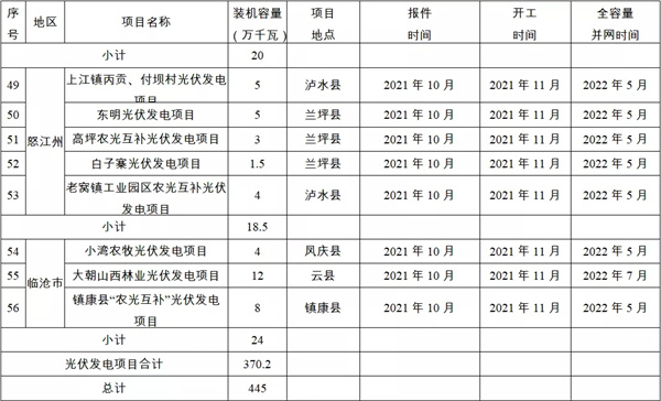 9月26日,云南(nan)省發展和改(gai)革委員會(hui)、云南(nan)省能(neng)(neng)源(yuan)局(ju)聯合發布“保供(gong)給促(cu)投資”新能(neng)(neng)源(yuan)項目實施計劃。此批“保供(gong)給促(cu)投資”新能(neng)(neng)源(yuan)項目共56個(ge),總裝機規模445萬千(qian)瓦,分布于13個(ge)州市(shi)。其中(zhong),風電項目10個(ge),裝機規模74.8萬千(qian)瓦;光伏發電項目46個(ge),裝機規模370.2萬千(qian)瓦,全部按照(zhao)復合光伏模式進行(xing)建設。 此(ci)次“保(bao)供給促投資(zi)”新能源項目均要(yao)求(qiu)在2021年內實際開(kai)(kai)工(gong)建(jian)設。風電(dian)項目開(kai)(kai)工(gong)后10個(ge)月全(quan)(quan)容量并網(wang)(wang),裝機規模(mo)10萬千瓦以上的光伏(fu)發電(dian)項目開(kai)(kai)工(gong)后8個(ge)月全(quan)(quan)容量并網(wang)(wang),10萬千瓦及以下(xia)的光伏(fu)發電(dian)項目開(kai)(kai)工(gong)后6個(ge)月全(quan)(quan)容量并網(wang)(wang)。