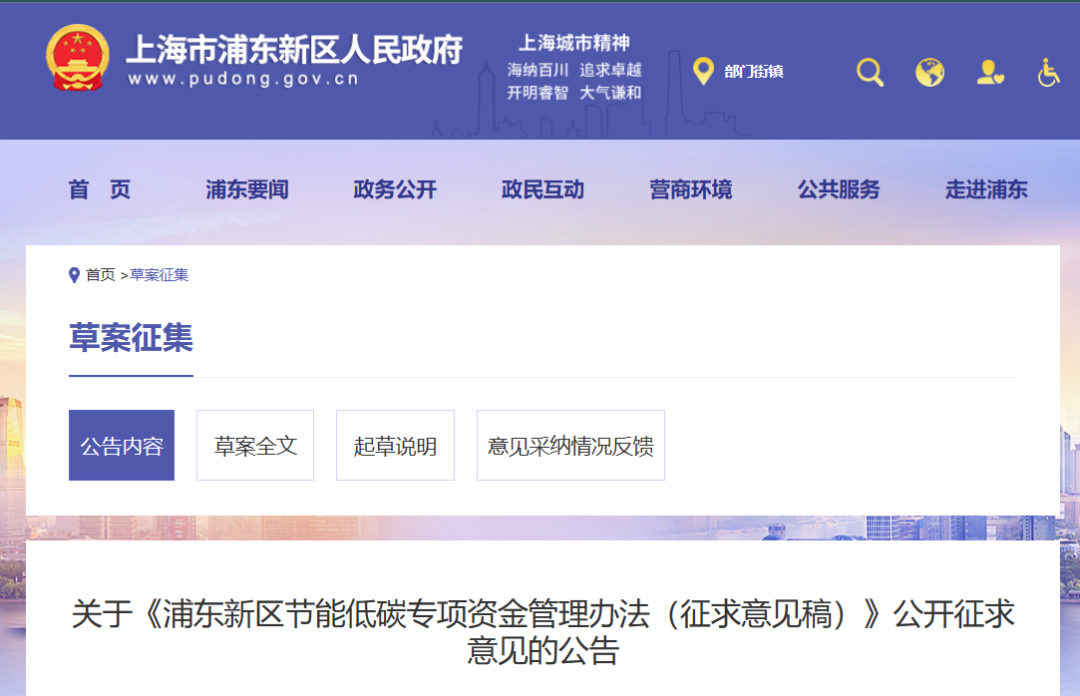 11月1日,上海市浦東新區發改委征求《浦東新區節能低碳專項資金管理辦法(征求意見稿)》意見。文件指出,鼓勵企業在本區內以風光等可再生能源、新型儲能為主體,探索區域能源中心、智能微網、源網荷儲一體化等“互聯網+”智慧能源發展新模式。按照項目固定資產投資額給予不超過20%的一次性補貼,最高不超過500萬元。 原文如下: 關于《浦東新區節能低碳專項資金管理辦法(征求意見稿)》公開征求意見的公告 現將《浦東新區節能低碳專項資金管理辦法(征求意見稿)》向社會公布,并公開征求社會公眾意見。 一、征求意見時間:2024年11月1日-11月30日 二、聯系方式: (一)來信:上海市浦東新區發展和改革委員會,地址:世紀大道2001號3號樓,郵編:200135 (二)電子郵件:zmqtsy@pudong.gov.cn (三)聯系電話:唐少云,聯系人:58788388*63321 本單位將對公眾提出的建議意見進行分析、論證,對合理的建議意見予以歸類采納。 熱忱歡迎您的參與! 上海市浦東新區發展和改革委員會 2024年11月1日 浦東新區節能低碳專項資金管理辦法 (征求意見稿) 第一條(目的和依據) 為深入貫徹新發展理念,構建新發展格局,堅定不移走生態優先、節約集約、綠色低碳高質量發展道路,高質量落實碳達峰碳中和戰略部署,加大對浦東新區應對氣候變化、能源結構優化、節能、低碳發展的支持力度,培育綠色低碳產業,引領浦東新區綠色低碳發展,根據《中華人民共和國節約能源法》《中華人民共和國循環經濟促進法》《上海市節約能源條例》等法律法規以及《中共中央 國務院關于加快經濟社會發展全面綠色轉型的意見》《上海市碳達峰實施方案》《上海市加快推進綠色低碳轉型行動方案(2024—2027年)》《上海市節能減排(應對氣候變化)專項資金管理辦法》等,結合本區實際,特制定本辦法。 第二條(總體要求) 浦東新區節能低碳專項資金(以下簡稱“專項資金”)聚焦應對氣候變化、能源結構優化和節能低碳發展,助力實現“雙碳”目標,推動“能耗雙控”向“碳排放雙控”轉變,加快新型能源體系建設,主要用于推進市、區政府下達的各項年度碳達峰碳中和、能源結構優化以及節能低碳重點工作,支持體現節能降碳發展方向的項目。對于納入市節能減排專項補貼計劃需新區財政配套的項目優先支持。 第三條(資金來源) 專項資金由區級財政預算專項安排。專項資金主要來源為: (一)上級部門撥入的專項資金; (二)區級財政預算資金; (三)區政府確定的其他資金來源。 第四條(支持范圍) (一)新型能源技術開發轉化及新型能源體系建設。重點支持太陽能開發應用、綠色燃料等清潔能源利用、可再生能源電力消納、調節能力建設以及新型能源技術示范項目等。 (二)循環經濟發展。鼓勵開展工業、農林、城建、生活等領域廢棄物減量化和資源化利用。 (三)工業節能低碳發展。重點支持工業領域有顯著節能降碳成效的技術改造及產品應用,鼓勵實施合同能源管理項目。重點支持綠色制造體系和企業節能降碳能力建設。重點支持列入排污許可證重點和簡化管理的氮氧化物排放企業開展氮氧化物超量減排改造。 (四)建筑節能低碳發展。重點支持超低能耗建筑、近零能耗及零碳建筑、既有建筑節能改造、綠色建筑、可再生能源與建筑一體化應用等;重點支持綠色商場、綠色餐廳創建,大型商業建筑以及旅游飯店等對標達標以及能效領跑者等節能低碳領域的先進項目,商業和旅游飯店節能技術改造等。 (五)綠色低碳管理能力提升。重點支持企業和主管部門開展綠色低碳能力提升工作,包括能源管理、碳管理、清潔生產、節能低碳宣傳培訓、組織開展重點用能單位能源審計及審核、能耗數據報送及監測監控等工作等能力建設及基礎工作。 (六)綠色低碳試點示范。重點支持綠色生態城區創建、低碳發展實踐區及碳達峰碳中和試點示范創建、綠色低碳先進技術創新等。 (七)區政府確定的其他節能低碳用途項目。 第五條(支持對象) (一)依法在浦東新區設立、經營狀態正常、信用狀況良好的法人和非法人組織等單位; (二)在浦東新區實施的,有利于降低本區能源消費量或碳排放量、提高能源利用效率的項目實施單位。 第六條(支持方式) 專項資金主要采用補貼或以獎代補的方式。補貼或以獎代補費用按照專項資金所明確的支持范圍中的一種進行申請和確定,同一項目不得重復申請相關補貼。 第七條(部門職責) 區發改委會同區財政局負責專項資金的總體安排、統籌協調和監督管理。 區發改委、科經委、商務委、文體旅游局、建交委、生態環境局、市場監管局等行業主管部門負責具體領域節能低碳項目補貼或以獎代補的實施,包括:編制并發布各領域專項資金年度申報項目通知,受理項目申報,組織項目評審,并對項目實施進行監督、檢查和驗收等相關事宜。 前款所述行業主管部門和區機管局負責組織開展與節能低碳管理能力相關的工作。 第八條(支持標準) (一)新型能源技術開發轉化及新型能源體系建設支持標準如下: 1.新型能源技術開發示范項目。在本區域范圍內為新型能源技術開發轉化而開展的可再生能源制氫、氫能發電利用、海洋能發電、波浪能發電等方向示范項目,按照項目固定資產投資額給予不超過30%的一次性補貼,單個項目補貼金額最高不超過500萬元,市區兩級的補貼總額不超過項目投資