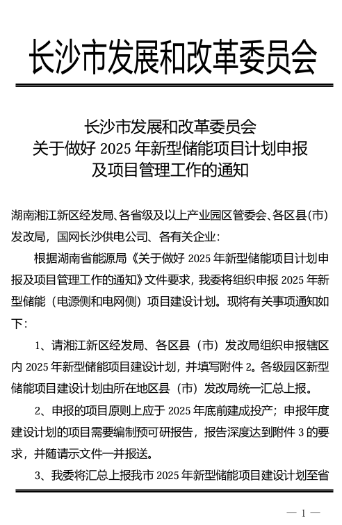 11月7日,長沙市發展和改(gai)革(ge)委員會發布做好2025年新(xin)型(xing)儲(chu)能(neng)項目(mu)計(ji)(ji)劃申報及項目(mu)管理工作。文件(jian)提出,長沙發改(gai)委將(jiang)組織申報2025年電源側和電網側儲(chu)能(neng)項目(mu)建設計(ji)(ji)劃。申報的項目(mu)原則上應(ying)于2025年底(di)前建成投產(chan)。 文(wen)件要求,未納(na)入年(nian)度建設計劃的電網側(ce)和電源側(ce)新型(xing)儲能項目(mu),屬地發改部門不予辦理(li)備案,電網企業不予受理(li)接網申請。 原文如下: