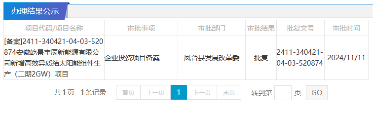 據(ju)安(an)徽(hui)(hui)省投(tou)資項(xiang)目在線審批監管(guan)平(ping)臺顯示,位于安(an)徽(hui)(hui)鳳臺縣的二(er)期2GW異(yi)質(zhi)結組件項(xiang)目于11月11日通過備案。據(ju)悉(xi)該項(xiang)目由乾(qian)景(jing)園林全資子公司安(an)徽(hui)(hui)乾(qian)景(jing)宇辰新能源(yuan)有限公司建(jian)設(she)。