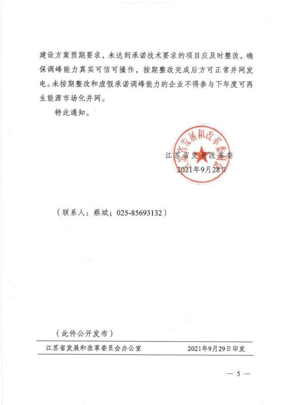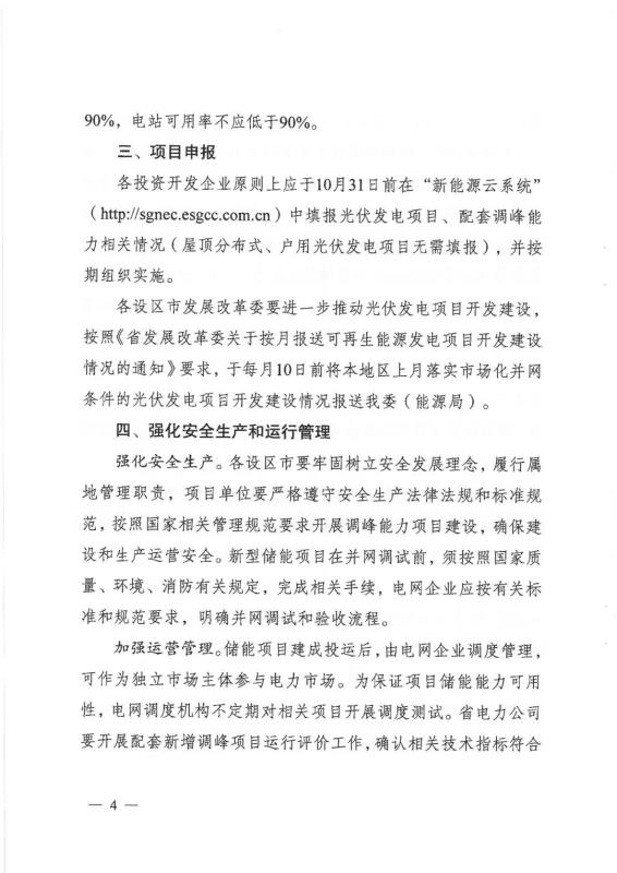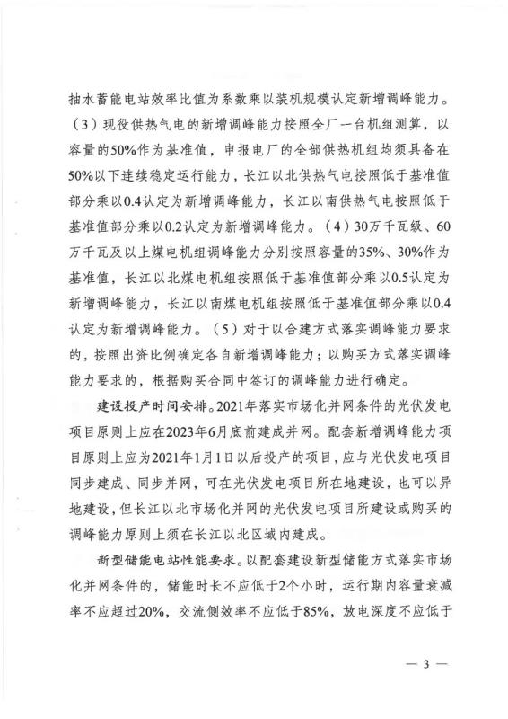 9月(yue)29日,江(jiang)蘇(su)(su)發改委印發《省發改委關于(yu)我省2021年(nian)光伏發電項(xiang)目市(shi)場(chang)化并網有關事(shi)項(xiang)的通知》。文件指(zhi)出,2021年(nian)江(jiang)蘇(su)(su)省長(chang)江(jiang)以(yi)(yi)南地(di)區新(xin)建(jian)光伏發電項(xiang)目原則上按照(zhao)功(gong)率8%及以(yi)(yi)上比例(li)(li)配建(jian)調峰(feng)能力(li)、時長(chang)兩(liang)小時;長(chang)江(jiang)以(yi)(yi)北地(di)區原則上按照(zhao)功(gong)率10%及以(yi)(yi)上比例(li)(li)配建(jian)調峰(feng)能力(li)、時長(chang)兩(liang)小時。儲能設施(shi)運行期內容量(liang)衰減率不(bu)應(ying)超(chao)過20%,交(jiao)流側效率不(bu)應(ying)低于(yu)85%,放電深度(du)不(bu)應(ying)低于(yu)90%,電站可用率不(bu)應(ying)低于(yu)90%。 新(xin)型(xing)儲能(neng)、抽(chou)水蓄(xu)能(neng)電(dian)站(zhan)按照裝機(ji)規(gui)模認(ren)(ren)定新(xin)增調(diao)峰(feng)(feng)能(neng)力。壓縮空(kong)氣儲能(neng)按其實際運行(xing)效(xiao)率與抽(chou)水蓄(xu)能(neng)電(dian)站(zhan)效(xiao)率比值(zhi)為(wei)系數乘以裝機(ji)規(gui)模認(ren)(ren)定新(xin)增調(diao)峰(feng)(feng)能(neng)力。 2021年(nian)(nian)落實市(shi)場(chang)化并(bing)(bing)(bing)網條(tiao)件的光伏發(fa)電(dian)項(xiang)(xiang)(xiang)目(mu):原則(ze)上(shang)應在2023年(nian)(nian)6月(yue)(yue)底(di)前建成并(bing)(bing)(bing)網。配套新增(zeng)調峰能(neng)力(li)項(xiang)(xiang)(xiang)目(mu)原則(ze)上(shang)應為2021年(nian)(nian)1月(yue)(yue)1日以(yi)后(hou)投產的項(xiang)(xiang)(xiang)目(mu),應與光伏發(fa)電(dian)項(xiang)(xiang)(xiang)目(mu)同步建成、同步并(bing)(bing)(bing)網,可(ke)在光伏發(fa)電(dian)項(xiang)(xiang)(xiang)目(mu)所在地建設(she),也可(ke)以(yi)異地建設(she),但長江(jiang)以(yi)北市(shi)場(chang)化并(bing)(bing)(bing)網的光伏發(fa)電(dian)項(xiang)(xiang)(xiang)目(mu)所建設(she)或購買的調峰能(neng)力(li)原則(ze)上(shang)須在長江(jiang)以(yi)北區域建成。 上一篇: 庫博能源:面向儲能新藍海