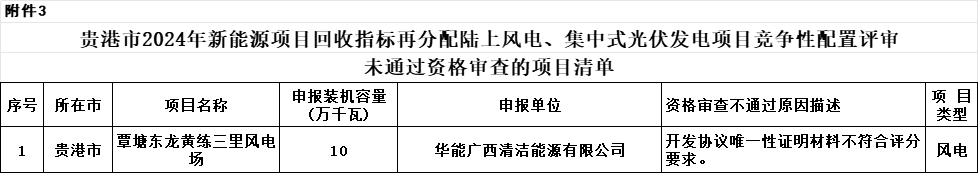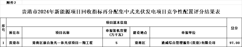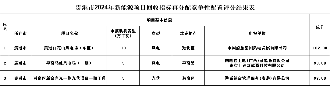 日前,廣西(xi)貴(gui)港市(shi)發(fa)展和改革委員(yuan)會公布024年新能源項目回(hui)收指標再分配(pei)陸上風(feng)電、集(ji)中式光(guang)伏發(fa)電項目競爭(zheng)性配(pei)置(zhi)評分結果。 結果顯示:2個(ge)陸上(shang)風電(dian)項(xiang)目和1個(ge)集中式(shi)光(guang)伏項(xiang)目開展競爭性配(pei)置評分(fen)工作(zuo),1個(ge)陸上(shang)風電(dian)項(xiang)目未(wei)通過資格(ge)審查的項(xiang)目。 原文如下: 貴港市發展和改革委員會關于貴港市2024年新能源項目回收指標再分配陸上風電、集中式光伏發電項目競爭性配置評分結果的公示 為加快我(wo)市陸上風電、集中(zhong)式(shi)光伏發(fa)電項目(mu)發(fa)展,根據《廣西壯族(zu)自治區能(neng)源(yuan)(yuan)局(ju)關于做好(hao)2024年新能(neng)源(yuan)(yuan)項目(mu)回收指標(biao)再分配(pei)的通(tong)知》(桂能(neng)新能(neng)〔2024〕495號)有關要求,我(wo)委(wei)組織(zhi)開展貴港市2024年新能(neng)源(yuan)(yuan)項目(mu)回收指標(biao)再分配(pei)陸上風電、集中(zhong)式(shi)光伏發(fa)電項目(mu)競爭性配(pei)置工作(zuo)。 現將評分結果予以公(gong)示,公(gong)示期(qi)間(jian),如有異議,請(qing)在公(gong)示發(fa)布之(zhi)日(ri)起3個工作日(ri)內(nei)以書(shu)面形式向我委反(fan)映(信函以到達日(ri)期(qi)郵戳為(wei)準)。 聯系人:李明;聯系電話:0775-4578001 郵(you)(you)寄(ji)地址(zhi):廣(guang)西貴港市荷城路888號(hao);郵(you)(you)編:537100 附件(jian):1.貴港市2024年新能源項目回收(shou)指標再(zai)分配陸上風電項目競爭(zheng)性配置(zhi)評分結果表 2.貴(gui)港市2024年新(xin)能源項目(mu)回收指標(biao)再分配集中式光伏發電項目(mu)競爭(zheng)性配置評分結果(guo)表 3.未通過資格審查的項目清單 貴港(gang)市發展和(he)改革(ge)委員(yuan)會 2024年12月9日