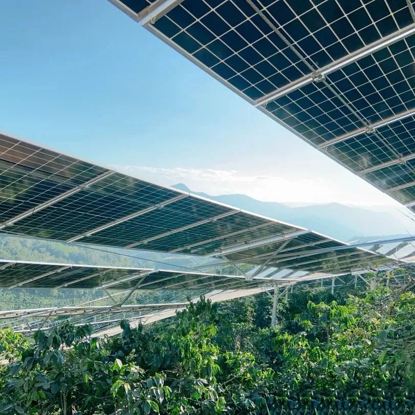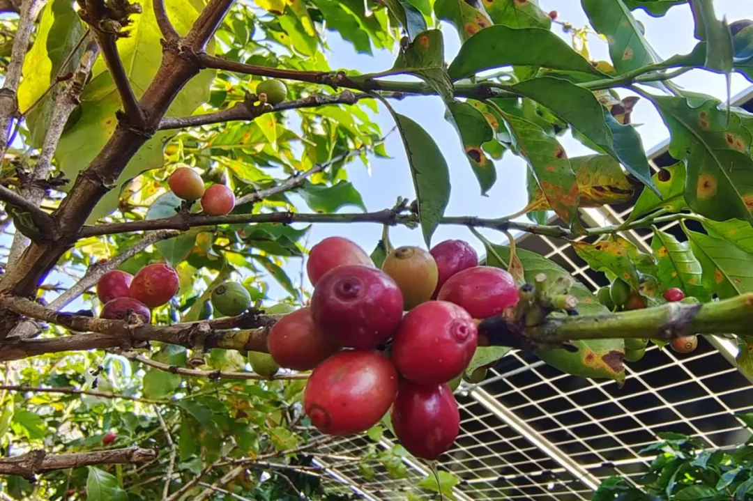 2023年,由中國能(neng)建中電(dian)(dian)工程投資建設的中國首個“咖光(guang)互(hu)補”項目——落(luo)腳普(pu)洱市(shi)思茅區那(nei)丙田咖啡園。項目采用新一代ATEC擎天晴索網柔性支架,板(ban)上(shang)發電(dian)(dian),板(ban)下種植。 項目部分析(xi)光伏密度(du)(du)(du)、排列方式對作物(wu)的(de)(de)影響,選位置、測角(jiao)度(du)(du)(du),算產量、提(ti)品質,結合咖(ka)啡植株生長高度(du)(du)(du)、喜陰的(de)(de)特(te)點(dian),支架高度(du)(du)(du)設(she)計(ji)在3.5米(mi),現場(chang)采(cai)用16.8米(mi)的(de)(de)大(da)跨距設(she)計(ji),相對于固(gu)定支架4米(mi)跨度(du)(du)(du),可(ke)以有效減少樁基礎的(de)(de)數量。 在坡度40-70°山地(di)(di)上克服施工(gong)難(nan)度,在海(hai)拔(ba)1300米(mi)的咖(ka)啡園,撐起了一(yi)片(pian)綠(lv)色(se)屏障。面積平均達13畝/MW,充分加大了對土地(di)(di)的增(zeng)值利用(yong),提高土地(di)(di)利用(yong)率30%-40%。 充(chong)分釋(shi)放板下種植(zhi)空間(jian),保障咖啡生(sheng)長需要的光照(zhao)和雨水。 光(guang)伏板下(xia)的咖啡豆,生長(chang)過程中得到充足的陽光(guang)沐浴,形(xing)成了獨特的風(feng)味。 在光(guang)伏(fu)藍海的呵護(hu)下(xia),歷經時間的洗(xi)禮和沉淀,紅彤(tong)彤(tong)的咖(ka)啡果迎來了大豐收,從(cong)分批(pi)采摘到精(jing)工(gong)制作再到包裝(zhuang)設計,2024年11月,中國(guo)首批(pi)光(guang)伏(fu)咖(ka)啡成品問世! 提(ti)高產量(liang) 光(guang)伏板形成(cheng)的蔭蔽環境促(cu)進了咖啡植(zhi)株(zhu)生長,有(you)利于咖啡樹積累能量(liang),提高年底咖啡豆產量(liang)。 提升(sheng)質量 光伏板遮蔭提高了咖啡(fei)(fei)葉(xie)片葉(xie)綠素(su)含量(liang),降低了葉(xie)片溫(wen)度,有利于葉(xie)片光合速率增大,進而提升咖啡(fei)(fei)果干物質量(liang)。 增強寒害(hai)抵抗力(li) 光伏板的(de)遮擋提高了咖(ka)(ka)啡(fei)樹對寒害的(de)抵抗(kang)力。現(xian)場(chang)對比發(fa)現(xian),無光伏板和兩組光伏板中間(jian)的(de)咖(ka)(ka)啡(fei)花芽(ya)(ya),受(shou)到寒害為(wei)害情況,花芽(ya)(ya)發(fa)黑(hei),而光伏板下咖(ka)(ka)啡(fei)花芽(ya)(ya)受(shou)寒害影響(xiang)較小或無。 和(he)深圳安泰科一起(qi),沿著蜿蜒的(de)青色脈絡,追(zhui)尋光的(de)足(zu)跡,留住文(wen)化的(de)香醇,與自然共生長(chang)。