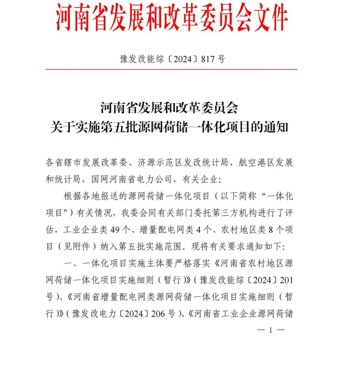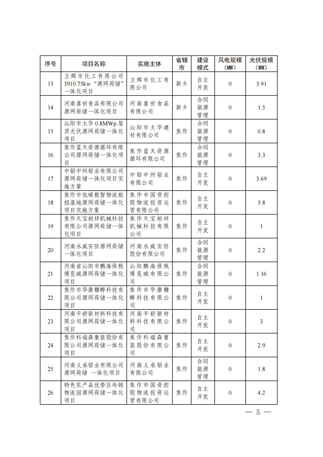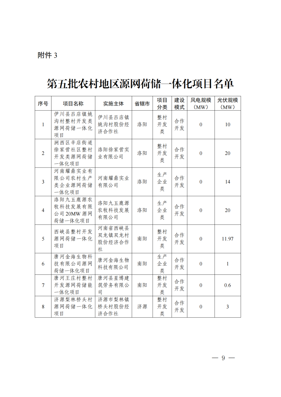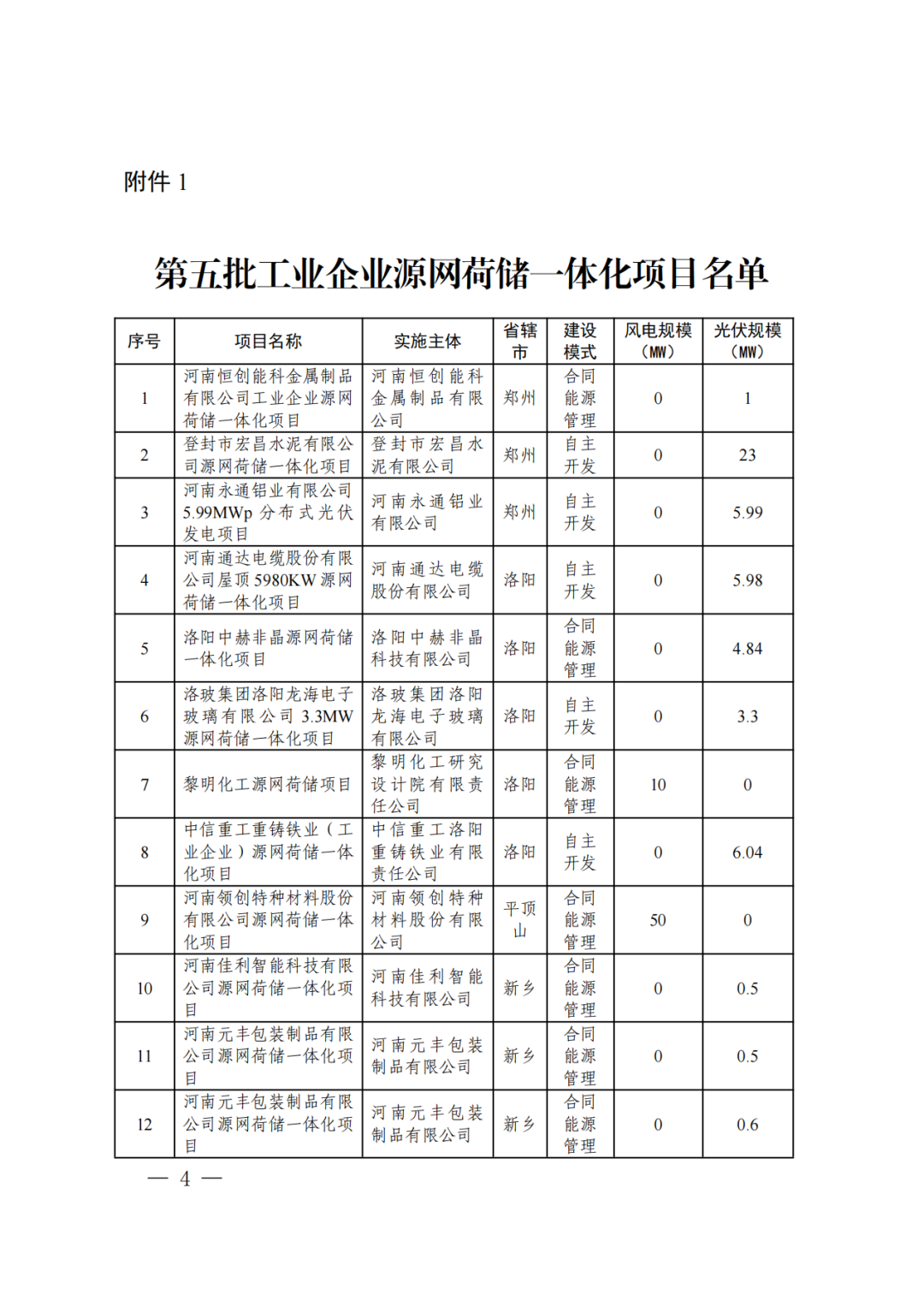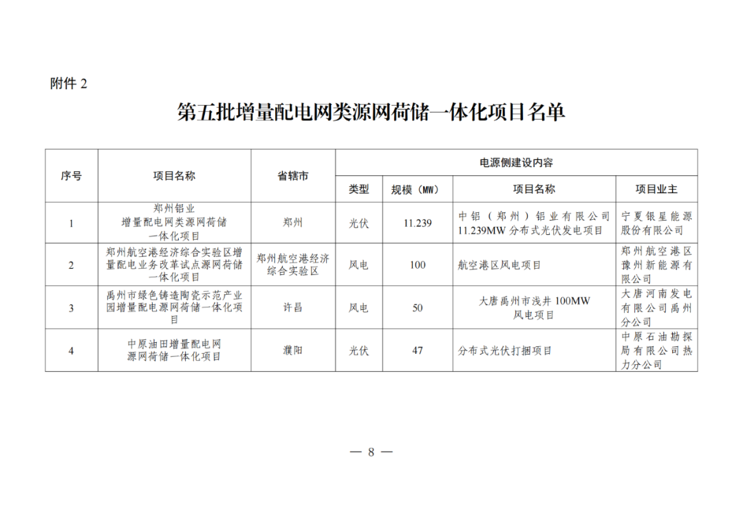 12月23日,河南省發改(gai)委(wei)發布《關于實施第五批(pi)源網(wang)荷儲一體化項目的通知》。 本次納入實施范圍的項目(mu)共包(bao)含工業企業類49個(ge)、增量配電網類4個(ge)、農村(cun)地(di)區類8個(ge)項目(mu)(見附(fu)件),規模共823.999MW,包(bao)含風電511.1MW,光(guang)伏312.899MW。 原文(wen)見下: