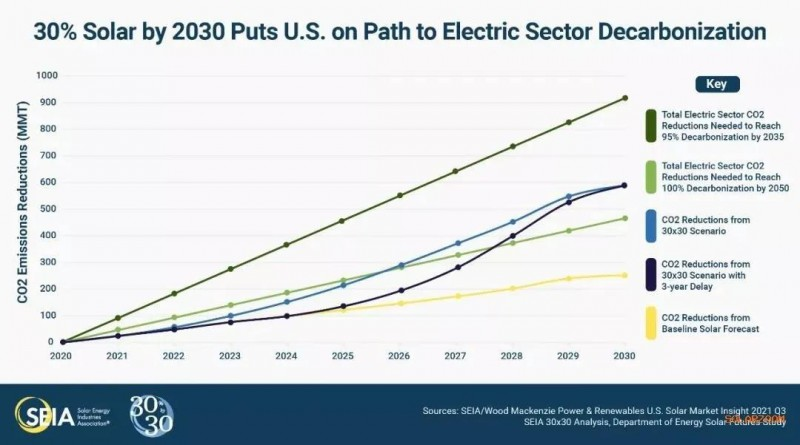9月28日,太(tai)陽能(neng)(neng)產業協(xie)會 (SEIA) 表示(shi)正在提高(gao)其Solar+Decade 的(de)(de)(de)目標——到(dao)(dao)2030 年(nian)太(tai)陽能(neng)(neng)占(zhan)美國發電(dian)量的(de)(de)(de) 30%,即(ji)實現太(tai)陽能(neng)(neng)裝機850 GW,此(ci)前該組(zu)織(zhi)的(de)(de)(de)目標是到(dao)(dao) 2030 年(nian)太(tai)陽能(neng)(neng)占(zhan)比達到(dao)(dao) 20%。SEIA表示(shi),此(ci)次(ci)修訂符合(he)拜登政府的(de)(de)(de)清潔(jie)能(neng)(neng)源(yuan)目標,并且考慮了應對氣候(hou)變(bian)化和減(jian)少電(dian)力部門(men)碳(tan)排放的(de)(de)(de)日益緊迫(po)性。 在國(guo)(guo)會(hui)就基礎設施和(he)預算(suan)立法進行辯論之際(ji),美國(guo)(guo)正面臨(lin)著前(qian)所(suo)未(wei)有(you)的(de)(de)機遇(yu)來建立強大的(de)(de)清潔能源經濟,太陽(yang)能將(jiang)作為這十(shi)年新增(zeng)電力的(de)(de)主(zhu)要來源。截(jie)止2021 年上(shang)半(ban)年,太陽(yang)能占所(suo)有(you)新增(zeng)發電的(de)(de)56%,但是(shi)當前(qian)的(de)(de)增(zeng)長速度還不足以有(you)效應(ying)對氣候變化。 為實現2030年(nian)(nian)30%太(tai)陽能的(de)(de)清潔(jie)能源目(mu)標,當前(qian)美國太(tai)陽能行(xing)業的(de)(de)部署速(su)度必須加倍。如(ru)果沒(mei)有有力的(de)(de)長(chang)期政策投資,到 2030 年(nian)(nian)太(tai)陽能將(jiang)僅(jin)占發電量的(de)(de) 15%,遠低于(yu)減少碳排放和應對氣候(hou)變化(hua)所需的(de)(de)水平。 如果到 2030 年(nian)該行業的太陽(yang)能占比達到 30%,太陽(yang)能和儲(chu)能行業將增加(jia) 100 萬勞動力,并增加(jia)超(chao)過 8000 億美元的投資(zi)。 SEIA還(huan)指出,這一目標是應(ying)對氣候變化(hua)的(de)(de)(de)(de)關鍵一步(bu),利用太陽能滿(man)足美國 30% 的(de)(de)(de)(de)能源(yuan)供應(ying)將使電力(li)部門的(de)(de)(de)(de)碳排放(fang)量減少50%,此外該(gai)目標還(huan)強調了為企業(ye)提供確定性政策和對美國制造業(ye)進(jin)行長期投(tou)資的(de)(de)(de)(de)重要機會。