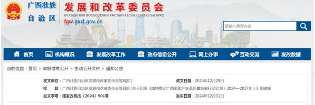 廣西印發氫能產業高質量發展行動計劃!2025-01-02 14:44瀏覽數:203次