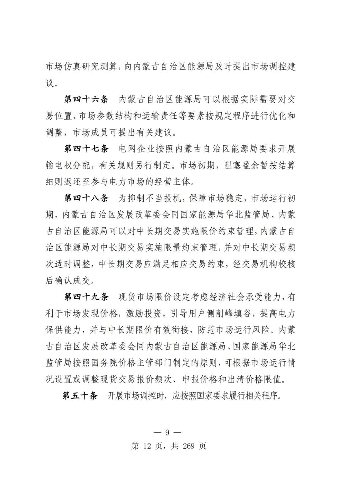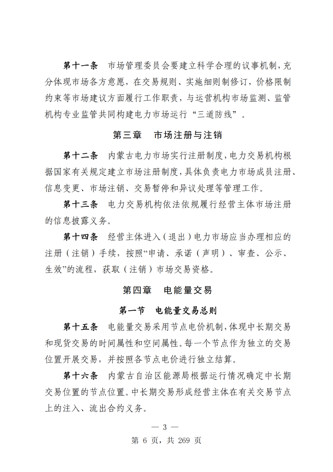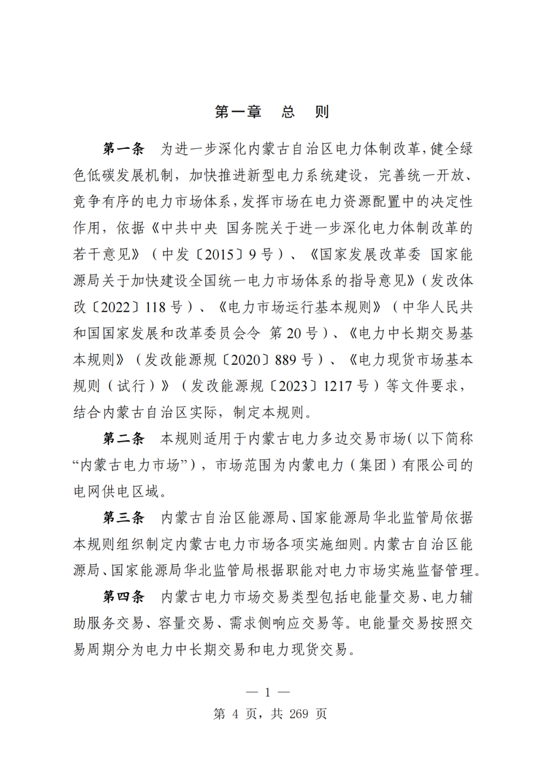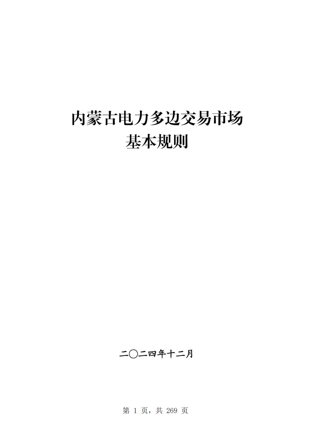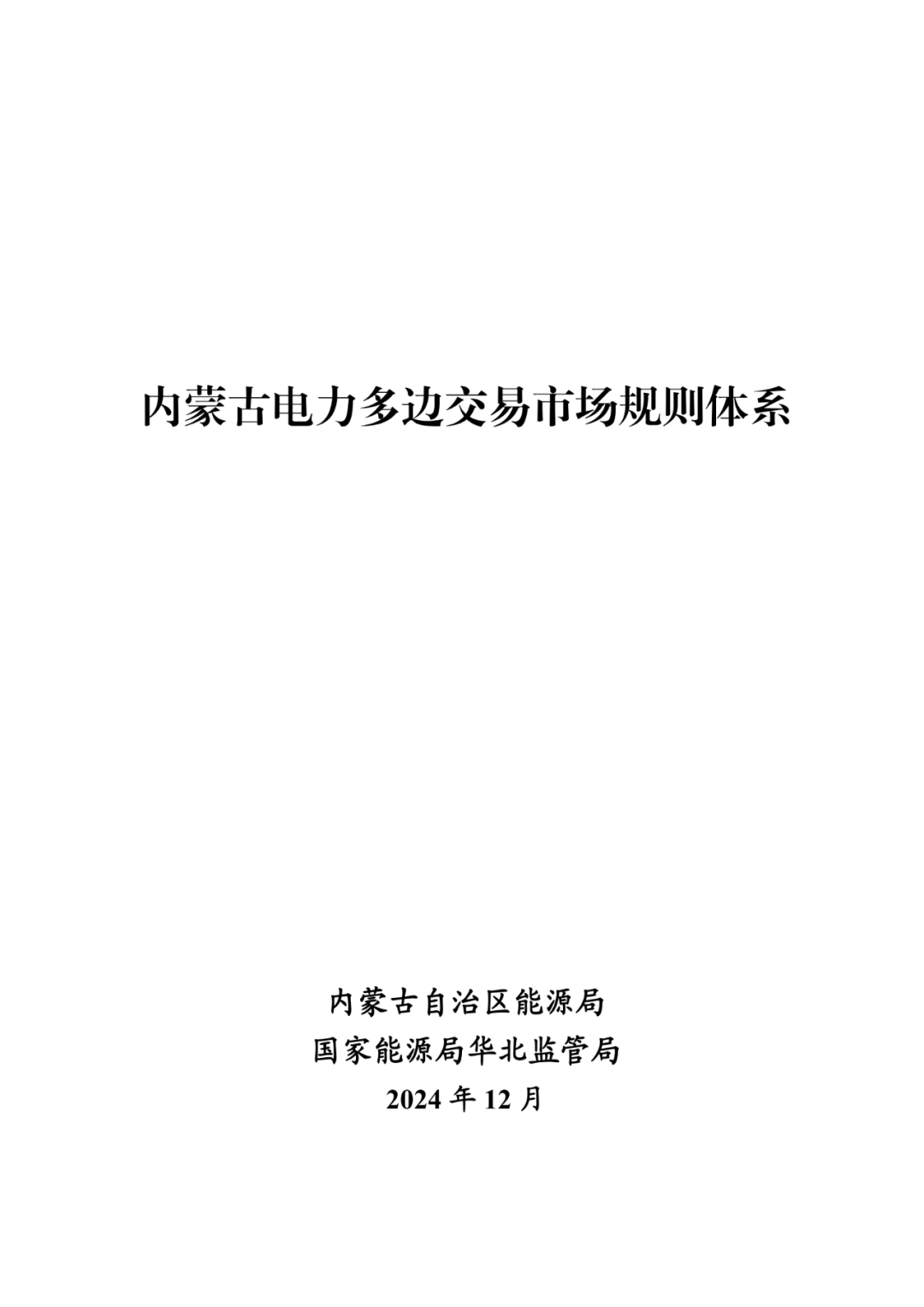 近日,內蒙古能源局、國家能源局華北監管局研究制定了《內蒙古電力多邊交易市場規則體系》,予以發布。規則體系對電力市場成員、市場注冊與注銷、電能量交易、中長期交易、現貨交易、綠電交易等都有詳細說明。 原文如下: 內蒙古電力(集團)有限責任公司、內蒙古電力交易中心有限公司,各經營主體: 為深入貫徹黨的二十屆三中全會精神,認真落實國家發展改革委、國家能源局關于加快推進電力現貨市場建設的相關要求,內蒙古自治區能源局、國家能源局華北監管局研究制定了《內蒙古電力多邊交易市場規則體系》,現予以印發,自2025年1月1日起施行,請遵照執行。各經營主體在執行過程中如遇問題,請及時告知內蒙古自治區能源局、國家能源局華北監管局。 內蒙古自治區能源局 國家能源局華北監管局 2024年12月27日 (此件主動公開) 附件:《內蒙古電力多邊交易市場規則體系》(公開掛網版).pdf
