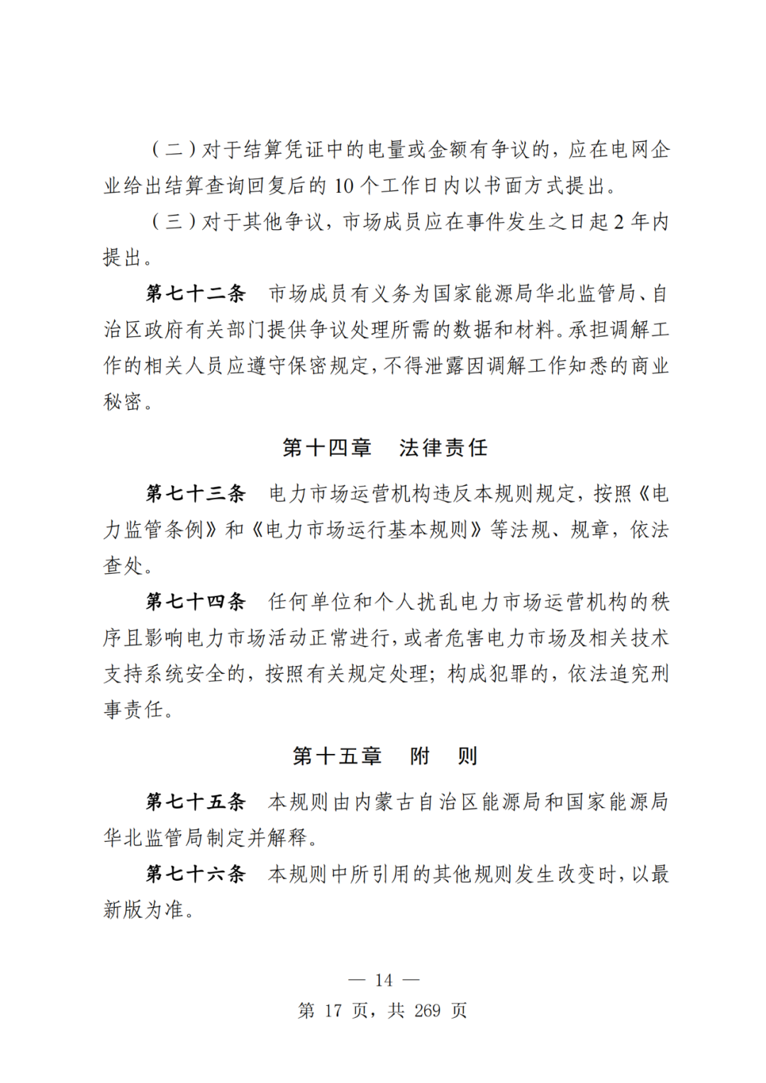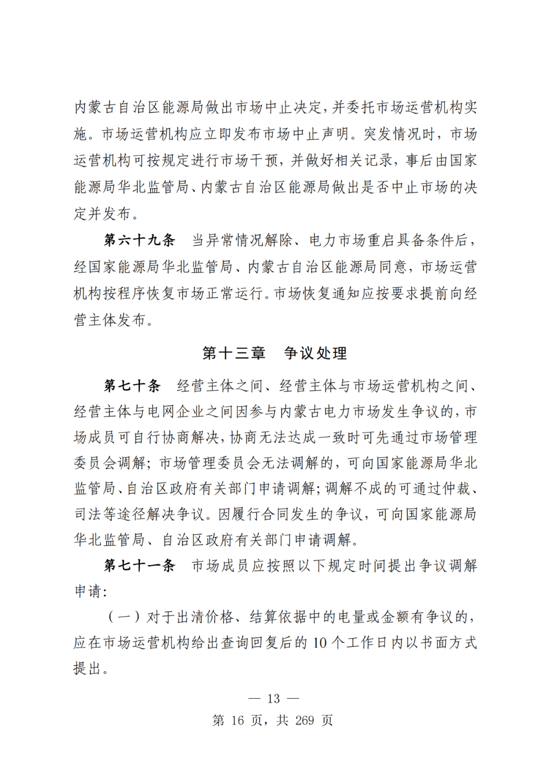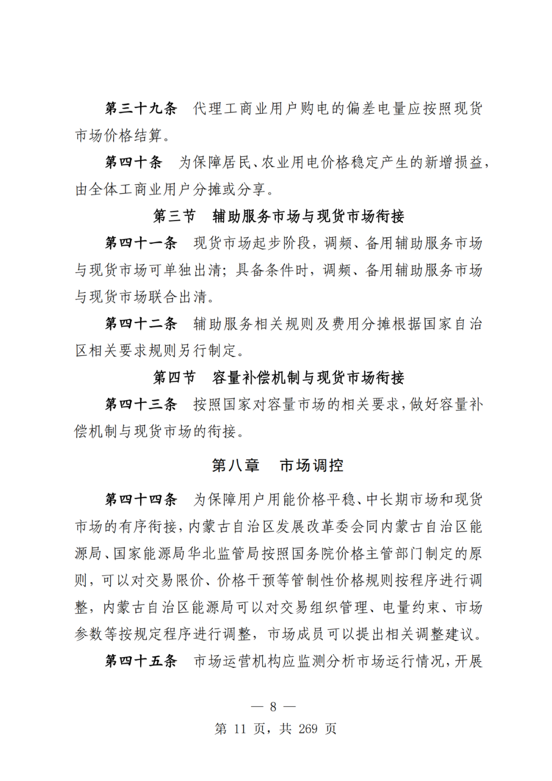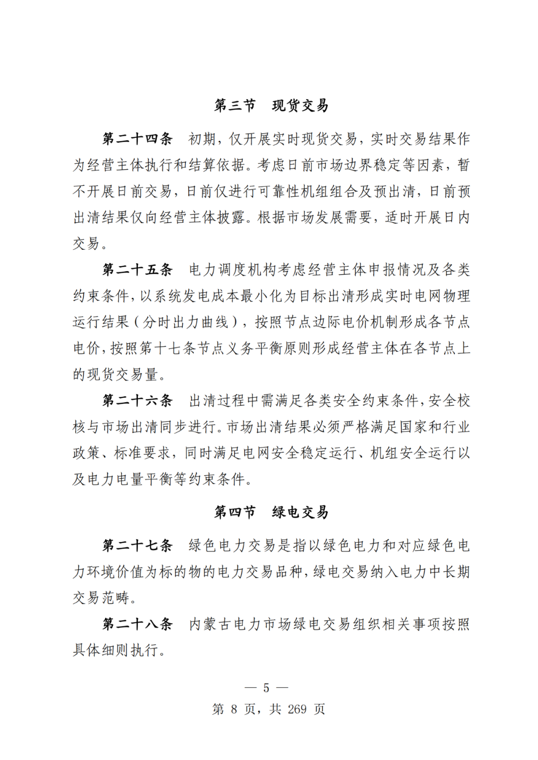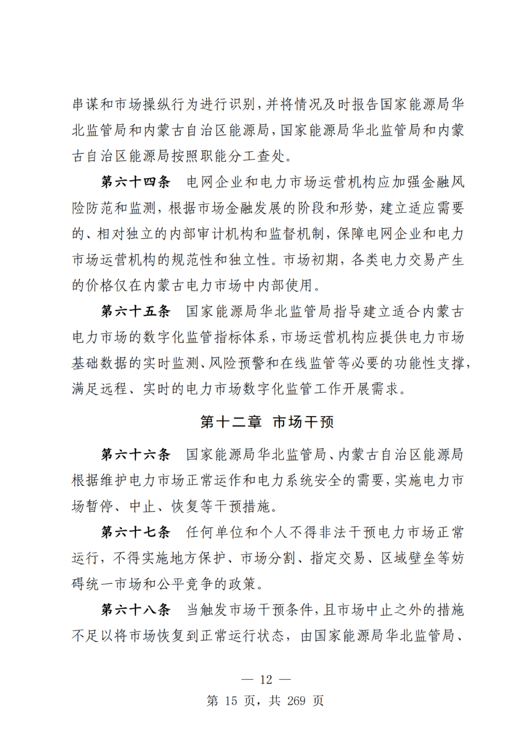 近日,內蒙古能源局、國家能源局華北監管局研究制定了《內蒙古電力多邊交易市場規則體系》,予以發布。規則體系對電力市場成員、市場注冊與注銷、電能量交易、中長期交易、現貨交易、綠電交易等都有詳細說明。 原文如下: 內蒙古電力(集團)有限責任公司、內蒙古電力交易中心有限公司,各經營主體: 為深入貫徹黨的二十屆三中全會精神,認真落實國家發展改革委、國家能源局關于加快推進電力現貨市場建設的相關要求,內蒙古自治區能源局、國家能源局華北監管局研究制定了《內蒙古電力多邊交易市場規則體系》,現予以印發,自2025年1月1日起施行,請遵照執行。各經營主體在執行過程中如遇問題,請及時告知內蒙古自治區能源局、國家能源局華北監管局。 內蒙古自治區能源局 國家能源局華北監管局 2024年12月27日 (此件主動公開) 附件:《內蒙古電力多邊交易市場規則體系》(公開掛網版).pdf