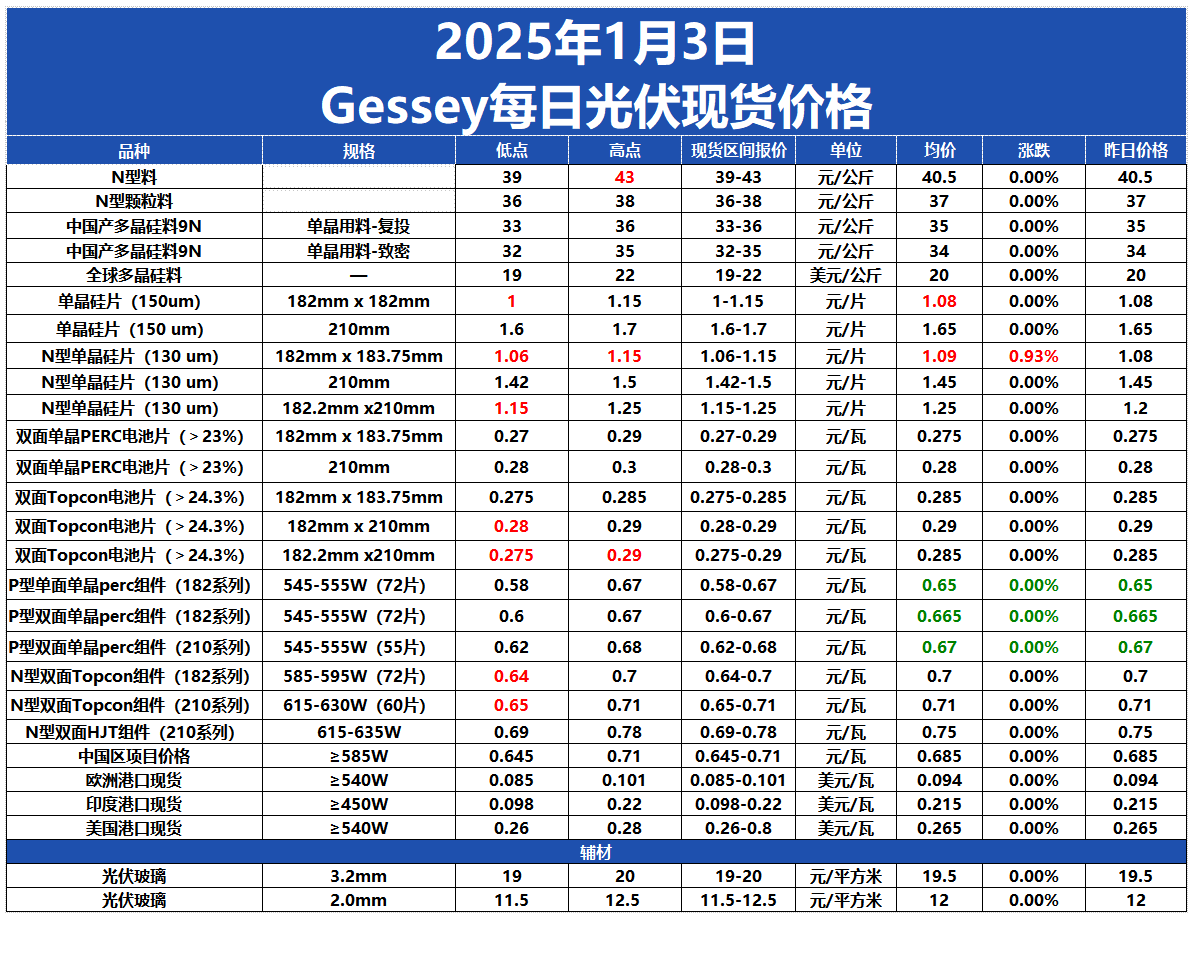 Gessey:1月3日每日光伏市場行情2025-01-03 18:34來源(yuan):gessey瀏覽數:262次