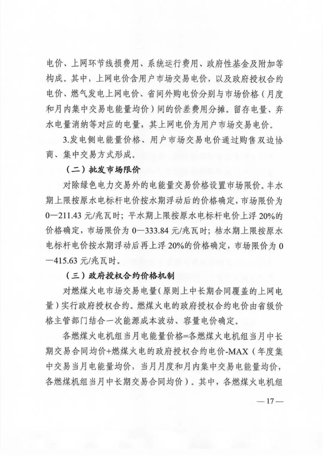 日(ri)前(qian),四(si)川省(sheng)(sheng)發改委(wei)、能源局相繼印發《2025年全省(sheng)(sheng)電(dian)力(li)電(dian)量(liang)供(gong)需平衡方案及節能調度優先電(dian)量(liang)規模計劃》的(de)(de)通(tong)知(zhi)、《四(si)川省(sheng)(sheng)2025年省(sheng)(sheng)內電(dian)力(li)市(shi)場交(jiao)易總體方案》的(de)(de)通(tong)知(zhi),明(ming)確2025年風電(dian)、光伏參與電(dian)力(li)市(shi)場交(jiao)易的(de)(de)相關要求。 根(gen)據《電(dian)力電(dian)量供需平(ping)衡方(fang)(fang)案》文(wen)件顯(xian)示,2025年風(feng)(feng)電(dian)、光(guang)伏(fu)(fu)機組(扶貧光(guang)伏(fu)(fu)除外)優先發(fa)電(dian)規模(mo)計劃根(gen)據風(feng)(feng)光(guang)機組發(fa)電(dian)特性,采用相對均衡方(fang)(fang)式在全年下(xia)達(da)。 其(qi)中(zhong)(zhong),風電項(xiang)目(mu)利(li)用(yong)小(xiao)時(shi)(shi)(shi)暫(zan)按400小(xiao)時(shi)(shi)(shi)(枯水(shui)(shui)期(qi)220小(xiao)時(shi)(shi)(shi)、豐(feng)(feng)(feng)水(shui)(shui)期(qi)180小(xiao)時(shi)(shi)(shi))確(que)定,光(guang)伏項(xiang)目(mu)利(li)用(yong)小(xiao)時(shi)(shi)(shi)暫(zan)按300小(xiao)時(shi)(shi)(shi)(枯水(shui)(shui)期(qi)170小(xiao)時(shi)(shi)(shi)、豐(feng)(feng)(feng)水(shui)(shui)期(qi)130小(xiao)時(shi)(shi)(shi))確(que)定;對租賃(lin)配儲和電源(yuan)側配儲項(xiang)目(mu)的風光(guang)電站給予(yu)150小(xiao)時(shi)(shi)(shi)(枯水(shui)(shui)期(qi)50小(xiao)時(shi)(shi)(shi)、豐(feng)(feng)(feng)水(shui)(shui)期(qi)100小(xiao)時(shi)(shi)(shi))傾斜支持;扶(fu)貧光(guang)伏按資源(yuan)條件對應的發電能力全額安排為優先發電規模計(ji)劃;競(jing)價項(xiang)目(mu)按競(jing)價文件確(que)定的方式安排。如遇國家政策調(diao)整則(ze)在實際執行中(zhong)(zhong)另行安排。 而在2024年風電、光伏(fu)機組(扶貧(pin)光伏(fu)除外)優先發(fa)電量中(zhong),風電項目利(li)用小(xiao)(xiao)時(shi)(shi)暫按800小(xiao)(xiao)時(shi)(shi)確定(枯(ku)水(shui)期(qi)(qi)500小(xiao)(xiao)時(shi)(shi)、豐水(shui)期(qi)(qi)300小(xiao)(xiao)時(shi)(shi)),光伏(fu)項目利(li)用小(xiao)(xiao)時(shi)(shi)暫按600小(xiao)(xiao)時(shi)(shi)確定(枯(ku)水(shui)期(qi)(qi)350小(xiao)(xiao)時(shi)(shi)、豐水(shui)期(qi)(qi)250小(xiao)(xiao)時(shi)(shi))。 對比(bi)來看,風(feng)、光保(bao)障收購小時(shi)(shi)數總(zong)體下降了(le)50%,分別降至(zhi)400小時(shi)(shi)、300小時(shi)(shi),即便(bian)在疊加(jia)儲能150小時(shi)(shi)的(de)情況(kuang)下也相較去年(nian)出現了(le)大幅下降。 具體文件見下: