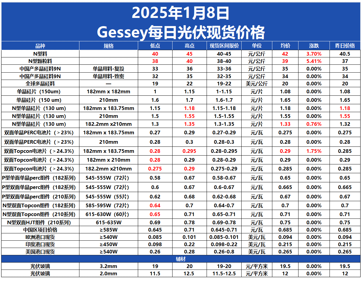 Gessey:1月8日每日光伏市場行情2025-01-08 17:57來(lai)源:gessey瀏覽數:278次