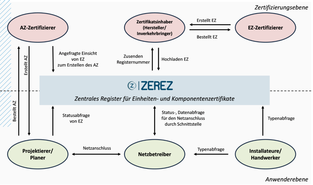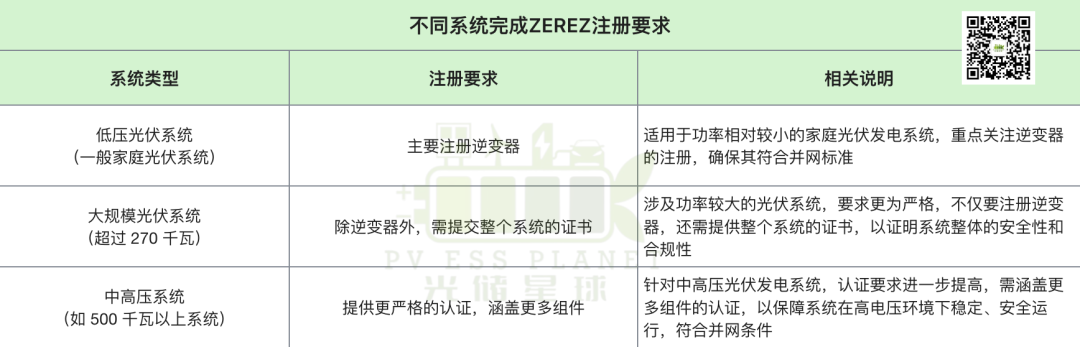 德國的光伏行業迎來了一項重要的變革。自2025年2月1日起,所有光伏發電和儲能系統的單元和組件必須在“統一單元和組件認證注冊系統”(ZEREZ)完成注冊。未注冊的設備將無法接入電網。 ZEREZ注冊系統是什么? ZEREZ(統一單元和組件認證注冊系統)是德國為加強電力系統安全和可靠性而推出的強制性注冊平臺。該系統自2024年4月上線后,便成為了電力系統連接的必備工具。通過該系統,電網運營商、認證機構和制造商可以更高效地管理設備認證信息。 圖源:FGW e.V._ZEREZ__neuer Prozess 在ZEREZ系統中,光伏系統的主要部分(如逆變器、儲能設備等)和其他電力設備的單元認證需要進行注冊。此舉將簡化電網運營商的審核流程,確保設備符合安全和技術標準。 注冊ZEREZ必要性 1、提升電網安全性 ZEREZ系統通過集中管理認證信息,確保接入電網的系統和組件符合技術要求,降低系統故障和電力事故的風險。 2、簡化電網接入流程 電網運營商可以通過ZEREZ注冊號(ZEREZ-ID)快速檢查設備的認證信息,避免了之前繁瑣的驗證過程。對于系統運營商而言,只需提供注冊號即可完成相關認證,省時省力。 3、規范電網接入 隨著可再生能源比例的不斷提升,電網接入的標準化和規范化顯得尤為重要。ZEREZ注冊系統為光伏系統的順利接入提供了有力保障。 不同系統注冊的具體要求 根據新的規定,自2025年2月1日起,所有光伏發電和儲能系統的單元和組件都必須完成ZEREZ注冊,未完成注冊的設備將無法接入電網。具體要求如下: