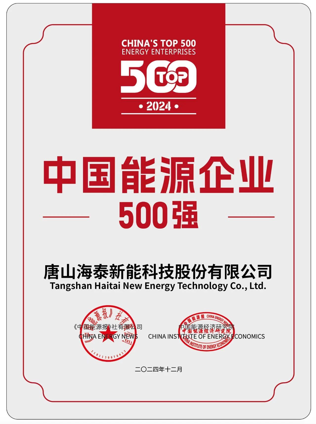海泰新能入選2024中國能源企業500強!2025-01-15 14:11來源:gessey瀏覽數:300次