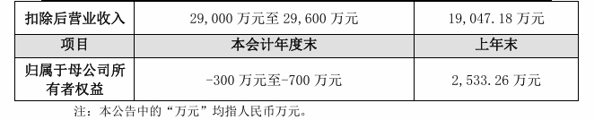 1月23日,中科(ke)云網(wang)發(fa)布公(gong)(gong)告稱,公(gong)(gong)司(si)(si)財務部(bu)門(men)初步測算(未(wei)經審(shen)計(ji)(ji)(ji)),預(yu)計(ji)(ji)(ji)2024年度實現利潤總額為(wei)-3,540萬(wan)(wan)元(yuan)(yuan)(yuan),歸(gui)屬于母公(gong)(gong)司(si)(si)所(suo)有(you)者(zhe)的(de)凈利潤為(wei)虧(kui)損1,800萬(wan)(wan)元(yuan)(yuan)(yuan)至(zhi)2,200萬(wan)(wan)元(yuan)(yuan)(yuan),與(yu)(yu)上年同期(qi)虧(kui)損5897萬(wan)(wan)元(yuan)(yuan)(yuan)相比,大幅減虧(kui);歸(gui)屬于母公(gong)(gong)司(si)(si)所(suo)有(you)者(zhe)的(de)扣除(chu)非經常性(xing)損益(yi)后(hou)的(de)凈利潤為(wei)虧(kui)損2,200萬(wan)(wan)元(yuan)(yuan)(yuan)至(zhi)2,700萬(wan)(wan)元(yuan)(yuan)(yuan);預(yu)計(ji)(ji)(ji)2024年度實現營業(ye)(ye)(ye)收(shou)入(ru)為(wei)29,000萬(wan)(wan)元(yuan)(yuan)(yuan)至(zhi)29,600萬(wan)(wan)元(yuan)(yuan)(yuan),扣除(chu)與(yu)(yu)主營業(ye)(ye)(ye)務無關的(de)業(ye)(ye)(ye)務收(shou)入(ru)和不(bu)具備(bei)商(shang)業(ye)(ye)(ye)實質的(de)收(shou)入(ru)后(hou)的(de)營業(ye)(ye)(ye)收(shou)入(ru)為(wei)29,000萬(wan)(wan)元(yuan)(yuan)(yuan)至(zhi)29,600萬(wan)(wan)元(yuan)(yuan)(yuan);預(yu)計(ji)(ji)(ji)2024年度歸(gui)屬于母公(gong)(gong)司(si)(si)所(suo)有(you)者(zhe)權益(yi)為(wei)-300萬(wan)(wan)元(yuan)(yuan)(yuan)至(zhi)-700萬(wan)(wan)元(yuan)(yuan)(yuan)。 業績變動原因說明: 2024年(nian)度,公(gong)(gong)司(si)主營(ying)業(ye)務(wu)為餐飲團膳(shan)和新(xin)(xin)能源光伏,在新(xin)(xin)能源光伏電(dian)池(chi)項目(mu)尚未投(tou)產情況下,公(gong)(gong)司(si)通過委托加工(gong)方式完(wan)成相(xiang)關訂單生產及(ji)交付,導致(zhi)公(gong)(gong)司(si)營(ying)業(ye)收入較上年(nian)同期(qi)增長52.18%至(zhi)(zhi)(zhi)55.33%。報(bao)告(gao)期(qi)內,歸(gui)屬于上市(shi)公(gong)(gong)司(si)股東的凈利潤為虧損(sun)1,800萬元(yuan)至(zhi)(zhi)(zhi)2,200萬元(yuan),較上年(nian)同期(qi)減(jian)虧70.31%至(zhi)(zhi)(zhi)63.72%,主要原因(yin)系上年(nian)同期(qi)計提(ti)股份支付費用(yong)及(ji)預(yu)計負債,而本報(bao)告(gao)期(qi)虧損(sun)主要系經(jing)營(ying)性(xing)虧損(sun),以及(ji)新(xin)(xin)能源光伏電(dian)池(chi)在建工(gong)程和固定(ding)資(zi)產因(yin)市(shi)場價(jia)格下跌、擬被拍賣事項發生資(zi)產減(jian)值(zhi)影響(xiang)所致(zhi)。
