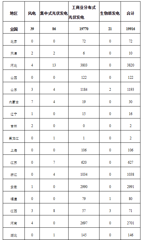 1月(yue)27日(ri),國(guo)家能源局發布關于2024年12月(yue)全國(guo)新(xin)增(zeng)建(jian)檔立(li)卡新(xin)能源發電(dian)(不含自然人(ren)戶(hu)用光伏(fu))項目情(qing)況的(de)公告。 2024年12月,全國新增建(jian)檔立(li)卡新能(neng)源發(fa)(fa)電(dian)(dian)(不含(han)自然(ran)人戶(hu)用光(guang)伏(fu))項(xiang)(xiang)目(mu)共19916個,其中(zhong)風(feng)電(dian)(dian)項(xiang)(xiang)目(mu)39個,光(guang)伏(fu)發(fa)(fa)電(dian)(dian)項(xiang)(xiang)目(mu)19856個(集中(zhong)式光(guang)伏(fu)發(fa)(fa)電(dian)(dian)項(xiang)(xiang)目(mu)86個,工商(shang)業分(fen)布式光(guang)伏(fu)發(fa)(fa)電(dian)(dian)項(xiang)(xiang)目(mu)19770個),生(sheng)物質(zhi)發(fa)(fa)電(dian)(dian)項(xiang)(xiang)目(mu)21個。風(feng)電(dian)(dian)、集中(zhong)式光(guang)伏(fu)發(fa)(fa)電(dian)(dian)、生(sheng)物質(zhi)發(fa)(fa)電(dian)(dian)項(xiang)(xiang)目(mu)清(qing)單(dan)見附件,工商(shang)業分(fen)布式光(guang)伏(fu)發(fa)(fa)電(dian)(dian)項(xiang)(xiang)目(mu)清(qing)單(dan)詳見國家可再(zai)生(sheng)能(neng)源發(fa)(fa)電(dian)(dian)項(xiang)(xiang)目(mu)信息管理平臺網站。 2024年12月(yue)全國(guo)新(xin)增建檔立卡新(xin)能(neng)源發電項(xiang)目情況