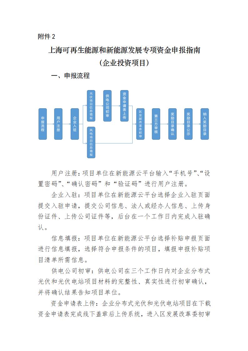 2月20日,上海市發改委發布了《關于做好2025年可再生能源和新能源專項資金獎勵項目申報和資金撥付工作的通知》。通知要求,按照《辦法》明確的支持范圍、支持方式和獎勵標準、申報程序等要求,各區發展改革委按半年度組織電網企業、投資主體做好項目初審和轉報工作,于2025年3月10日和8月底前將截至申報日的可再生能源項目進行線上初審,并將初審意見和目錄清單報送市發改委。市發改委將委托第三方機構對各區初審通過項目進行審核,按程序發布獎勵項目目錄。 落實電網企業獎勵資金申報和撥付的主體責任。電網企業應嚴格按照市發改委發布的獎勵項目目錄,于2025年4月底和10月底前將截至申報日的項目實際發電量和應獎勵金額報送市發改委,確保項目發電量與發電時段的嚴格匹配。市發改委將委托第三方機構對電網企業申報資金進行審核,按程序向財政部門申請撥付資金。電網企業收到財政撥付的獎勵資金后,應在一個月內轉付給項目投資主體。 詳情如下: 關于做好2025年可再生能源和新能源專項資金獎勵項目申報和資金撥付工作的通知 各區發展改革委,國網上海市電力公司,上海石電能源有限公司,市節能減排中心,各有關單位: 根據《上海市可再生能源和新能源發展專項資金扶持辦法》(滬發改規范〔2022〕14號,下稱《辦法》),為做好2025年度可再生能源專項資金獎勵項目申報和資金撥付工作,持續推進節能減排和能源結構優化,現將有關事項通知如下: 一、規范有序做好項目申報組織 按照《辦法》明確的支持范圍、支持方式和獎勵標準、申報程序等要求,各區發展改革委按半年度組織電網企業、投資主體做好項目初審和轉報工作,于2025年3月10日和8月底前將截至申報日的可再生能源項目進行線上初審,并將初審意見和目錄清單報送我委。我委將委托第三方機構對各區初審通過項目進行審核,按程序發布獎勵項目目錄。 二、確保資金申請撥付準確及時 落實電網企業獎勵資金申報和撥付的主體責任。電網企業應嚴格按照我委發布的獎勵項目目錄,于2025年4月底和10月底前將截至申報日的項目實際發電量和應獎勵金額報送我委,確保項目發電量與發電時段的嚴格匹配。我委將委托第三方機構對電網企業申報資金進行審核,按程序向財政部門申請撥付資金。電網企業收到財政撥付的獎勵資金后,應在一個月內轉付給項目投資主體。 三、強化項目和資金信息化管理 國網上海市電力公司經營范圍內的可再生能源項目在新能源云平臺(網址://sgnec.sgcc.com.cn/tariff_subsidy)開展獎勵目錄線上申報。其中:自然人戶用光伏由供電公司代為線上申報;其他類型項目由投資主體線上申報,供電公司應及時完成線上初審,并及時通知投資主體上傳加蓋雙方公章的獎勵資金申請表。變更項目和上海石電能源經營范圍內的項目暫通過線下申報。 四、做好服務保障和審核把關 各有關單位要高度重視獎勵項目申報和資金撥付工作。各區發展改革委對符合申報要求的項目單位要通知到位、服務到位,會同電網企業加強對項目類型、獎勵強度、并網時間等關鍵信息的審核,海上風電、海上光伏、光伏電站、光伏建筑一體化等重點項目需現場確認。電網企業應按照國家和我市有關規定,為可再生能源項目的接網消納、項目申報提供高效便捷服務。請國網上海市電力公司做好新能源云平臺的系統維護、使用培訓和技術支持等工作。 特此通知。 附件:1.新能源云平臺和各區聯系方式 2.上海可再生能源和新能源發展專項資金申報指南(企業投資項目) 上海市發展和改革委員會 2025年2月20日