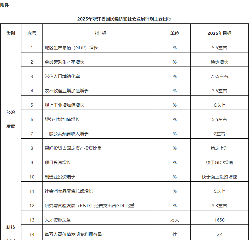 3月(yue)4日,浙(zhe)江省(sheng)人民(min)政府(fu)下達2025年浙(zhe)江省(sheng)國(guo)民(min)經濟和社會發展計劃。其中提到,確保臺(tai)州(zhou)清陶鋰電池等項目(mu)建成投運。 培(pei)育壯(zhuang)大新(xin)興(xing)產(chan)(chan)業(ye)(ye),“一業(ye)(ye)一策(ce)”支持生物醫藥、高端(duan)裝備(bei)、新(xin)能源汽車(che)、新(xin)材料等產(chan)(chan)業(ye)(ye)發展(zhan),提升智(zhi)能物聯、集成電路、高端(duan)軟(ruan)件、智(zhi)能光伏(fu)等產(chan)(chan)業(ye)(ye)集群建(jian)設(she)水(shui)平,力爭戰略性新(xin)興(xing)產(chan)(chan)業(ye)(ye)增加(jia)(jia)值增長7.5%。布(bu)局建(jian)設(she)未(wei)來產(chan)(chan)業(ye)(ye),深化(hua)“人(ren)工(gong)智(zhi)能+”行動,加(jia)(jia)快布(bu)局人(ren)形(xing)機器(qi)人(ren)、量子信息(xi)(xi)、類腦智(zhi)能、合(he)成生物、空天信息(xi)(xi)和低(di)空經濟等新(xin)產(chan)(chan)業(ye)(ye)新(xin)業(ye)(ye)態(tai),建(jian)立未(wei)來產(chan)(chan)業(ye)(ye)投入增長機制,培(pei)育一批未(wei)來產(chan)(chan)業(ye)(ye)先導區。 確保新(xin)增電力裝機2000萬千瓦以上(shang),其中綠色能源(yuan)占比60%以上(shang)。加強能源(yuan)運行調度,深化電力、天(tian)然氣等能源(yuan)體制機制改革,力爭(zheng)全省工商業(ye)電價較上(shang)年下(xia)(xia)降3分/千瓦時(shi)以上(shang),供(gong)浙氣源(yuan)綜合價格下(xia)(xia)降3—5分/立方米。 以下為原文: 一、發(fa)揮政策(ce)引(yin)導(dao)保障支撐作用,最大程(cheng)度把政策(ce)紅利轉化為發(fa)展動(dong)力(li) (一)加(jia)快落實中央一攬子經濟政(zheng)策。承接執行更加(jia)積極的(de)財政(zheng)政(zheng)策、適度(du)寬松的(de)貨幣政(zheng)策,持續(xu)做好“兩重”“兩新”、專(zhuan)項債(zhai)(zhai)等項目(mu)謀劃儲備(bei)和對(dui)接爭取工作,開展(zhan)專(zhuan)項債(zhai)(zhai)券項目(mu)“自審自發”試點,做好政(zheng)府(fu)隱性債(zhai)(zhai)務置換(huan)工作,力爭超長期特別國(guo)債(zhai)(zhai)、專(zhuan)項債(zhai)(zhai)、中央預算內投資等份額占全國(guo)比重穩中有升(sheng),新增100個(ge)以上項目(mu)納入(ru)國(guo)家(jia)用地(di)保(bao)障范圍,爭取更多項目(mu)納入(ru)國(guo)家(jia)能(neng)耗單(dan)列清單(dan)。 (二)迭代(dai)完(wan)善“8+4”經(jing)(jing)濟(ji)政策體(ti)系。安排省(sheng)級(ji)財政資金1042.8億(yi)元(yuan),供應建設用地35萬(wan)畝(mu)以(yi)上,支持(chi)經(jing)(jing)濟(ji)高(gao)質量(liang)發(fa)展。加大助企惠企力度(du),為經(jing)(jing)營主體(ti)減負2500億(yi)元(yuan)以(yi)上,進(jin)一步穩定預(yu)期、激發(fa)活(huo)力。促進(jin)政府投資基金創新發(fa)展,引領撬動(dong)市(shi)場化基金,壯(zhuang)大耐心資本,鼓勵創投基金投早、投小、投長(chang)期、投硬科(ke)技。強化金融服務實體(ti)經(jing)(jing)濟(ji)導向,深入實施融資暢(chang)通工程(cheng)和“鳳凰行動(dong)”計劃,確保融資總量(liang)合理充裕。 (三)完善協同(tong)聯動的(de)政(zheng)策(ce)(ce)落實(shi)機(ji)(ji)制。強(qiang)化政(zheng)策(ce)(ce)取(qu)向一致(zhi)性(xing)評估,建立(li)自上(shang)而下、雙向打(da)通的(de)重(zhong)大(da)項(xiang)目(mu)謀劃機(ji)(ji)制,健全分類分層分級協調、要素靠前協同(tong)保障、財力統(tong)籌(chou)等(deng)工(gong)作機(ji)(ji)制,運用好數(shu)字化手段重(zhong)塑政(zheng)策(ce)(ce)落實(shi)機(ji)(ji)制,確保各(ge)項(xiang)政(zheng)策(ce)(ce)直達快享、精準落地。 二、提振(zhen)和擴大(da)消(xiao)(xiao)費(fei),切實(shi)增強消(xiao)(xiao)費(fei)促發展基礎性作用(yong) (一)促進消費(fei)擴(kuo)(kuo)量提(ti)(ti)(ti)質。實施提(ti)(ti)(ti)振消費(fei)專項(xiang)行(xing)動,力(li)爭社會消費(fei)品零(ling)售總(zong)額增(zeng)(zeng)長5%以(yi)上。推動中(zhong)低收入(ru)群體增(zeng)(zeng)收減負(fu),完善勞動者工(gong)資(zi)正常增(zeng)(zeng)長機制(zhi),提(ti)(ti)(ti)升(sheng)消費(fei)能力(li)、意愿(yuan)和(he)層級。拓展消費(fei)新場景新業(ye)態,培(pei)育壯大(da)首發(fa)經(jing)(jing)(jing)濟(ji)(ji)(ji)、銀發(fa)經(jing)(jing)(jing)濟(ji)(ji)(ji)、會展經(jing)(jing)(jing)濟(ji)(ji)(ji)、演藝(yi)經(jing)(jing)(jing)濟(ji)(ji)(ji)、賽(sai)事經(jing)(jing)(jing)濟(ji)(ji)(ji),提(ti)(ti)(ti)升(sheng)商圈經(jing)(jing)(jing)濟(ji)(ji)(ji)、夜間經(jing)(jing)(jing)濟(ji)(ji)(ji)的規模(mo)和(he)效益,打造更多精品項(xiang)目、爆款(kuan)“IP”。擴(kuo)(kuo)大(da)生活(huo)性服(fu)(fu)務消費(fei),營造放心消費(fei)環境,挖(wa)掘餐飲住(zhu)宿、家政服(fu)(fu)務、養老托幼等基(ji)礎型消費(fei),激(ji)發(fa)文化娛樂(le)、旅游休閑、教(jiao)育體育等改善型消費(fei)。推動入(ru)境游加快復蘇,優化實施口岸簽(qian)證(zheng)、過境免(mian)簽(qian)、郵(you)輪入(ru)境免(mian)簽(qian)等措施,全(quan)面(mian)提(ti)(ti)(ti)升(sheng)境外游客“吃住(zhu)行(xing)游購(gou)娛”便利度。 (二(er))加力(li)擴圍實施(shi)“兩新”政策(ce)。加強線上(shang)線下聯動(dong),持續推(tui)進(jin)汽車(che)、手機、家電(dian)家居、電(dian)動(dong)自行車(che)等(deng)消費品(pin)以舊(jiu)換新和醫療(liao)設(she)備(bei)、電(dian)梯等(deng)設(she)備(bei)更新,優化政策(ce)設(she)計、補貼程序、兌付方(fang)式,完善(shan)“去舊(jiu)更容易、換新更愿意”的高(gao)效(xiao)服務(wu)機制,擴大政策(ce)受(shou)益面(mian)。 (三(san))推(tui)動構建房(fang)(fang)地產發(fa)展新模式。全(quan)面落實國家降(jiang)利(li)率(lv)、降(jiang)首付