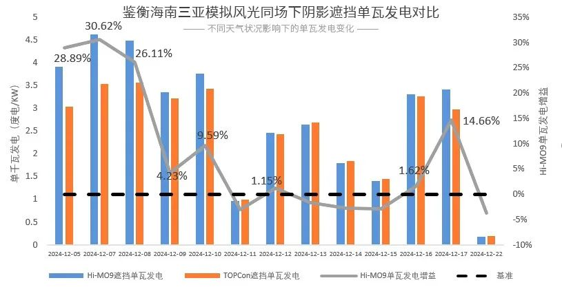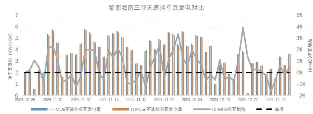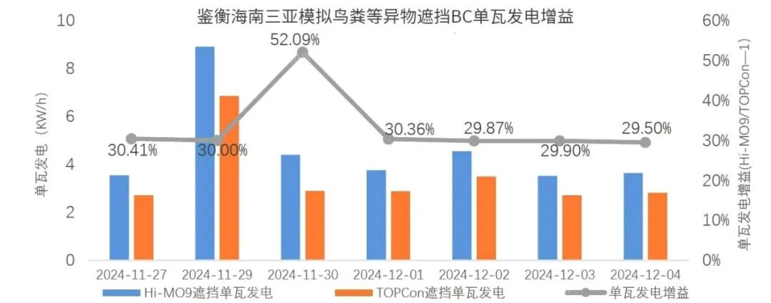 近(jin)日,國內權威(wei)的第(di)三方認(ren)證機構北京鑒衡(heng)認(ren)證中心(xin)(以下簡稱(cheng)“鑒衡(heng)認(ren)證”)發布了隆(long)基BC二代技術(shu)Hi-MO 9組件產品海(hai)南實證項目報告。 ?■ Hi-MO 9組件海南實證(zheng)項目 數據顯(xian)示,應用了(le)BC二(er)代(dai)技(ji)術的(de)Hi-MO 9組件,在(zai)戶外正常(chang)發(fa)電(dian)量、局部遮擋發(fa)電(dian)量、立柱遮擋發(fa)電(dian)量三個核心維(wei)度全(quan)面(mian)領先TOPCon組件,累計單千瓦發(fa)電(dian)增益分別高達(da)0.75%、32.62%、11.34%,呈現出超強的(de)綜(zong)合發(fa)電(dian)能力(li)。 隆基海南實(shi)證項目位于三亞市崖州區紅島隊(dui),當地地處低緯(wei)度熱(re)帶(dai)(dai)地區,全年(nian)日照豐(feng)富,屬于熱(re)帶(dai)(dai)海洋(yang)性(xing)季風氣候(hou)。實(shi)證現場共設置四(si)個組件陣(zhen)列(lie)(lie)(BC二(er)代與(yu)TOPCon組件各20塊),其中兩個陣(zhen)列(lie)(lie)為遮擋(dang)處理組件,另(ling)外兩個陣(zhen)列(lie)(lie)為未(wei)遮擋(dang)組件。 本次實(shi)證歷時(shi)兩個多月(2024.10~2024.12),在鑒衡認證的監督下(xia),通過(guo)對比(bi)累計單(dan)瓦(wa)發電量(liang)、不同時(shi)段累計單(dan)瓦(wa)發電等數(shu)據,全方位展示隆基(ji)BC二代技術(shu)Hi-MO 9組(zu)(zu)件與(yu)市面主流(liu)TOPCon組(zu)(zu)件在工程應用場景下(xia)的實(shi)證表現。 三大主流場景:BC全面領先 場景一:全光照未遮擋 在戶外無遮(zhe)擋的(de)理想(xiang)工(gong)作狀(zhuang)況下,Hi-MO 9憑借超高效BC二(er)代(dai)(dai)技術(shu)(shu),展露鋒(feng)芒(mang)。經鑒衡認證跟蹤認定(ding),在2024年10月(yue)26日至(zhi)12月(yue)30日的(de)認證期間,BC二(er)代(dai)(dai)技術(shu)(shu)Hi-MO 9組件相(xiang)較TOPCon組件累(lei)計單千瓦發電(dian)增益0.75%,累(lei)計單位面積發電(dian)增益5.22%;在溫(wen)度控制(zhi)方面BC二(er)代(dai)(dai)技術(shu)(shu)Hi-MO 9組件同(tong)樣(yang)表現優秀(xiu),其(qi)背板平均工(gong)作溫(wen)度相(xiang)比TOPCon組件低(di)0.69℃,峰值溫(wen)差可達3.5℃,展現出高效、穩定(ding)的(de)發電(dian)能力。 ■ 全光(guang)照未遮擋場(chang)景下的發(fa)電量對比(bi) 場景二:模擬鳥糞等異物遮擋 集中式電站戶(hu)外運行環境復雜,鳥糞、樹葉、沙土(tu)等異(yi)物(wu)對組件(jian)(jian)局部(bu)遮(zhe)擋屢見不鮮。在(zai)2024年11月(yue)27日(ri)至12月(yue)4日(ri)的實(shi)證(zheng)期間,設定單組件(jian)(jian)遮(zhe)擋3塊(kuai)電池(chi)片(等效5%面(mian)積),經鑒衡認證(zheng)跟蹤(zong)監測(ce),BC二代技(ji)術Hi-MO 9組件(jian)(jian)發電數據呈“斷崖式”領(ling)先。 相比主(zhu)流(liu)TOPCon組件(jian)(jian),BC二(er)代技術Hi-MO 9組件(jian)(jian)累計(ji)單千(qian)瓦發(fa)電(dian)(dian)增益高達(da)32.62%,累計(ji)單位(wei)面(mian)積發(fa)電(dian)(dian)增益37.34%,并(bing)在(zai)不同輻照、不同天(tian)氣下均有明顯優勢。同時,BC二(er)代技術Hi-MO 9組件(jian)(jian)在(zai)熱(re)管理(li)方面(mian)也實現(xian)了突破,在(zai)局部(bu)(bu)遮擋(dang)條件(jian)(jian)下,BC二(er)代技術Hi-MO 9組件(jian)(jian)背板平均溫度(du)低于TOPCon組件(jian)(jian)約7.43℃,具有更低的工作溫度(du),可有效防范因局部(bu)(bu)遮擋(dang)而引(yin)發(fa)的電(dian)(dian)站火(huo)災等安(an)全(quan)隱患。 ■ 異物遮擋(dang)場景下的發電量(liang)對(dui)比 場景三:模擬風光同場下陰影遮擋 持續性陰影遮擋(dang),是影響集中式電站戶外(wai)發電的(de)另一個(ge)重要因素(su)。本次實證共設(she)置高為5米的(de)立柱(zhu)各(ge)一根,連續遮擋(dang)組件18天,實證結果顯示BC二(er)代技術Hi-MO 9組件同樣表現(xian)不(bu)俗。 ■ 陰(yin)影遮擋模擬 經(jing)鑒衡(heng)認證(zheng)監(jian)測認定,BC二代(dai)技(ji)術Hi-MO 9組(zu)件累計單(dan)千瓦發電增益11.34%,累計單(dan)位面積增益16.27%,且BC二代(dai)技(ji)術Hi-MO 9組(zu)件背(bei)板平均溫度仍低于(yu)TOPCon組(zu)件約0.83℃,高效發電十(shi)分出彩。 ■ 陰(yin)影遮擋(dang)場景下的發電量對比 時(shi)間是最好的(de)試金(jin)石(shi)。海南實證項(xiang)目全(quan)方位展示了隆基BC二代技術Hi-MO 9組件在戶(hu)外復雜場景下的(de)優(you)秀發電(dian)能力,其背后蘊藏的(de)是隆基始終聚(ju)焦客戶(hu)價值,持續(xu)創新突破的(de)開(kai)拓者精(jing)神。未(wei)來,更(geng)具價值的(de)BC二代技術和產品還將帶給全(quan)球客戶(hu)更(geng)多收益與驚喜。 上一篇: 擬募資245億!華潤新能源即將A股上市