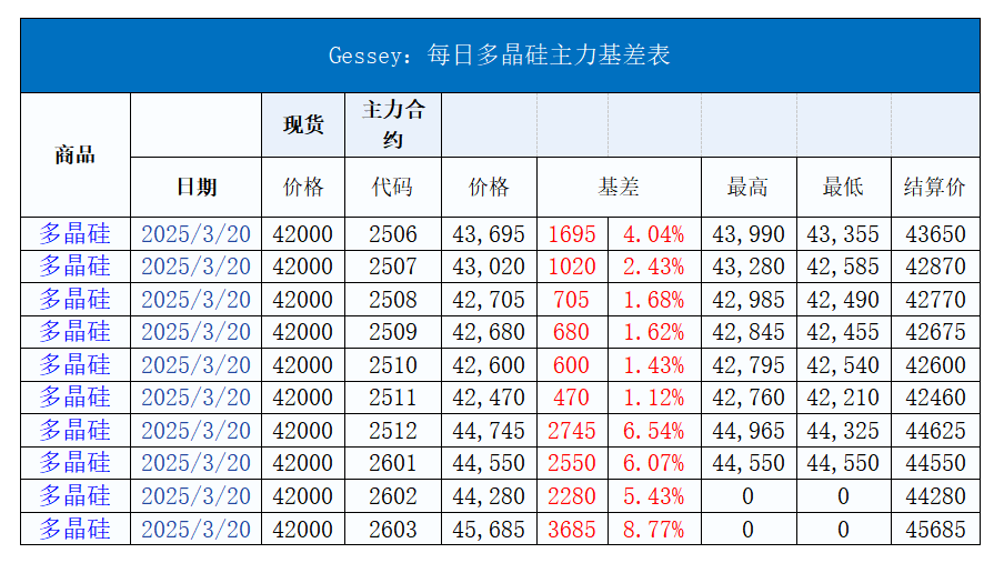 現貨市場價格變動: 多晶硅: 今日硅(gui)(gui)料價(jia)格(ge)(ge)整體維穩(wen),N型料主流價(jia)格(ge)(ge)在(zai)40-45元(yuan)(yuan)(yuan)/公(gong)(gong)斤(jin),均(jun)價(jia)42元(yuan)(yuan)(yuan)/公(gong)(gong)斤(jin)。N型顆粒硅(gui)(gui)主流價(jia)格(ge)(ge)在(zai)38-40元(yuan)(yuan)(yuan)/公(gong)(gong)斤(jin),均(jun)價(jia)39元(yuan)(yuan)(yuan)/公(gong)(gong)斤(jin)。國(guo)產復投特級(ji)硅(gui)(gui)料主流價(jia)格(ge)(ge)在(zai)33-36元(yuan)(yuan)(yuan)/公(gong)(gong)斤(jin),均(jun)價(jia)35元(yuan)(yuan)(yuan)/公(gong)(gong)斤(jin),國(guo)產致密(mi)特級(ji)硅(gui)(gui)料主流價(jia)格(ge)(ge)在(zai)32-35元(yuan)(yuan)(yuan)/公(gong)(gong)斤(jin),均(jun)價(jia)34元(yuan)(yuan)(yuan)/公(gong)(gong)斤(jin)。 硅片: 今日硅片(pian)(pian)(pian)價(jia)(jia)格(ge)整體維(wei)(wei)穩, 182mm單(dan)(dan)晶硅片(pian)(pian)(pian)主(zhu)(zhu)流(liu)現(xian)貨(huo)價(jia)(jia)格(ge)維(wei)(wei)持1-1.15元(yuan)(yuan)/片(pian)(pian)(pian),均(jun)價(jia)(jia)1.08元(yuan)(yuan)/片(pian)(pian)(pian)。210mm單(dan)(dan)晶硅片(pian)(pian)(pian)主(zhu)(zhu)流(liu)現(xian)貨(huo)價(jia)(jia)格(ge)維(wei)(wei)持1.6-1.7元(yuan)(yuan)/片(pian)(pian)(pian),均(jun)價(jia)(jia)1.65元(yuan)(yuan)/片(pian)(pian)(pian)。N型-183.75mm單(dan)(dan)晶硅片(pian)(pian)(pian)主(zhu)(zhu)流(liu)現(xian)貨(huo)價(jia)(jia)格(ge)維(wei)(wei)持1.18-1.2元(yuan)(yuan)/片(pian)(pian)(pian),均(jun)價(jia)(jia)1.2元(yuan)(yuan)/片(pian)(pian)(pian)。N型-210mm單(dan)(dan)晶硅片(pian)(pian)(pian)主(zhu)(zhu)流(liu)現(xian)貨(huo)價(jia)(jia)格(ge)維(wei)(wei)持1.5-1.55元(yuan)(yuan)/片(pian)(pian)(pian),均(jun)價(jia)(jia)1.55元(yuan)(yuan)/片(pian)(pian)(pian)。N型-210Rmm單(dan)(dan)晶硅片(pian)(pian)(pian)主(zhu)(zhu)流(liu)現(xian)貨(huo)價(jia)(jia)格(ge)1.35-1.45元(yuan)(yuan)/片(pian)(pian)(pian),均(jun)價(jia)(jia)1.4元(yuan)(yuan)/片(pian)(pian)(pian)。 電池片: 今日電(dian)(dian)池片(pian)價(jia)格整體維(wei)穩,23%以(yi)(yi)上(shang)(shang)183.75mm尺寸(cun)雙面單晶perc主(zhu)(zhu)流(liu)(liu)價(jia)格在(zai)0.27-0.29元(yuan)/瓦(wa)(wa)(wa)(wa),均價(jia)0.275元(yuan)/瓦(wa)(wa)(wa)(wa)。23%以(yi)(yi)上(shang)(shang)210mm雙面單晶perc主(zhu)(zhu)流(liu)(liu)價(jia)格在(zai)0.28-0.3元(yuan)/瓦(wa)(wa)(wa)(wa),均價(jia)0.28元(yuan)/瓦(wa)(wa)(wa)(wa)。24.3%以(yi)(yi)上(shang)(shang)183.75mm雙面Topcon電(dian)(dian)池片(pian)主(zhu)(zhu)流(liu)(liu)價(jia)格在(zai)0.295-0.305元(yuan)/瓦(wa)(wa)(wa)(wa),均價(jia)0.3元(yuan)/瓦(wa)(wa)(wa)(wa)。24.3%以(yi)(yi)上(shang)(shang)210mm雙面Topcon電(dian)(dian)池片(pian)主(zhu)(zhu)流(liu)(liu)價(jia)格在(zai)0.29-0.31元(yuan)/瓦(wa)(wa)(wa)(wa),均價(jia)0.305元(yuan)/瓦(wa)(wa)(wa)(wa)。24.3%以(yi)(yi)上(shang)(shang)210Rmm雙面Topcon電(dian)(dian)池片(pian)主(zhu)(zhu)流(liu)(liu)價(jia)格在(zai)0.3-0.35元(yuan)/瓦(wa)(wa)(wa)(wa),均價(jia)0.35元(yuan)/瓦(wa)(wa)(wa)(wa)。 組件: 今日(ri)組(zu)(zu)件價(jia)(jia)格(ge)小幅上(shang)漲,雙面(mian)(mian)(mian)單晶(jing)perc組(zu)(zu)件(182系(xi)列)價(jia)(jia)格(ge)在(zai)(zai)0.6-0.67元(yuan)(yuan)/ 瓦(wa)(wa)(wa),均價(jia)(jia)為(wei)0.665元(yuan)(yuan)/瓦(wa)(wa)(wa)。雙面(mian)(mian)(mian)單晶(jing)perc組(zu)(zu)件(210系(xi)列)價(jia)(jia)格(ge)在(zai)(zai)0.62-0.68元(yuan)(yuan)/ 瓦(wa)(wa)(wa),均價(jia)(jia)為(wei)0.67元(yuan)(yuan)/瓦(wa)(wa)(wa)。N型(xing)雙面(mian)(mian)(mian)Topcon 組(zu)(zu)件(182系(xi)列)價(jia)(jia)格(ge)在(zai)(zai)0.69-0.73元(yuan)(yuan)/ 瓦(wa)(wa)(wa),均價(jia)(jia)為(wei)0.72元(yuan)(yuan)/瓦(wa)(wa)(wa)。N型(xing)雙面(mian)(mian)(mian)Topcon 組(zu)(zu)件(210系(xi)列)價(jia)(jia)格(ge)在(zai)(zai)0.69-0.73元(yuan)(yuan)/ 瓦(wa)(wa)(wa),均價(jia)(jia)為(wei)0.725元(yuan)(yuan)/瓦(wa)(wa)(wa)。N型(xing)雙面(mian)(mian)(mian)HJT組(zu)(zu)件(210系(xi)列)價(jia)(jia)格(ge)在(zai)(zai)0.71-0.79元(yuan)(yuan)/ 瓦(wa)(wa)(wa),均價(jia)(jia)為(wei)0.77元(yuan)(yuan)/瓦(wa)(wa)(wa),上漲(zhang)2.67%。中(zhong)國區(qu)分布式項目(mu)(≥580W)價(jia)(jia)格在(zai)0.68-0.76元/瓦(wa)(wa)(wa),均(jun)價(jia)(jia)為(wei)0.75元/瓦(wa)(wa)(wa),中(zhong)國區(qu)集中(zhong)式項目(mu)(≥585W)價(jia)(jia)格在(zai)0.67-0.73元/ 瓦(wa)(wa)(wa),均(jun)價(jia)(jia)為(wei)0.7元/瓦(wa)(wa)(wa)。歐洲港(gang)口(kou)現貨價(jia)(jia)格在(zai)0.088-0.96美(mei)元/ 瓦(wa)(wa)(wa),均(jun)價(jia)(jia)為(wei)0.092美(mei)元/瓦(wa)(wa)(wa)。印(yin)度港(gang)口(kou)現貨價(jia)(jia)格在(zai)0.086-0.22美(mei)元/ 瓦(wa)(wa)(wa),均(jun)價(jia)(jia)為(wei)0.21美(mei)元/瓦(wa)(wa)(wa)。美(mei)國港(gang)口(kou)現貨價(jia)(jia)格在(zai)0.26-0.28美(mei)元/ 瓦(wa)(wa)(wa),均(jun)價(jia)(jia)為(wei)0.265美(mei)元/瓦(wa)(wa)(wa)。 玻璃: 今日玻璃價格整體維穩,3.2mm雙層鍍膜光伏玻璃價格在19.5-22元(yuan)/ 平方(fang)米,均價為20元/ 平方米。2.0mm雙層鍍膜光伏玻璃價格在12-14元/ 平(ping)方米,均價為13元/ 平方(fang)米。 聚焦價格波動: 今日HJT組件價格(ge)整體小幅上漲(zhang),N型雙面(mian)HJT組件(210系列)高功率價格(ge)在(zai)0.71-0.79元(yuan)/ 瓦(wa)(wa),均價為0.77元(yuan)/瓦(wa)(wa),上漲2.67%。,常(chang)規(gui)功率(lv)590-610W價格(ge)(ge)在0.77元/瓦。近期(qi)地面電站對于HJT需求大幅提升,促使HJT價格(ge)(ge)持續(xu)上漲。 期貨市場 行情走勢:主力合(he)約收(shou)盤價(jia)為(wei)(wei)43695元(yuan)(yuan)/噸(dun),前結(jie)算價(jia)為(wei)(wei)43240元(yuan)(yuan)/噸(dun),收(shou)盤價(jia)較前結(jie)算價(jia)漲(zhang)(zhang)幅(fu)(fu)為(wei)(wei)1.05%,收(shou)盤價(jia)較開盤價(jia)漲(zhang)(zhang)85元(yuan)(yuan)/噸(dun