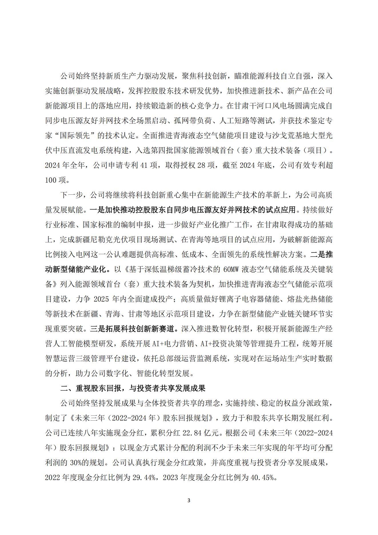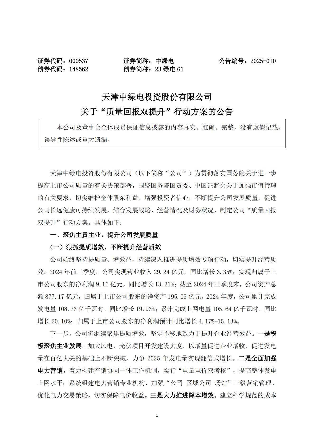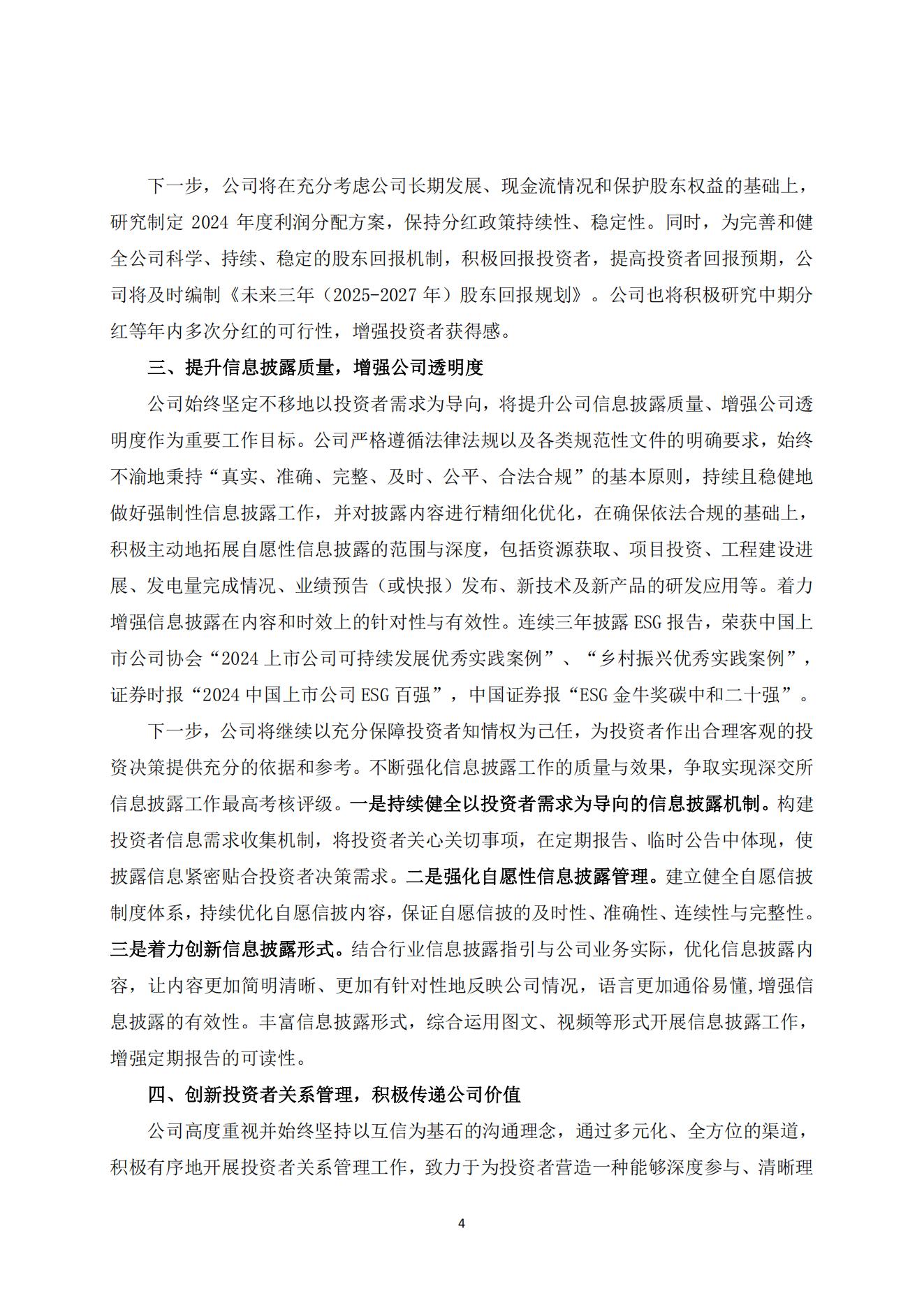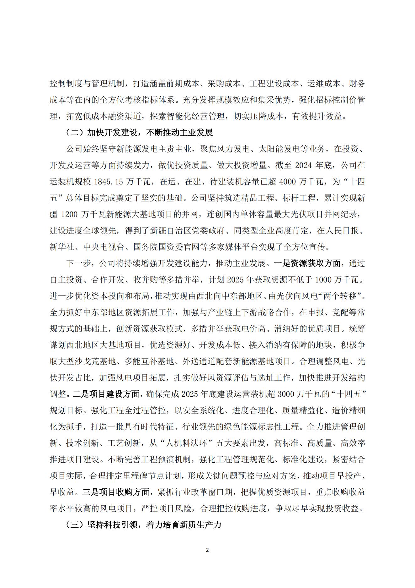 3月27日,中綠電發布關于“質量回報雙提升”行動方案的公告。 根據公告披露,中綠電聚焦風力發電、太陽能發電等業務,在投資、開發及運營等方面持續發力,做優投資質量、做大投資增量。截至2024年底,公司在運裝機規模1845.15萬千瓦,在運、在建、待建裝機容量已超4000萬千瓦。 據悉,中綠電累計實現新疆1200萬千瓦新能源大基地項目的并網,連創國內單體容量最大光伏項目并網紀錄,建設進度全球領先。 中綠電計劃2025年獲取資源不低于1000萬千瓦,確保完成2025年底建設運營裝機超3000萬千瓦的“十四五”規劃目標。