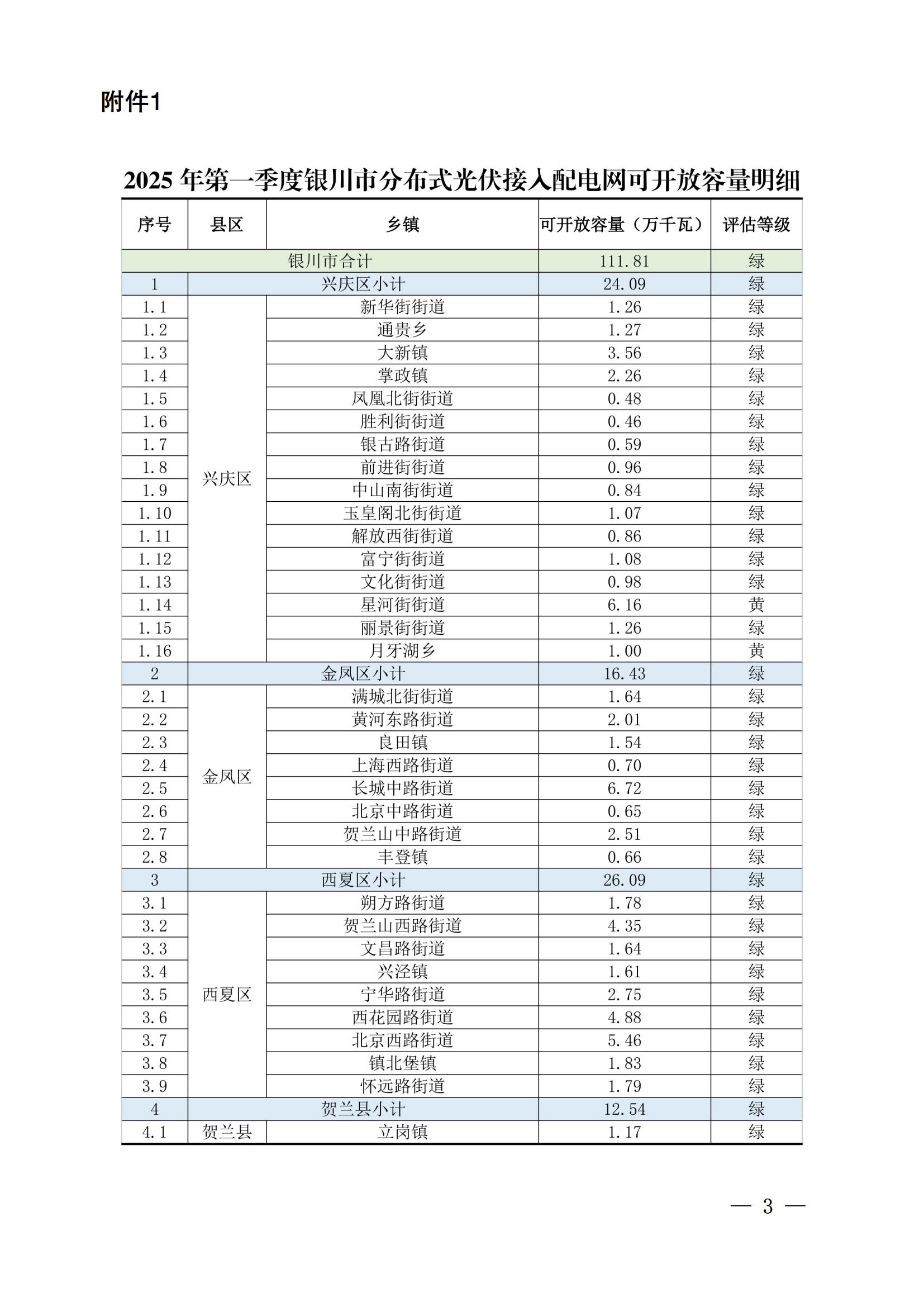 3月28日,銀川市發展和改革委發布銀川市2025年第一季度分布式光伏接入配電網可開放容量。 原文如下: 為進一步提升銀川市分布式光伏發展水平,促進分布式光伏健康可持續發展,國網銀川供電公司對全市分布式光伏接入電網承載力評估和可開放容量進行了測算,現予以轉發。 附件:國網銀川供電公司關于印發2025年第一季度銀川市分布式光伏接入配電網可開放容量明細及開發建設重點推薦區域的通知