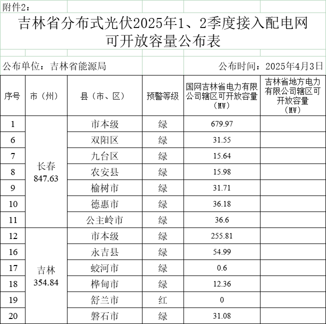 4月(yue)3日,吉林(lin)省(sheng)能(neng)源局下發(fa)(fa)了《關(guan)于轉發(fa)(fa)國(guo)家能(neng)源局《分布式光(guang)伏(fu)(fu)發(fa)(fa)電開(kai)(kai)發(fa)(fa)建設管(guan)(guan)理辦(ban)法》的通知》。文件明確,各級能(neng)源主管(guan)(guan)部(bu)門要(yao)(yao)會同(tong)電網企業,加強對分布式光(guang)伏(fu)(fu)發(fa)(fa)電與電力供(gong)需形(xing)勢、系統消納(na)條件、配(pei)電網承載力、新能(neng)源利用率(lv)等要(yao)(yao)素的銜接研究,按(an)照《管(guan)(guan)理辦(ban)法》科學統籌(chou)開(kai)(kai)展(zhan)項目(mu)(mu)開(kai)(kai)發(fa)(fa)管(guan)(guan)理,不得(de)以特(te)許經(jing)營(ying)權方式控制屋頂(ding)開(kai)(kai)發(fa)(fa)資源,不得(de)限制各類投資主體(ti)平等參與項目(mu)(mu)開(kai)(kai)發(fa)(fa)建設。 各(ge)(ge)類分布式光伏發電(dian)項目(mu)可(ke)按照國家有關規定參與電(dian)力市場,新建項目(mu)應(ying)實現“可(ke)觀、可(ke)測(ce)、可(ke)調(diao)(diao)、可(ke)控”,以提(ti)升電(dian)網(wang)(wang)承(cheng)載力和調(diao)(diao)控能力。省能源局會同(tong)電(dian)網(wang)(wang)企業(ye)對(dui)項目(mu)余電(dian)上網(wang)(wang)比例逐(zhu)年動態調(diao)(diao)整,2025年一般工商業(ye)自發自用(yong)余電(dian)上網(wang)(wang)類項目(mu)年度上網(wang)(wang)電(dian)量(liang)不超(chao)過全部發電(dian)量(liang)的20%。各(ge)(ge)地能源主管部門要會同(tong)電(dian)網(wang)(wang)企業(ye)根據(ju)負荷特(te)性、接入條件及消納(na)情況(kuang)等對(dui)項目(mu)用(yong)電(dian)比例做好(hao)監測(ce)評估,對(dui)超(chao)比例電(dian)量(liang)不予接入。 此(ci)外,文件同時公布了(le)吉(ji)林省(sheng)2025年1、2季度分布式光伏可(ke)(ke)接入容量(liang),舒蘭為紅區(qu),其(qi)他(ta)均為綠(lv)區(qu)。全省(sheng)總計可(ke)(ke)計入容量(liang)為1794.921MW。其(qi)中,國網(wang)吉(ji)林電(dian)(dian)力(li)有限公司(si)轄(xia)區(qu)可(ke)(ke)開(kai)放容量(liang)為1716.1MW,吉(ji)林省(sheng)地方電(dian)(dian)力(li)有限公司(si)轄(xia)區(qu)可(ke)(ke)開(kai)放容量(liang)為78.821MW。 全文(wen)如下: 關于轉發國家能源局《分布式光伏發電開發建設管理辦法》的通知 各(ge)(ge)市(州)發改(gai)(gai)委(能源(yuan)(yuan)局(ju)(ju)),長白山(shan)管委會經濟發展局(ju)(ju),梅河口市發改(gai)(gai)局(ju)(ju),各(ge)(ge)縣(市、區)發改(gai)(gai)局(ju)(ju)(能源(yuan)(yuan)局(ju)(ju)、辦),國(guo)網吉林省(sheng)電力(li)有限公司(si),吉林省(sheng)地方電力(li)有限公司(si),各(ge)(ge)有關(guan)企業: 近日,國家(jia)能源(yuan)局(ju)印發(fa)(fa)(fa)《分(fen)(fen)布式光(guang)伏(fu)(fu)發(fa)(fa)(fa)電開發(fa)(fa)(fa)建設管理(li)(li)辦法》的通知(國能發(fa)(fa)(fa)新能規(gui)〔2025〕7號(hao))(以(yi)下(xia)(xia)簡(jian)稱《管理(li)(li)辦法》)。為貫徹落實《管理(li)(li)辦法》,進(jin)一步(bu)規(gui)范我(wo)省分(fen)(fen)布式光(guang)伏(fu)(fu)發(fa)(fa)(fa)電項目管理(li)(li),更好的推進(jin)我(wo)省新能源(yuan)高質量發(fa)(fa)(fa)展,現將《管理(li)(li)辦法》轉發(fa)(fa)(fa)你們,并提出具體落實工(gong)作要求,現通知如下(xia)(xia)。 一、做(zuo)好政策銜(xian)接(jie)落地。各(ge)級能源主管(guan)(guan)(guan)部門要(yao)認真抓好貫徹落實,通過多種(zhong)渠道(dao)向社會解讀和宣傳(chuan)《管(guan)(guan)(guan)理辦法》,嚴格(ge)按照(zhao)要(yao)求(qiu)規范分布(bu)(bu)式光伏項(xiang)目(mu)備(bei)案(an)(an)和管(guan)(guan)(guan)理,確保政策有(you)效落地。各(ge)級電網企(qi)業要(yao)按照(zhao)《管(guan)(guan)(guan)理辦法》要(yao)求(qiu),合理安排《管(guan)(guan)(guan)理辦法》發布(bu)(bu)日(ri)之(zhi)前已完成備(bei)案(an)(an)項(xiang)目(mu)的(de)并網接(jie)入(ru)工(gong)作,避免(mian)并網延誤。 二(er)、做好規(gui)劃(hua)和工作統籌。各(ge)級(ji)能(neng)源(yuan)(yuan)主管(guan)部門要(yao)會同電(dian)網企業(ye),加強對分布(bu)(bu)(bu)式(shi)光(guang)伏(fu)發(fa)電(dian)與電(dian)力(li)供需(xu)形勢、系統消納條件、配(pei)電(dian)網承載力(li)、新能(neng)源(yuan)(yuan)利用率等要(yao)素(su)的銜接研究(jiu),按照《管(guan)理辦法》科(ke)學統籌開展項(xiang)目(mu)開發(fa)管(guan)理,不(bu)得(de)以特許經營權方式(shi)控制屋頂開發(fa)資(zi)源(yuan)(yuan),不(bu)得(de)限(xian)制各(ge)類投資(zi)主體平等參與項(xiang)目(mu)開發(fa)建(jian)設。各(ge)市(州)能(neng)源(yuan)(yuan)主管(guan)部門要(yao)將分布(bu)(bu)(bu)式(shi)光(guang)伏(fu)發(fa)電(dian)項(xiang)目(mu)納入(ru)本級(ji)“十五五”能(neng)源(yuan)(yuan)發(fa)展規(gui)劃(hua),省(sheng)能(neng)源(yuan)(yuan)局將結(jie)合(he)各(ge)地(di)規(gui)劃(hua),將分布(bu)(bu)(bu)式(shi)光(guang)伏(fu)發(fa)展統籌列入(ru)省(sheng)級(ji)能(neng)源(yuan)(yuan)規(gui)劃(hua)。各(ge)地(di)要(yao)因(yin)地(di)制宜探(tan)索(suo)分布(bu)(bu)(bu)式(shi)光(guang)伏(fu)與建(jian)筑設施(shi)融合(he)發(fa)展路徑(jing),推(tui)動農村(cun)分布(bu)(bu)(bu)式(shi)光(guang)伏(fu)建(jian)設科(ke)學布(bu)(bu)(bu)局、有序(xu)開發(fa)。 三、定期公布接(jie)入電(dian)(dian)網(wang)(wang)(wang)可開(kai)(kai)放(fang)容(rong)量。電(dian)(dian)網(wang)(wang)(wang)企(qi)業(ye)要(yao)按年度編制《配電(dian)(dian)網(wang)(wang)(wang)承載力(li)和提升措(cuo)施(shi)評(ping)(ping)估報(bao)(bao)告》報(bao)(bao)省能(neng)(neng)(neng)(neng)源(yuan)(yuan)局,并同(tong)時上傳至全國新(xin)能(neng)(neng)(neng)(neng)源(yuan)(yuan)電(dian)(dian)力(li)消納監測預(yu)