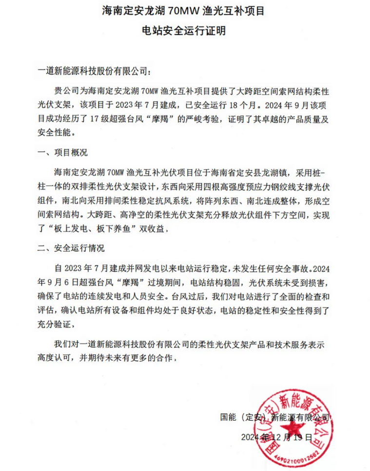 在(zai)全球積極推(tui)(tui)進“雙碳”戰略,大力倡導(dao)能源(yuan)結構(gou)轉型的時(shi)代(dai)背景下(xia),生(sheng)(sheng)態光(guang)(guang)伏(fu)(fu)作(zuo)為(wei)一(yi)種(zhong)極具創新(xin)(xin)性(xing)與前瞻性(xing)的能源(yuan)發展模式(shi)應運而生(sheng)(sheng)。生(sheng)(sheng)態光(guang)(guang)伏(fu)(fu)是深度融合(he)了(le)(le)光(guang)(guang)伏(fu)(fu)發電、生(sheng)(sheng)態保護以(yi)及產(chan)(chan)業(ye)(ye)發展這三大關鍵要(yao)素的新(xin)(xin)型光(guang)(guang)伏(fu)(fu)應用模式(shi)。近年來(lai),我(wo)國出臺了(le)(le)《關于促進新(xin)(xin)時(shi)代(dai)新(xin)(xin)能源(yuan)高(gao)質(zhi)量發展的實施方案(an)》等(deng)利好政策,提(ti)出要(yao)推(tui)(tui)動光(guang)(guang)伏(fu)(fu)產(chan)(chan)業(ye)(ye)與農業(ye)(ye)、林業(ye)(ye)、漁業(ye)(ye)等(deng)產(chan)(chan)業(ye)(ye)融合(he)發展,鼓勵在(zai)沙漠(mo)(mo)、戈(ge)壁、荒(huang)漠(mo)(mo)等(deng)地區建(jian)設大型光(guang)(guang)伏(fu)(fu)基地。作(zuo)為(wei)全場(chang)景解決(jue)方案(an)提(ti)供(gong)商(shang),一(yi)道(dao)新(xin)(xin)能依托行業(ye)(ye)領先的高(gao)精(jing)尖技術打造了(le)(le)DAON組件與柔(rou)性(xing)支(zhi)架“光(guang)(guang)伏(fu)(fu)+”最佳CP產(chan)(chan)品(pin),掀起(qi)了(le)(le)生(sheng)(sheng)態之(zhi)道(dao)熱潮(chao)。 N型基因 最優綜合發電效率 作(zuo)為N型技(ji)術(shu)(shu)的引領者,一道新能在N型技(ji)術(shu)(shu)領域砥礪深耕,目前TOPCon 5.0電池效率(lv)(lv)突破26.9%,開路電壓(ya)高達(da)746mV,多次創造世界紀錄。依托TOPCon為平臺技(ji)術(shu)(shu)的DBC電池效率(lv)(lv)突破27%,組件(jian)轉(zhuan)換效率(lv)(lv)最高效率(lv)(lv)達(da)24.8%,持續引領行業技(ji)術(shu)(shu)發(fa)展的同(tong)時,致(zhi)力于實現(xian)產品最優(you)綜合發(fa)電效率(lv)(lv)。 光伏(fu)組件作(zuo)為電(dian)站最重(zhong)要(yao)的(de)組成部分(fen)之一(yi),其經濟性(xing)(xing)在市(shi)場競爭中至(zhi)關重(zhong)要(yao)。一(yi)道新能(neng)N型(xing)產(chan)品則憑借(jie)高(gao)效(xiao)率、高(gao)功率、高(gao)可靠性(xing)(xing)、高(gao)雙面(mian)率、低衰減、低溫(wen)度系(xi)數等卓(zhuo)越的(de)性(xing)(xing)能(neng)優(you)勢脫(tuo)穎而出(chu),能(neng)夠更(geng)好地滿(man)足市(shi)場對于光伏(fu)組件的(de)嚴苛要(yao)求,成為眾多(duo)(duo)客戶的(de)優(you)選(xuan)。同時,公司前(qian)瞻性(xing)(xing)制定(ding)了“一(yi)主引領、三翼驅動、全(quan)面(mian)發展(zhan)”的(de)研發戰(zhan)略(lve)布局(ju),在TOPCon、DBC、CSPC、TSiP、SFOS等多(duo)(duo)種技術路線上(shang)全(quan)面(mian)發力,與國內外知名院校機構開(kai)展(zhan)廣(guang)泛的(de)產(chan)學研合作(zuo),電(dian)池(chi)效(xiao)率目標錨定(ding)40%。 以“柔“相融 全場景廣域應用 在眾多(duo)特殊多(duo)變的(de)地(di)(di)形(xing)場(chang)景(jing)(jing)中,山地(di)(di)地(di)(di)形(xing)會讓光(guang)(guang)伏(fu)(fu)電站(zhan)的(de)建(jian)設(she)面臨巨大(da)挑戰。地(di)(di)勢(shi)的(de)起(qi)伏(fu)(fu)、坡度的(de)變化以及(ji)復雜的(de)地(di)(di)質條件,都給傳統光(guang)(guang)伏(fu)(fu)支(zhi)架(jia)的(de)安(an)裝和(he)使(shi)用帶來(lai)了諸多(duo)困(kun)難。一道(dao)新(xin)能憑(ping)借著對(dui)技術創(chuang)新(xin)的(de)執著追求和(he)對(dui)市(shi)場(chang)需求的(de)敏(min)銳(rui)洞察(cha),推(tui)出了柔性支(zhi)架(jia)全(quan)場(chang)景(jing)(jing)應(ying)用解決(jue)方(fang)案,大(da)跨距、高凈(jing)空、高安(an)全(quan)性的(de)產品優勢(shi),成功克(ke)服了復雜的(de)山地(di)(di)地(di)(di)形(xing),為光(guang)(guang)伏(fu)(fu)產業在山地(di)(di)地(di)(di)區(qu)的(de)發展(zhan)開辟了新(xin)的(de)道(dao)路。 一道新能(neng)柔(rou)性支(zhi)架(jia)(jia)高凈空的(de)(de)設(she)計,使得在(zai)柔(rou)性支(zhi)架(jia)(jia)的(de)(de)下方擁(yong)有了充足的(de)(de)空間,不僅可(ke)(ke)以(yi)(yi)有效避免植被對光(guang)(guang)伏(fu)組件(jian)的(de)(de)遮擋(dang),提(ti)高發(fa)電效率,還為(wei)綜合資源利用提(ti)供了更多(duo)可(ke)(ke)能(neng)。結合“農(nong)光(guang)(guang)互補(bu)”、“林光(guang)(guang)互補(bu)”、“藥光(guang)(guang)互補(bu)”的(de)(de)經(jing)濟模式,在(zai)柔(rou)性支(zhi)架(jia)(jia)下方可(ke)(ke)以(yi)(yi)進(jin)行特色(se)農(nong)業(ye)(ye)種植、林業(ye)(ye)培育等活(huo)動,在(zai)大力發(fa)展清(qing)潔(jie)能(neng)源的(de)(de)同時,促(cu)進(jin)當地農(nong)業(ye)(ye)、林業(ye)(ye)、漁業(ye)(ye)的(de)(de)發(fa)展,增加(jia)農(nong)民(min)收入。 與(yu)傳統支(zhi)架相比(bi),一道新能(neng)柔性支(zhi)架的大(da)跨(kua)距(ju)設計可以(yi)輕松(song)跨(kua)越山谷、溝壑等障礙,隨(sui)坡就勢(shi),在不(bu)同(tong)高(gao)度(du)的山坡上(shang)(shang)靈活布置,大(da)大(da)提(ti)高(gao)了光伏(fu)(fu)電站的建設效(xiao)率和(he)土地利用率。同(tong)時(shi),大(da)跨(kua)距(ju)還(huan)減少了支(zhi)架材料的使用量,降(jiang)低(di)了建設成本,進(jin)一步(bu)提(ti)升(sheng)(sheng)了光伏(fu)(fu)電站的經(jing)濟性。在復雜地形(xing)下,與(yu)傳統支(zhi)架相比(bi),柔性支(zhi)架布板密度(du)更(geng)高(gao),裝(zhuang)機容量可提(ti)高(gao)25%以(yi)上(shang)(shang)。柔性支(zhi)架工廠裝(zhuang)配(pei)率較高(gao),能(neng)有效(xiao)減少施工現(xian)場裝(zhuang)配(pei)工作(zuo)量,同(tong)時(shi)組件采用滑移(yi)式安(an)裝(zhuang)可提(ti)升(sheng)(sheng)20%以(yi)上(shang)(shang)的安(an)裝(zhuang)效(xiao)