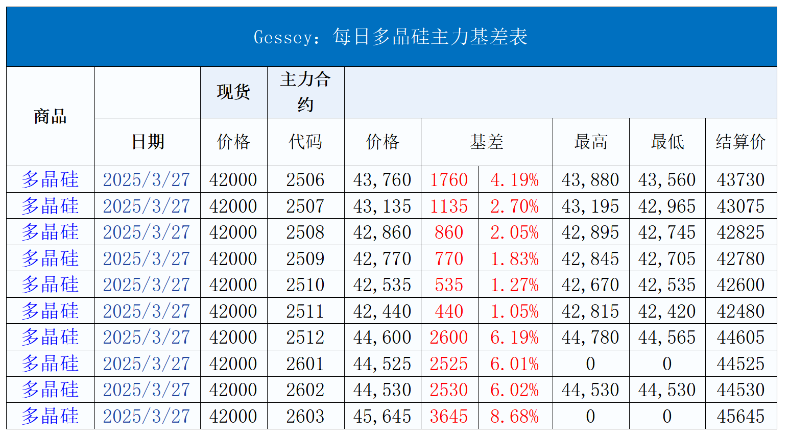 3月27日多晶硅主力基差表