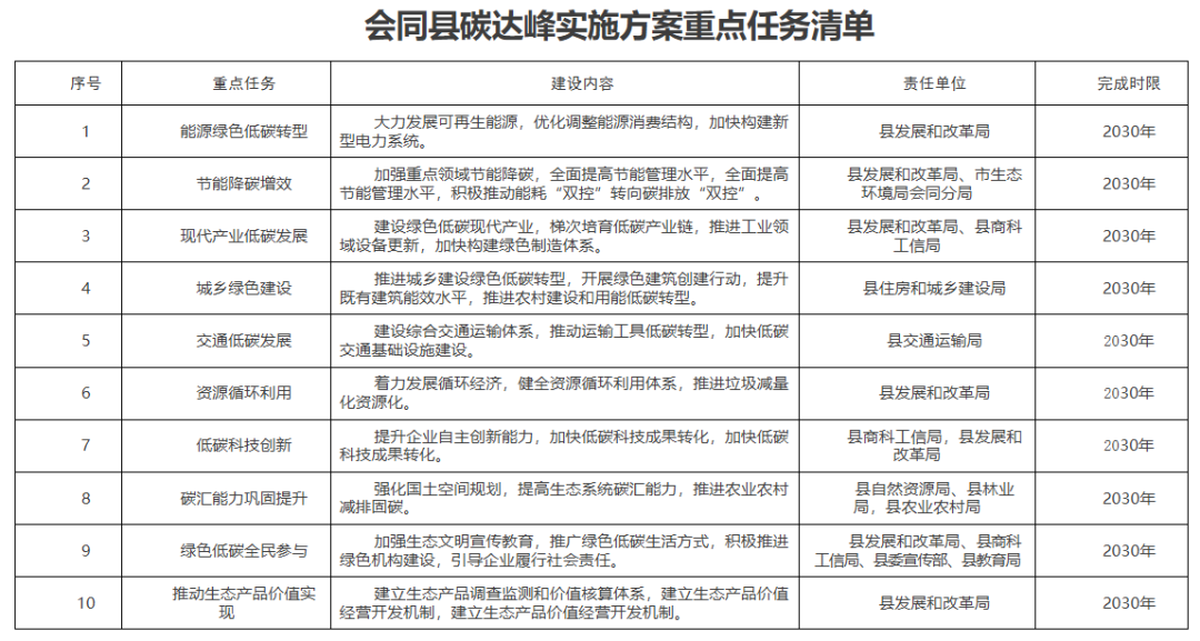 4月8日,湖南省懷化市會同縣發展和改革局發布關于向社會公開征求《會同縣碳達峰實施方案》(征求意見稿)。方案提出,積極探索開展微風發電落地試點,啟動前期測風等研究。推動水電與風電、太陽能發電協同互補,統籌水電開發和生態保護。以整縣戶用光伏開發、綠電轉化、新能源產業發展和零碳鄉村建設為抓手,積極推進農村能源革命,加快農村地區能源清潔低碳轉型。到2025年,新能源發電總裝機容量達30萬千瓦,到2030年,新能源發電總裝機容量達60萬千瓦。 構建新能源占比逐漸提高的新型電力系統,挖掘清潔能源生產和就近消納能力。優化電力通道和網架布局,加快全縣電力輸送通道建設,提升電力外送能力。支持風電、光伏等可再生能源結合儲能系統建設友好型新能源電站,謀劃布局建設“風光+儲能”示范項目。鼓勵圍繞產業開發園區、充電設施、商業街區、政府、家庭等終端用戶,探索儲能融合發展新場景。加快新能源汽車充電樁、換電站及車路協同基礎設施建設,重點區域全面普及智能充電樁。推進鄉鎮高等級變電站建設,完善以110千伏為主供網架的電網架構,推動電源接網工程與電源本體工程“同步規劃、同步核準、同步投運”。 全文如下: 關于向社會公開征求《會同縣碳達峰實施方案》(征求意見稿)和《會同縣建立健全生態產品價值實現機制實施方案》(征求意見稿)意見的通知 為深入貫徹習近平生態文明思想,把碳達峰、碳中和納入經濟社會發展全局,加快形成節約資源和保護環境的產業結構、生產方式、生活方式、空間格局,堅定不移走生態優先、綠色低碳的高質量發展道路,確保如期實現碳達峰、碳中和,建立健全我縣生態產品價值實現機制。我局起草了《會同縣碳達峰實施方案》(征求意見稿)和《會同縣建立健全生態產品價值實現機制實施方案》(征求意見稿),為廣泛聽取社會各界意見,現向社會公眾征求意見。 公告時間:2025年4月8日至2025年4月17日; 參與途徑:公告期內,如有意見或建議,可通過電子郵件或信件方式向會同縣發展和改革局; 聯系地址:會同縣行政中心B區401; 電子郵箱:190491048@qq.com 感謝您的參與和支持! 附件:《會同縣碳達峰實施方案》(征求意見稿) 《會同縣建立健全生態產品價值實現機制實施方案》(征求意見稿) 會同縣發展和改革局 2025年4月7日 會同縣碳達峰實施方案 (征求意見稿) 為深入貫徹黨中央、國務院關于碳達峰碳中和重大戰略決策,全面落實縣委、縣政府關于碳達峰工作總體部署,堅定不移走生態優先、綠色低碳的高質量發展道路,扎實推進碳達峰工作,努力實現經濟與環境雙贏。根據《湖南省人民政府關于印發〈湖南省碳達峰實施方案〉的通知》(湘政發〔2022〕19號)和《懷化市人民政府關于印發〈懷化市碳達峰實施方案〉的通知》(懷政發〔2023〕2號)精神,結合我縣實際,制定本方案。 一、總體要求 ——堅持統籌規劃,分類施策。以國、省、市碳達峰行動為指引,按照全縣“一盤棋”要求,統籌謀劃全縣碳達峰工作。各區域各行業因地制宜,分類施策,制定切合實際的目標任務。 ——堅持效率優先,穩妥達峰。堅持把提升效率放在首位,優化用能和原料結構,加強產業間耦合鏈接,推進減污降碳協同增效。結合本地資源稟賦和發展實際,先立后破,安全有序推動重點領域節能降碳,確保產業鏈供應鏈安全和經濟社會平穩運行。 ——堅持創新驅動,綠色轉型。推動科技創新,積極引進和發展碳達峰相關低碳負碳技術,推動能源結構、產業結構綠色轉型升級,提升全縣智慧管理和安全綠色保障水平,構建現代綠色產業體系,推動全縣產業鏈綠色低碳發展。 ——堅持目標導向,示范先行。堅持碳達峰目標導向,推動園區、企業、社區等單位率先開展低碳示范,在重點領域打造一批減碳降碳標志性工程項目,加快探索形成具有會同特色、可復制可推廣的典型案例。 二、主要目標 “十四五”期間,全縣產業結構調整、能源結構優化取得階段性成果,重點行業能源利用效率顯著提升,一次能源消費增長得到合理控制,風、光、水等可再生能源裝機規模大幅提高,新型電力系統加快構建,綠色生產生活方式得到普遍推行,綠色低碳循環發展的政策體系進一步完善。到2025年,非化石能源消費比重提高到45%以上,完成林業碳票開發試點建設,單位地區生產總值碳排放下降確保完成懷化市下達目標,為實現碳達峰目標奠定堅實基礎。 “十五五”期間,產業結構調整、能源結構優化取得重大進展,低碳新興產業發展壯大,清潔低碳安全高效的能源體系初步建立,重點領域低碳發展模式基本形成,非化石能源消費比重進一步提高,綠色低碳技術研發和推廣應用力度顯著增強,綠色生產生活方式得到廣泛推廣,綠色低碳循環發展的政策體系基本健全。到2030年,非化石能源消費比重提高到50%以上,建立完善的林業碳票、碳匯開發和管理體系,單位地區生產總值碳排放下降確保完成懷化市下達目標,順利實現2030年前碳達峰目標。 三、重點任務 重點實施能源綠色低碳轉型、節能降碳增效、現代產業低碳發展、城鄉綠色建設、交通低碳發展、資源循環利用、低碳科技創新、碳匯能力鞏固提升、綠色低碳全民參與、推動生態產品價值實現“碳達峰十大行動”。 (一)能源綠色低碳轉型行動 1.大力發展可再生能源 重點圍繞風電、儲能、光伏、充(換)電等